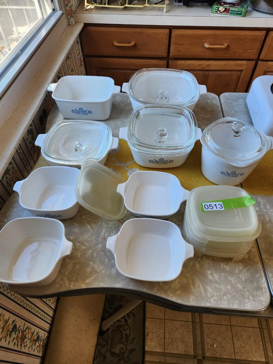 Large Lot of 9 Corning Ware Cornflower With Lids, Petite Pan, P-55-B