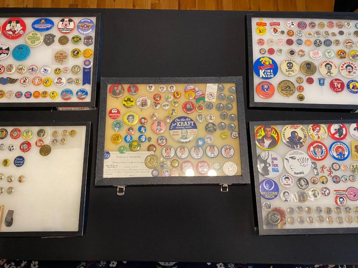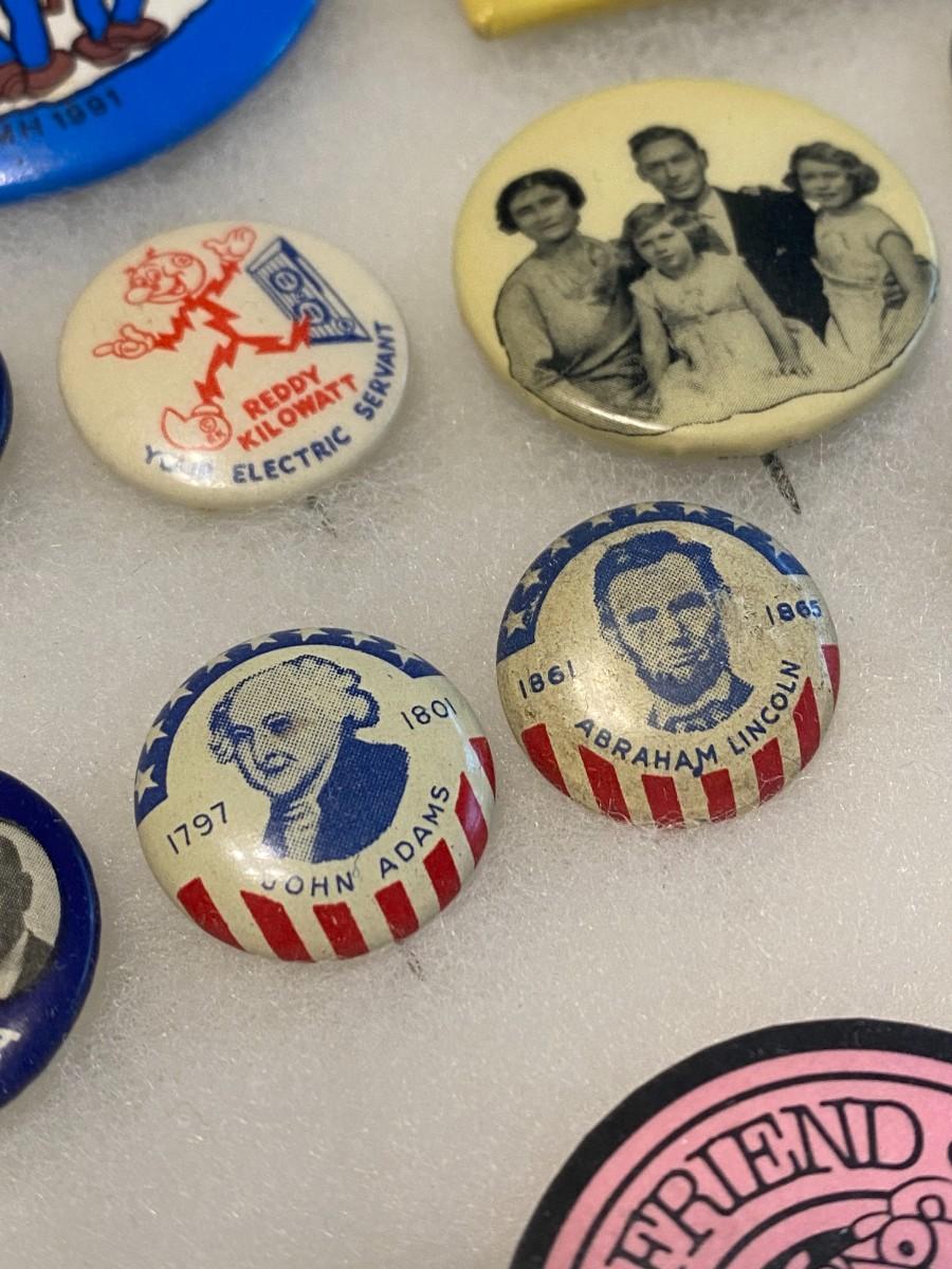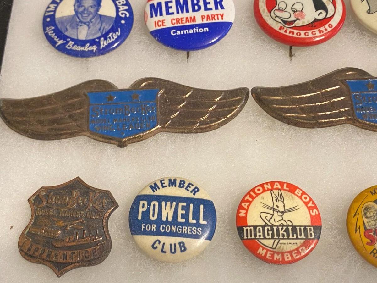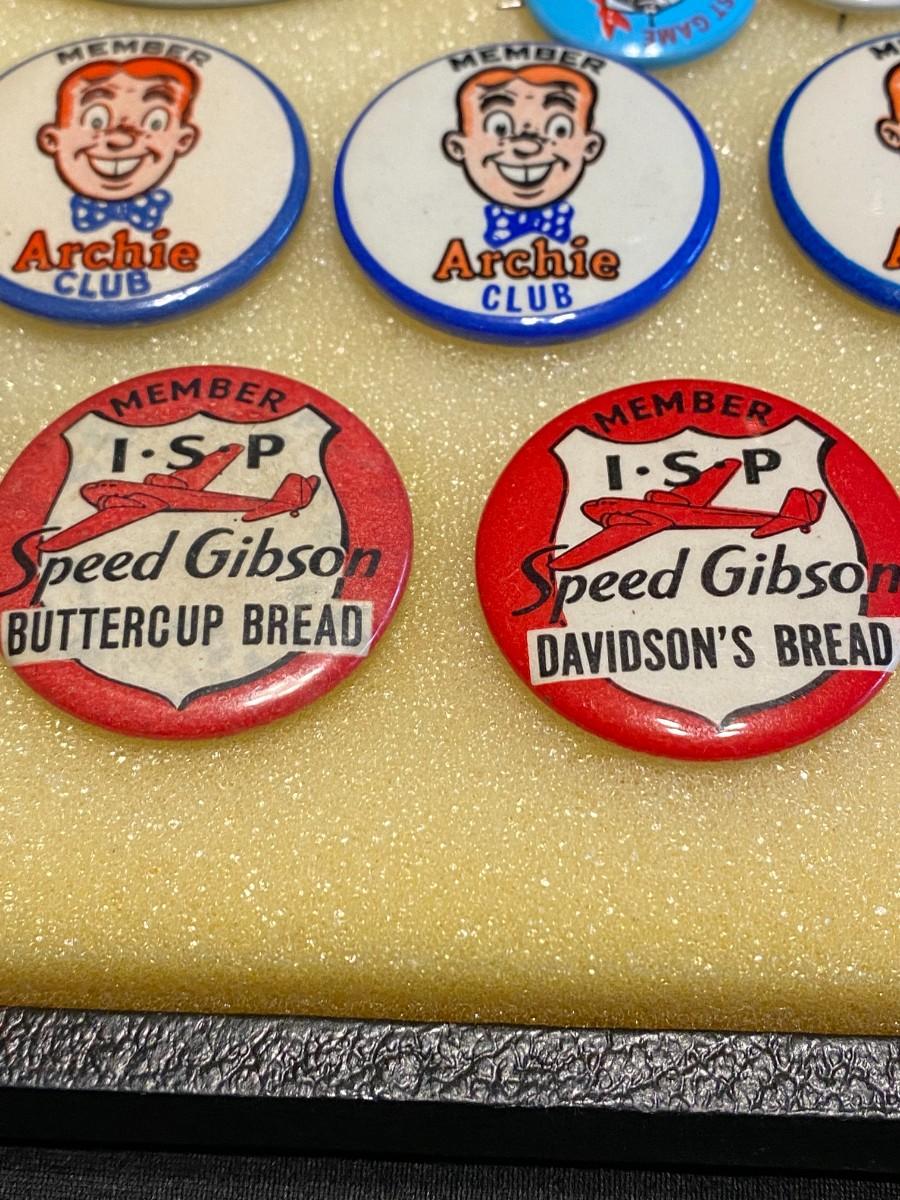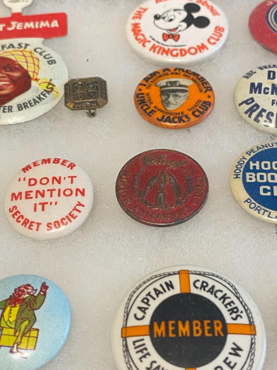 Large Lot of Antique 1900s Buttons Pins Badges and Ribbons of Television Cartoons Characters