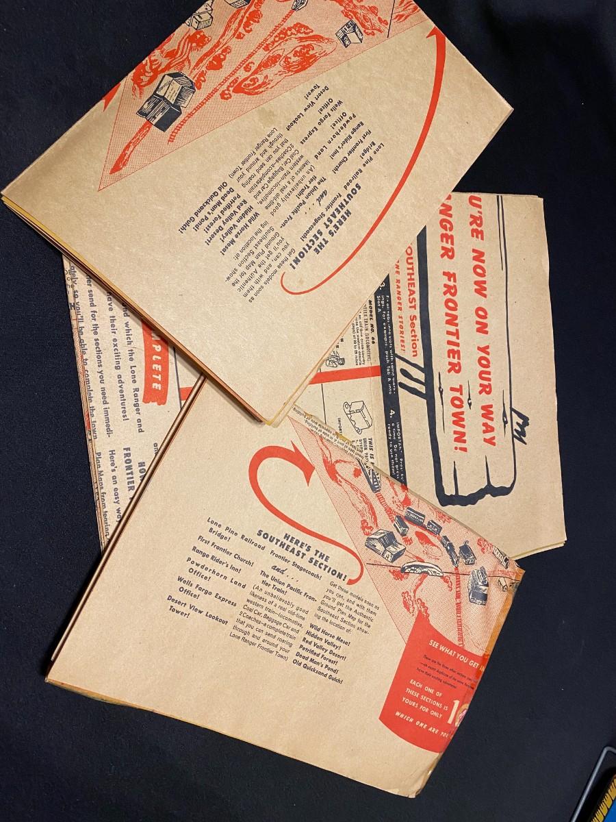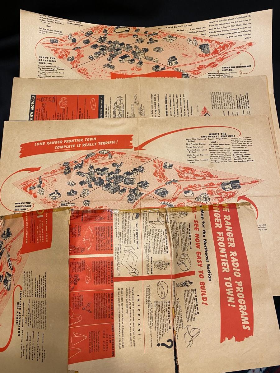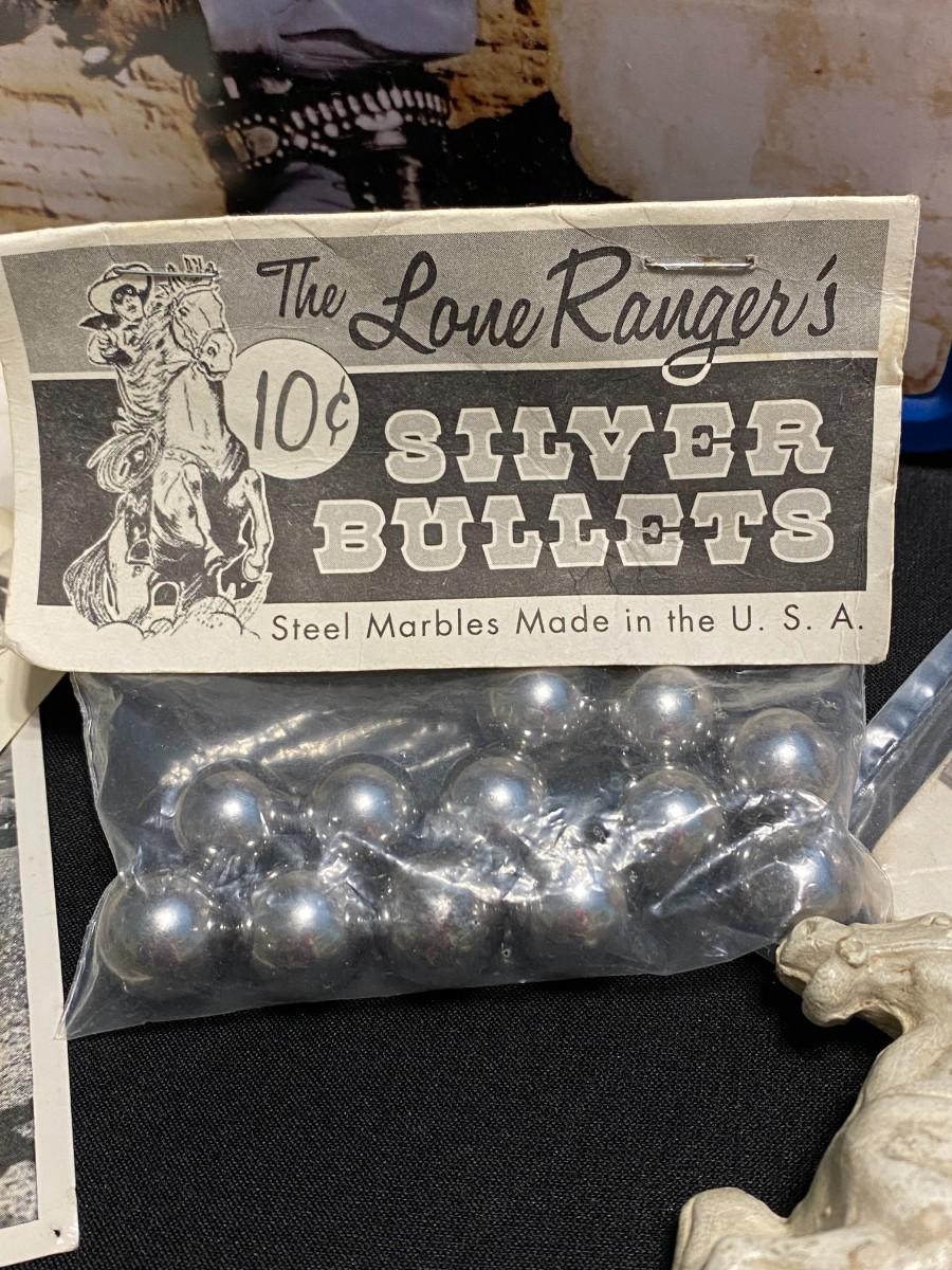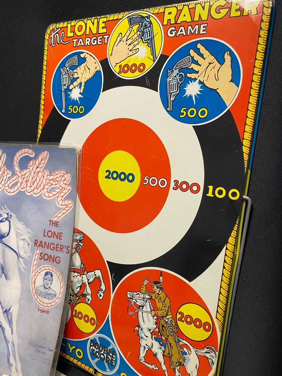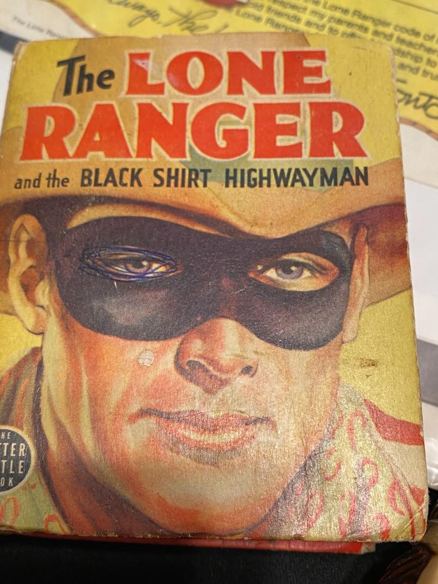 Large Lot of Antique Lone Ranger Collectibles Chalkware Maps Lunchbox Belt Star Badge and Ephemera