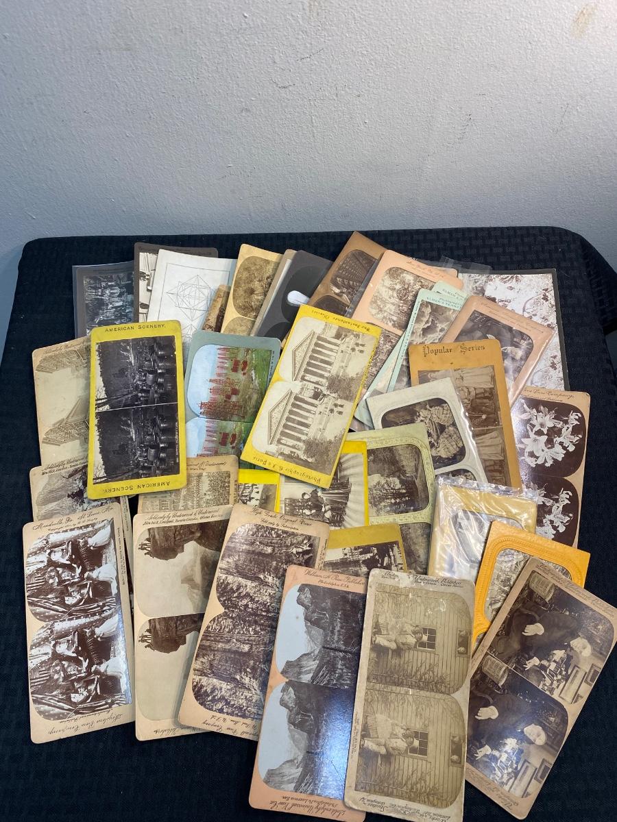 Large Lot of Antique Stereoscope Photo Picture Viewer Cards Patriotic, Oil Wells, Early American Life & More