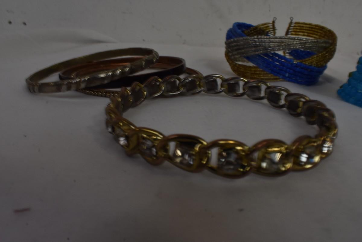 Large lot of Bangles & Beaded Bracelets: multi colors, 1 w/ rhinestones