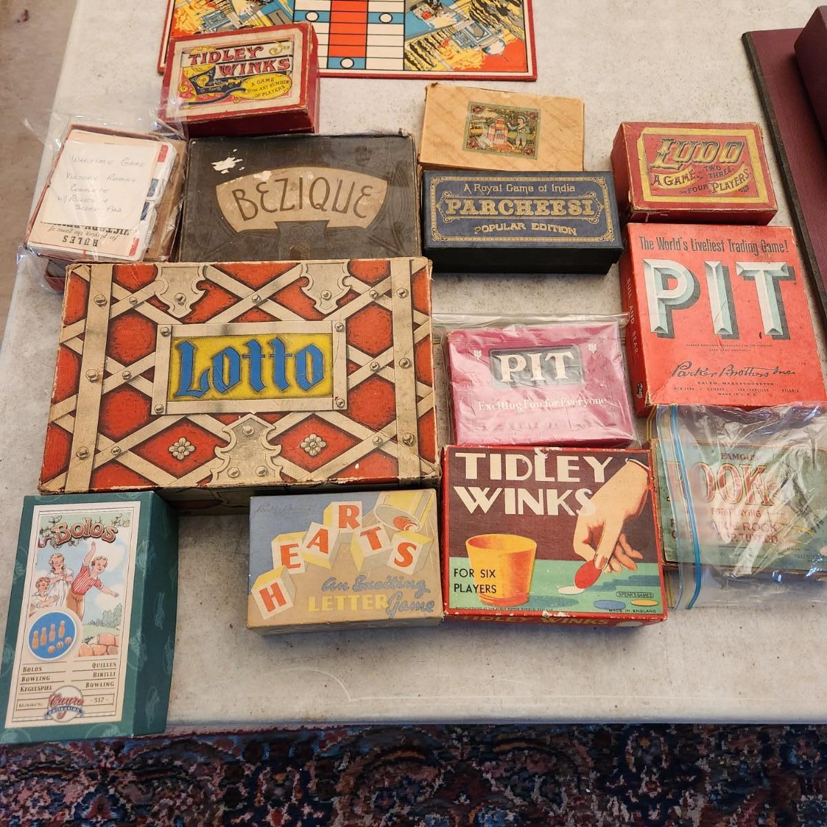 Large Lot of Board Games Pit, Lotto, Hearts, Parcheesi, Sorry, Tidley Winks, Wonderful Game of Oz Board