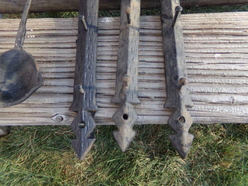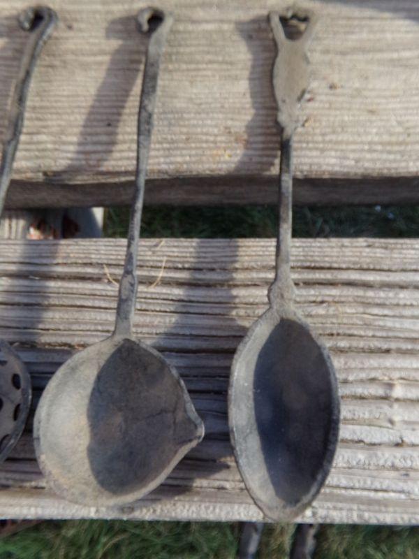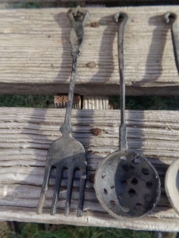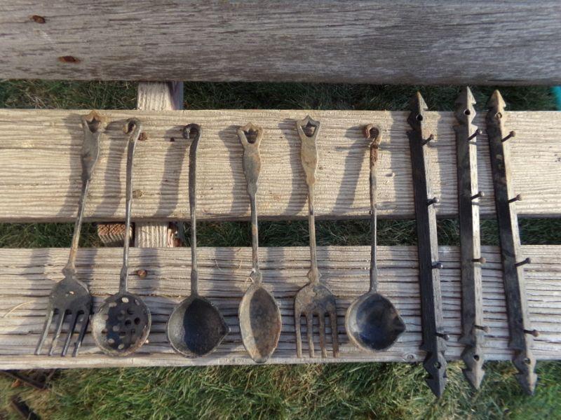LOT 268 LARGE LOT OF CAST IRON KITCHEN UTENSILS AND PEGGED HANGERS