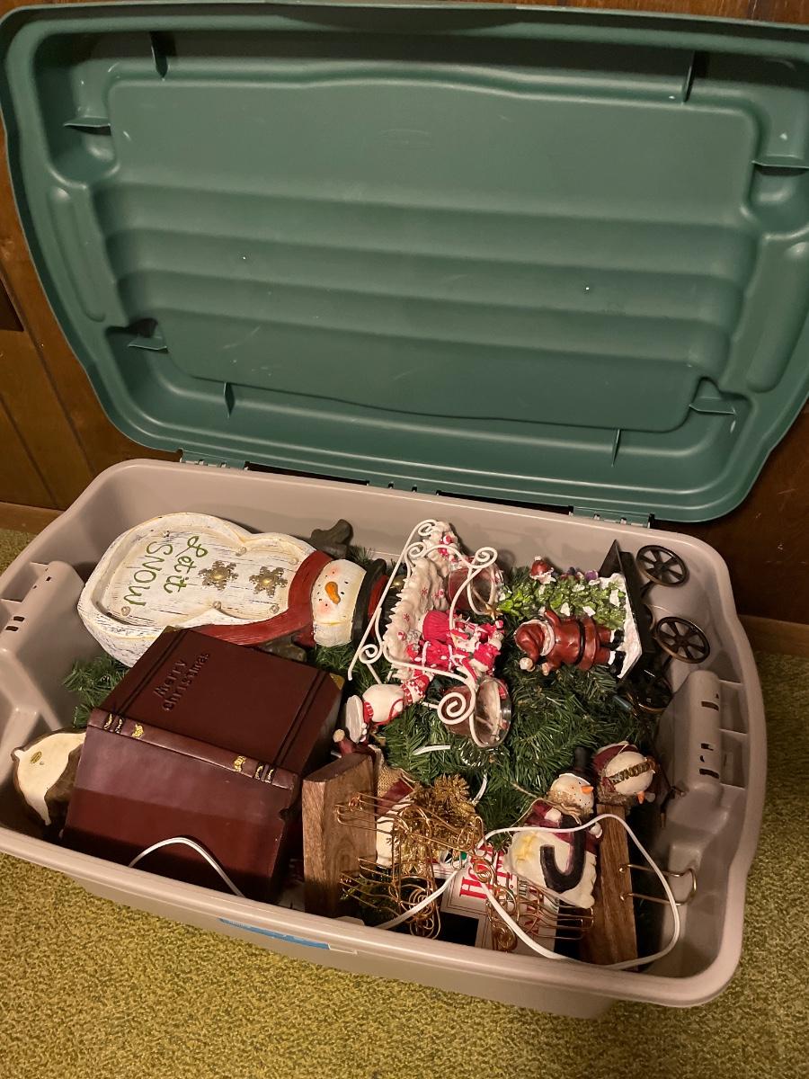 Totes of Christmas decor