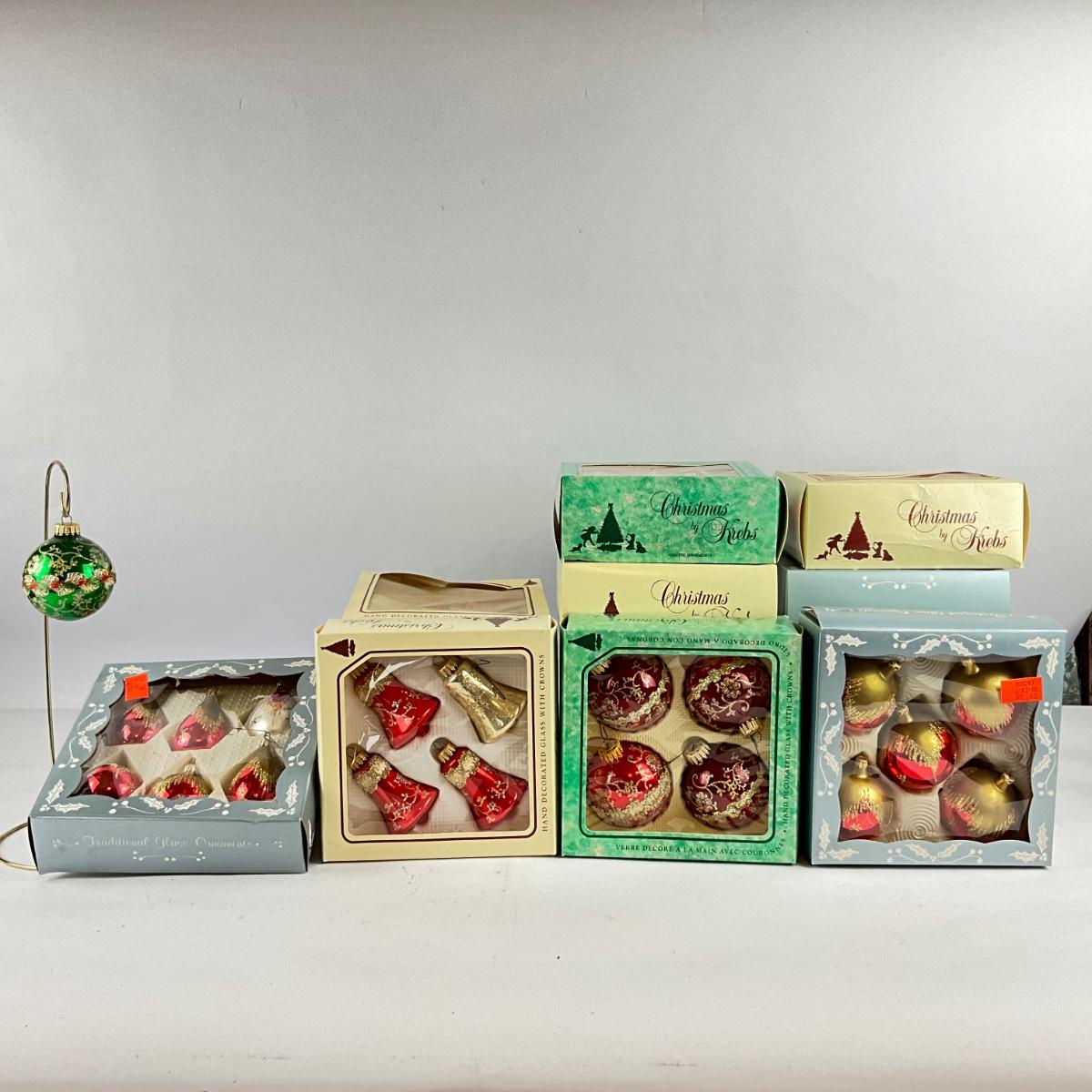 678 Large Lot of Christmas By Krebs Hand Decorated Glass Ornaments