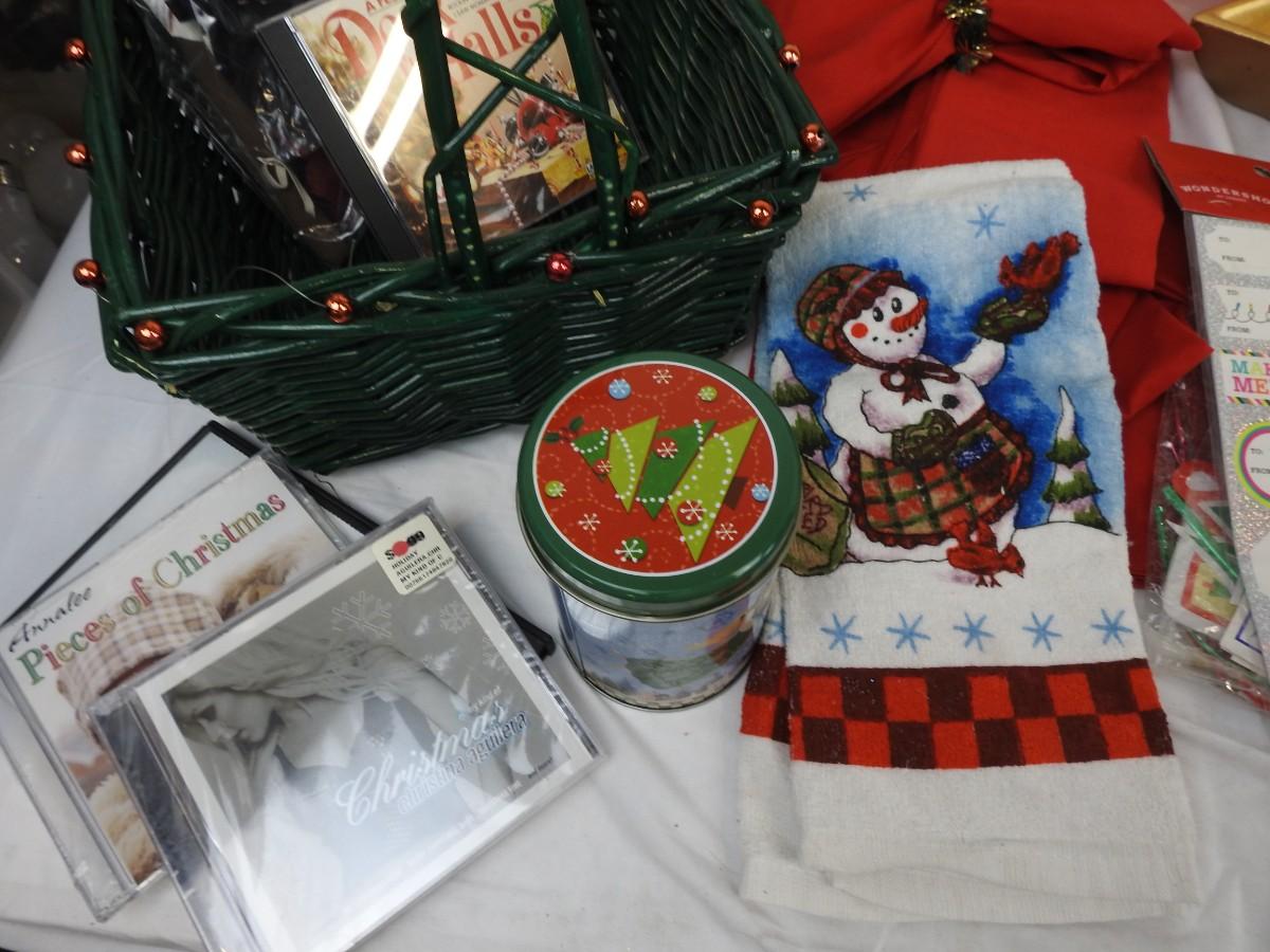 Large Lot of Christmas, Decor, Media, Tins, Basket, Lights, Candles