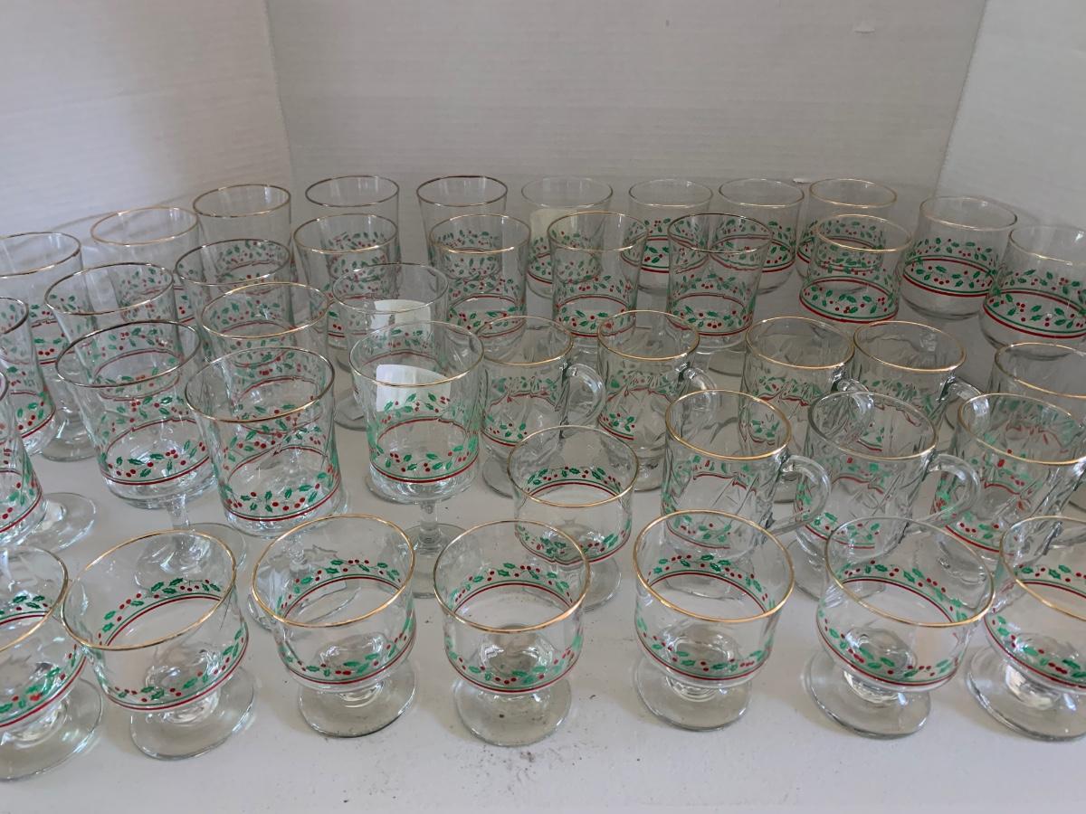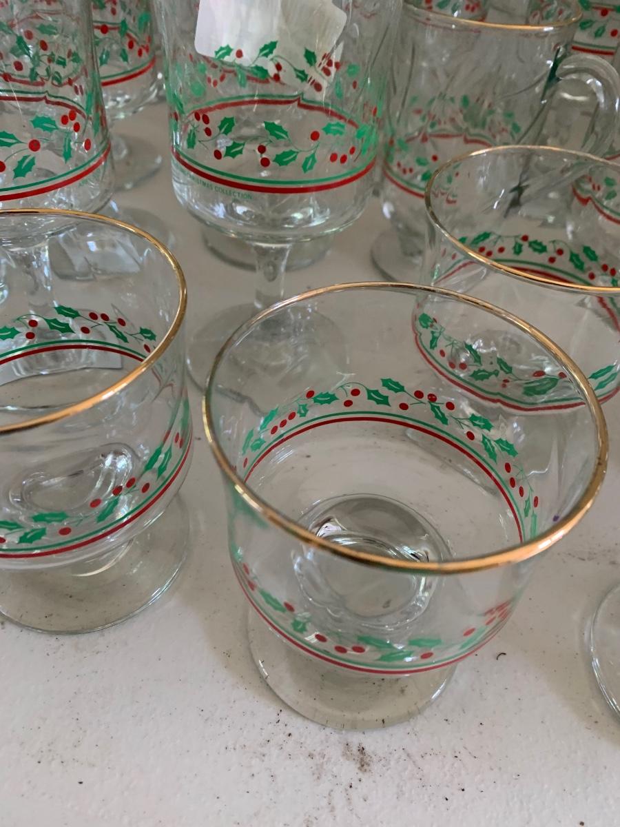 Large Lot of Christmas Glasses Wines Coffees Waters more