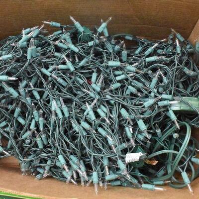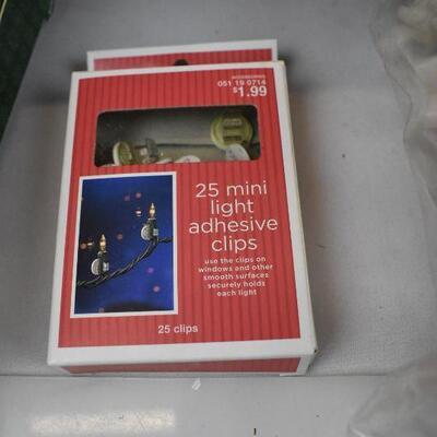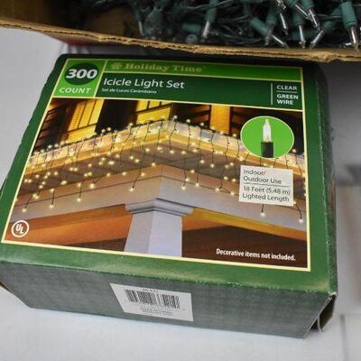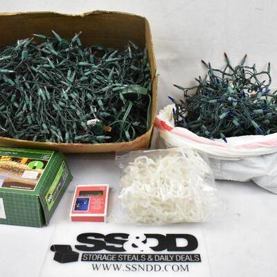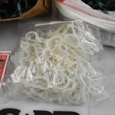 Large Lot of Christmas Lights, Icicle lights, White, Blue, Red Lights, And Clips