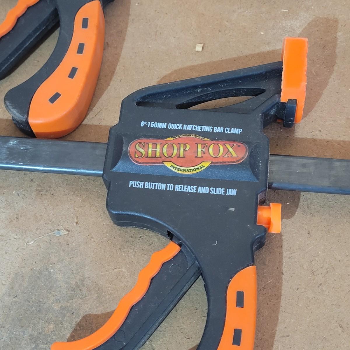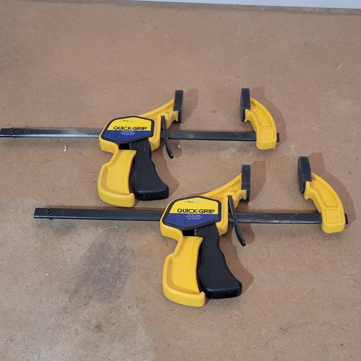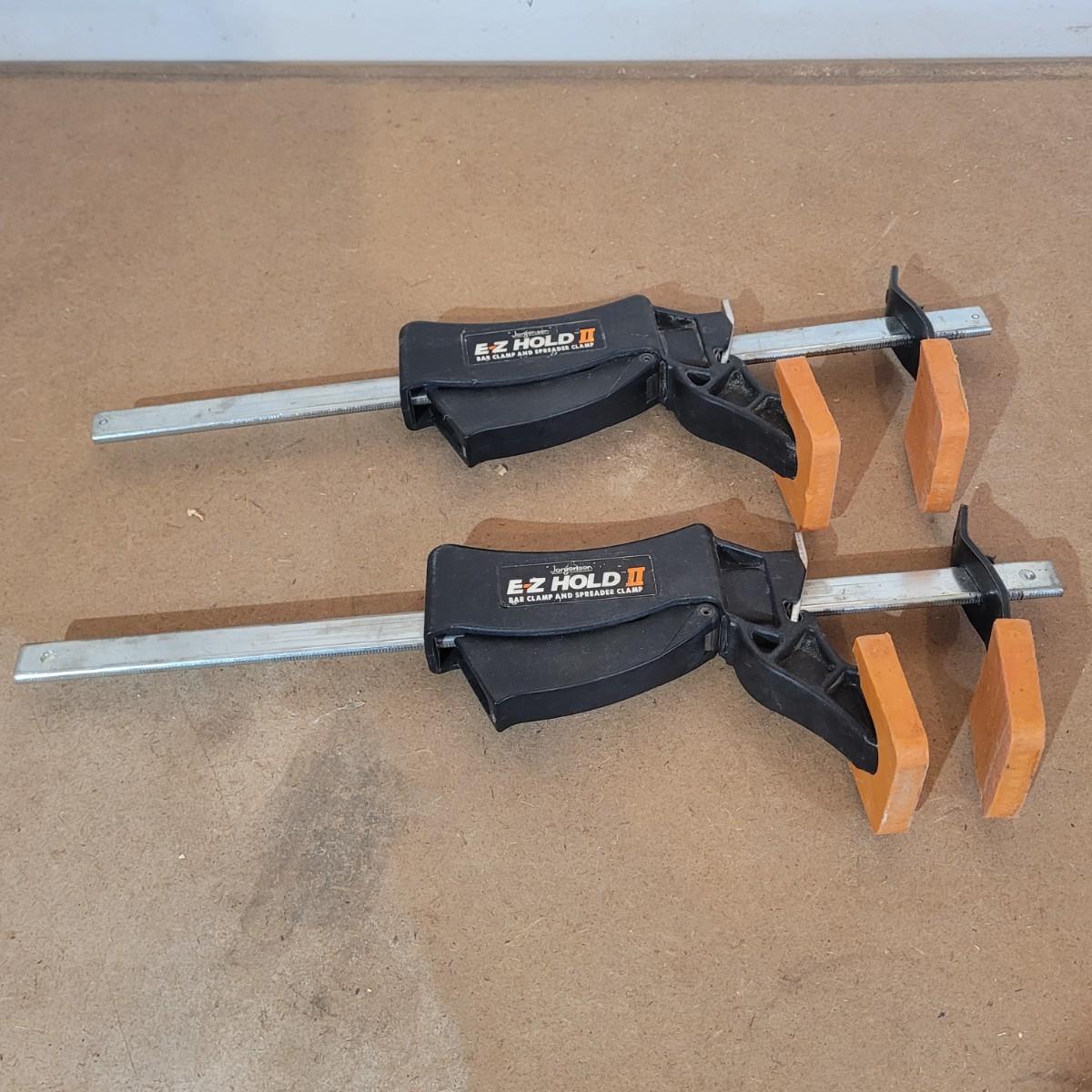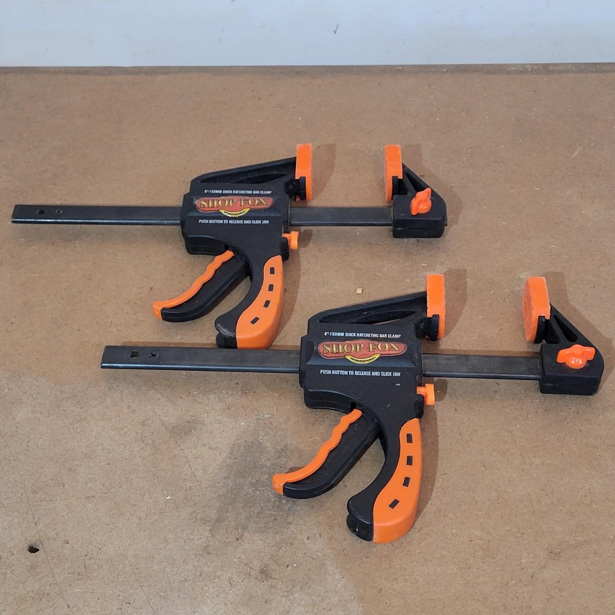large Lot of 27 varying clamps. Brands include Woodcraft, Shop Fox, Bessey, Quick-Grip, Jorgensen, and Rockler. Largest clamps are 31" in length and the smallest being 13" in length. Mostly made from solid metal, some of the smaller clamp have plastic components.