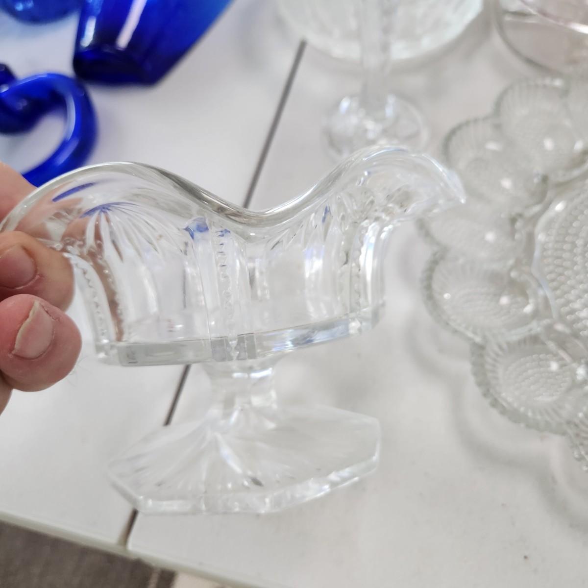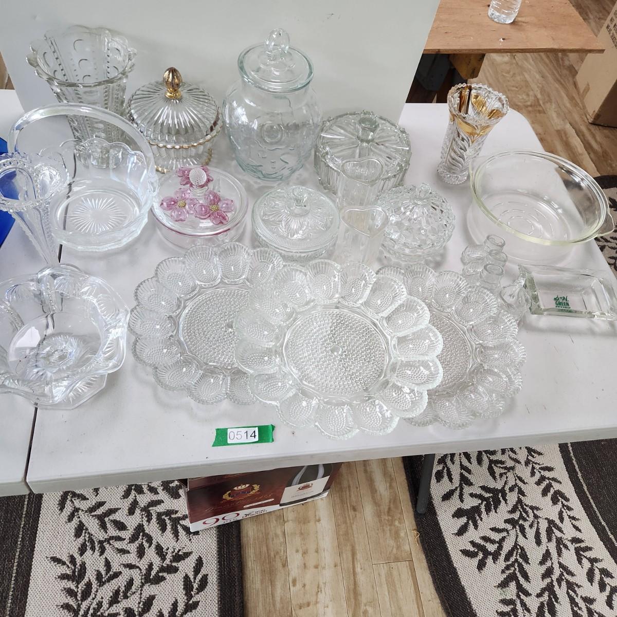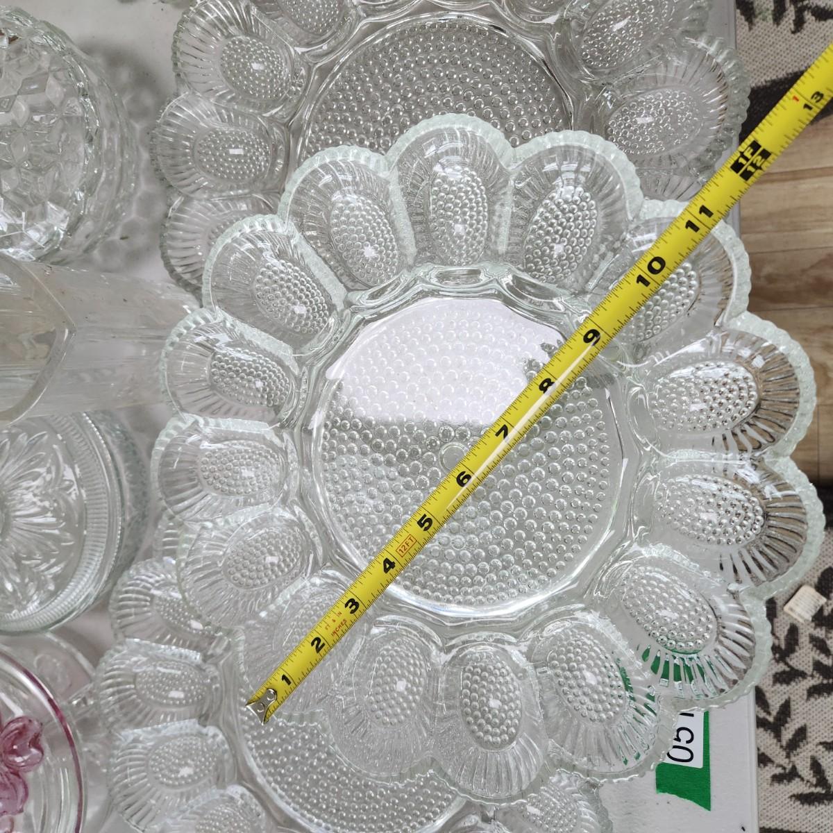 Large lot of Clear Glassware Hobnail Devil Eggs , S.H. Green Stamps , Bowls Vases