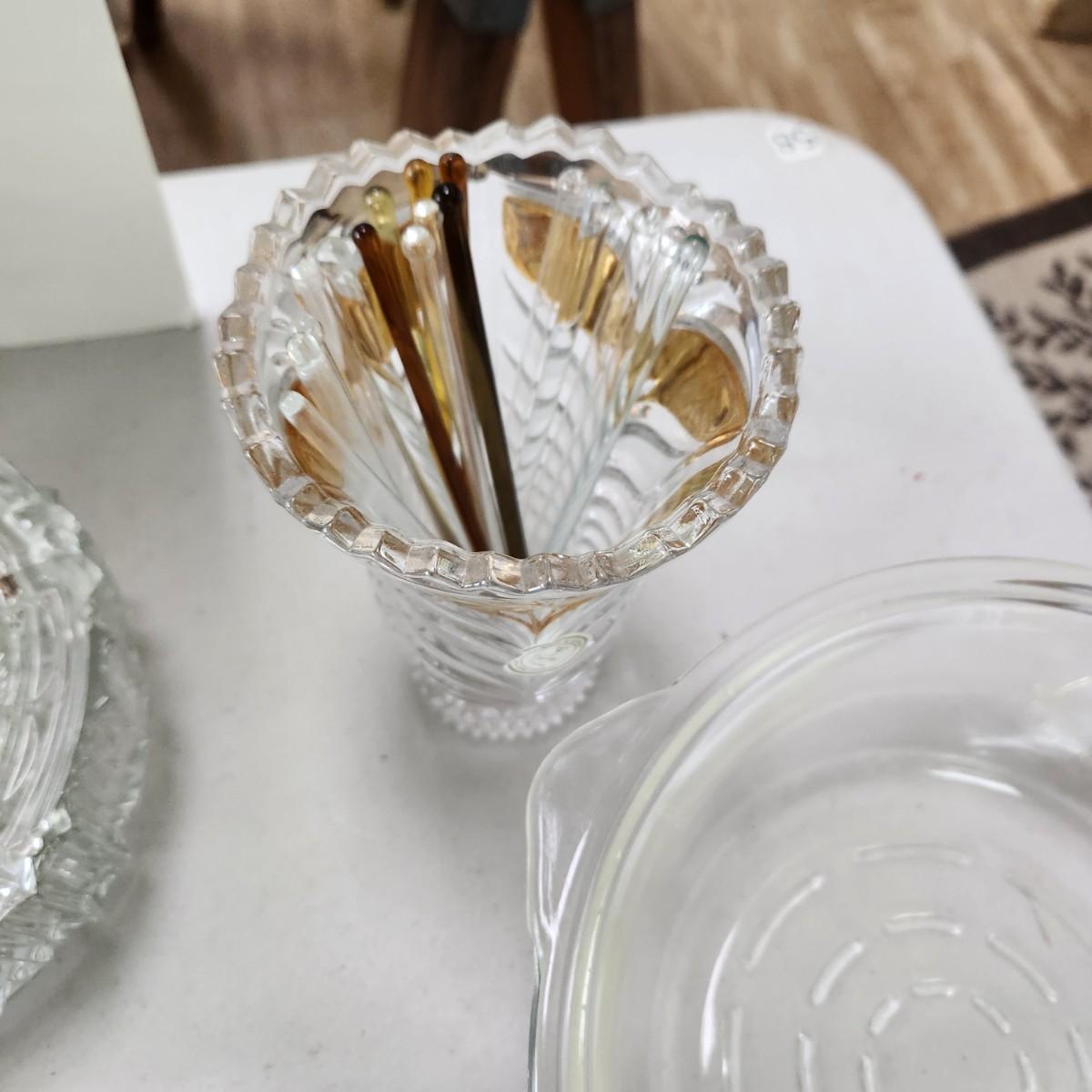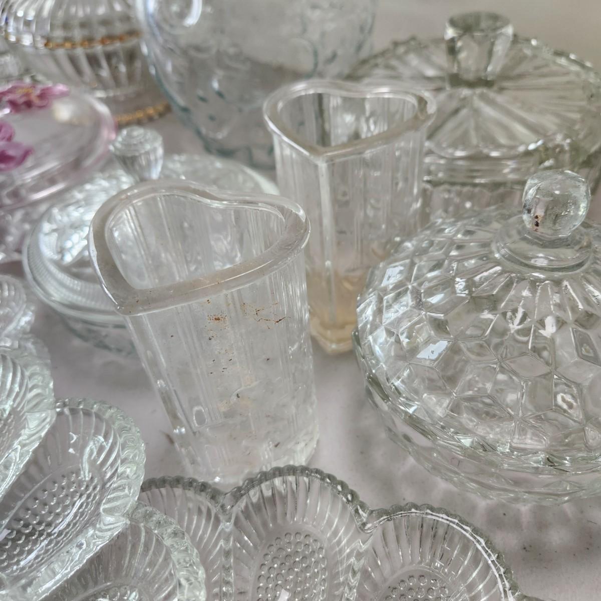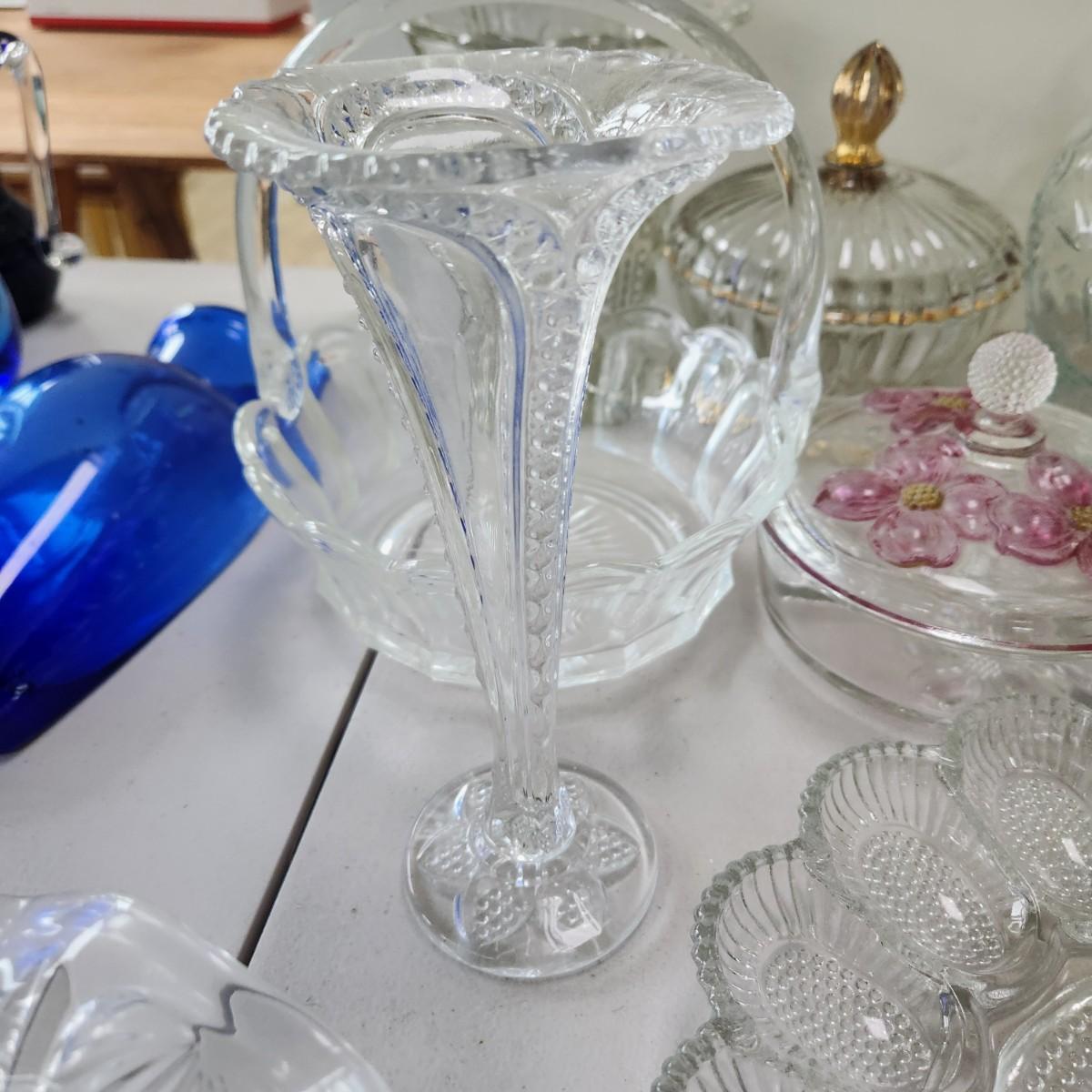 Large lot of Clear Glassware Hobnail Devil Eggs , S.H. Green Stamps , Bowls Vases