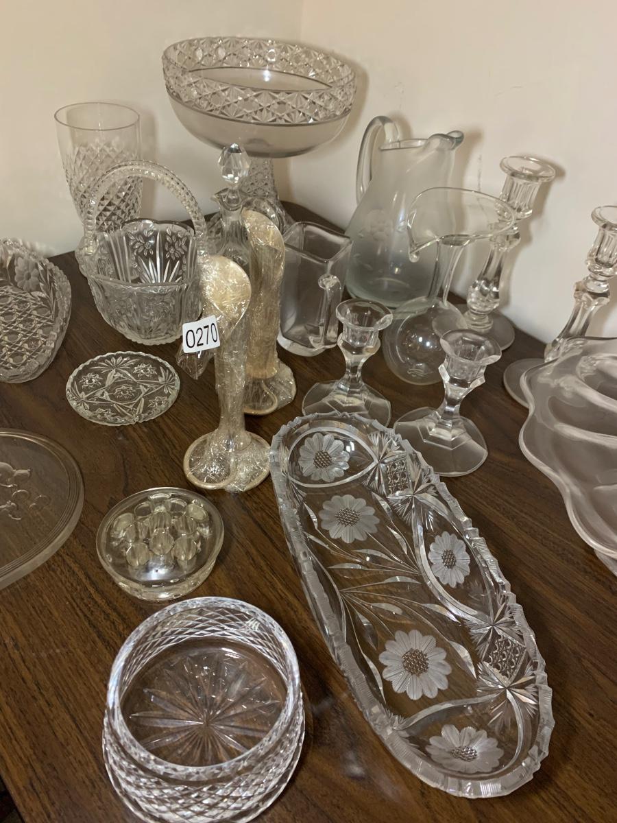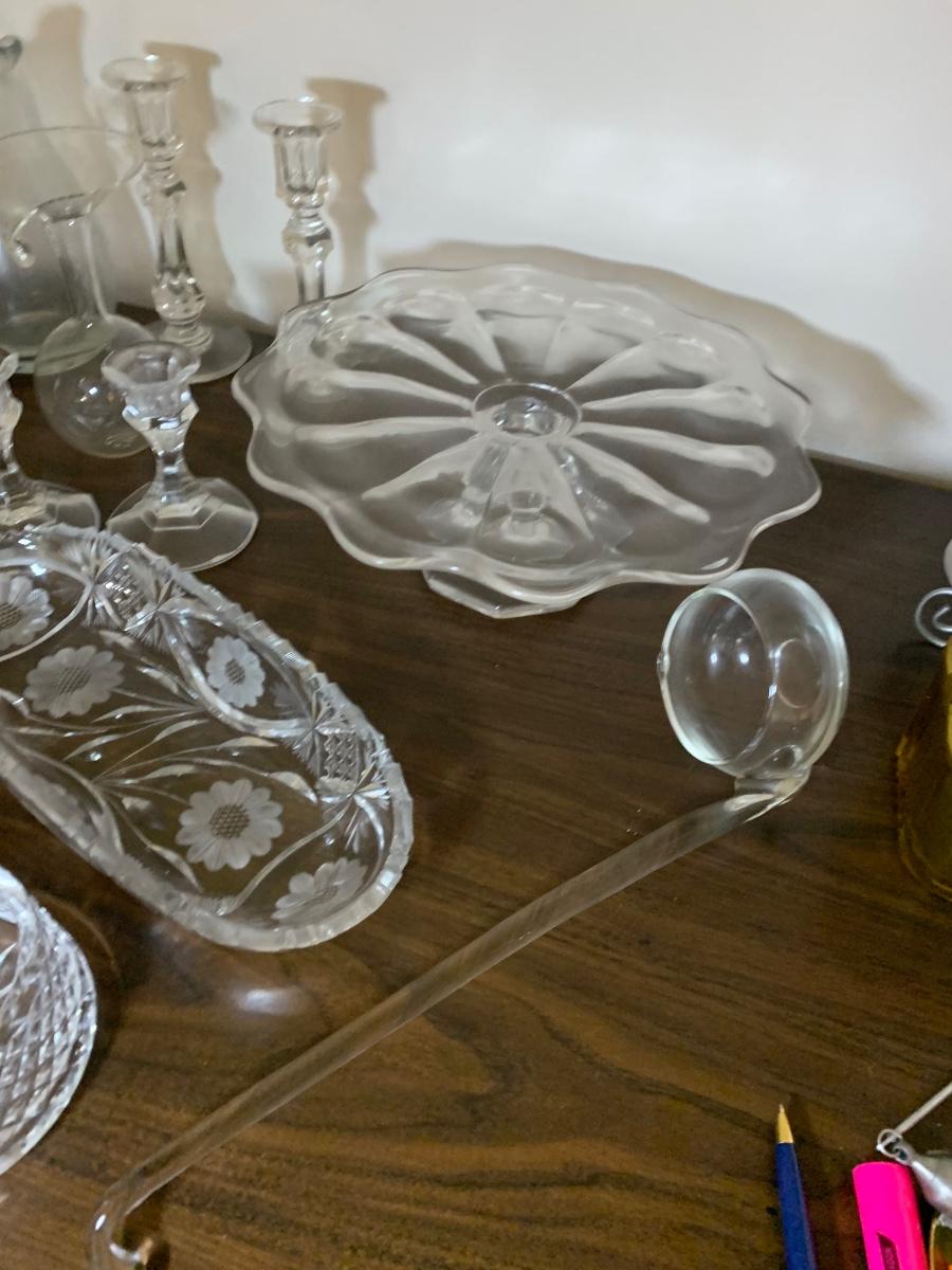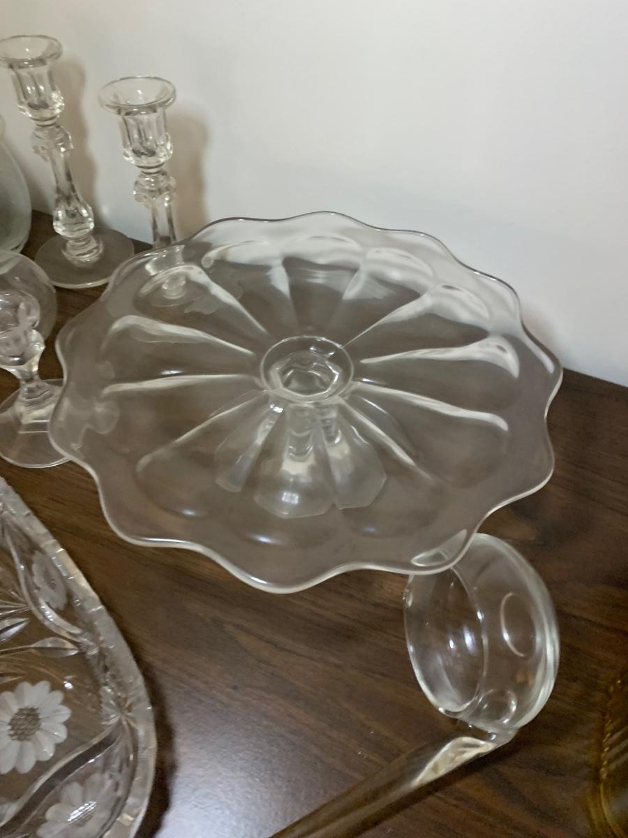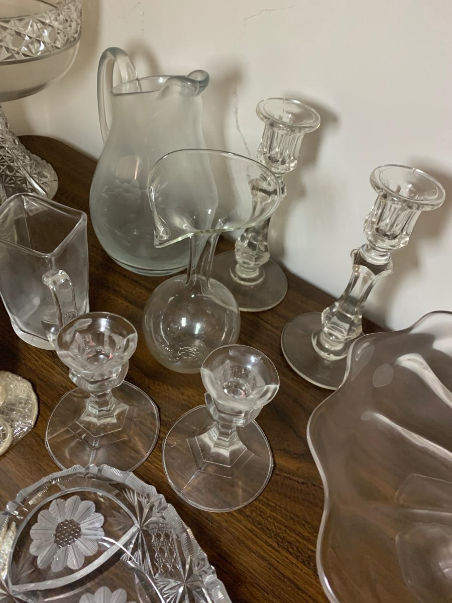 Large Lot Of Clear Glassware Cakeplate Vases Serving Dishes +++