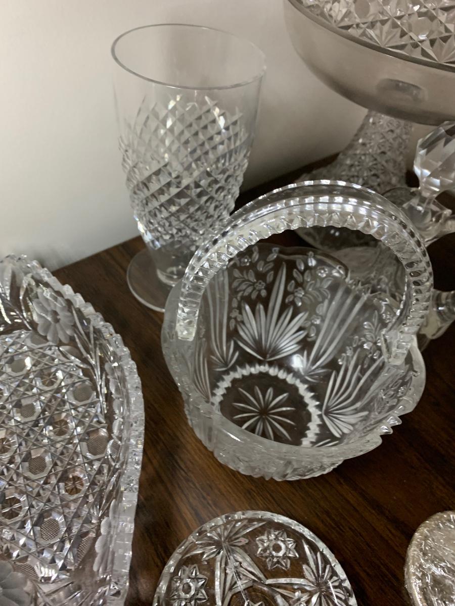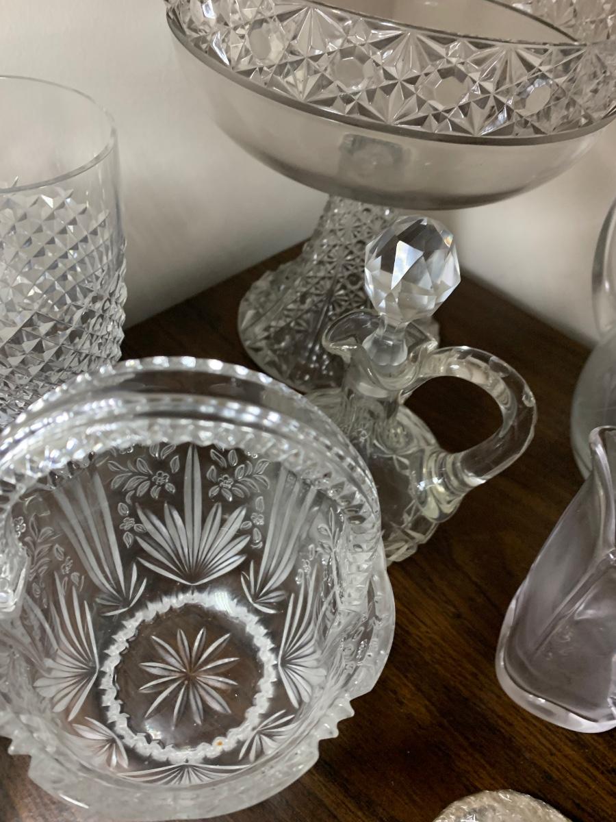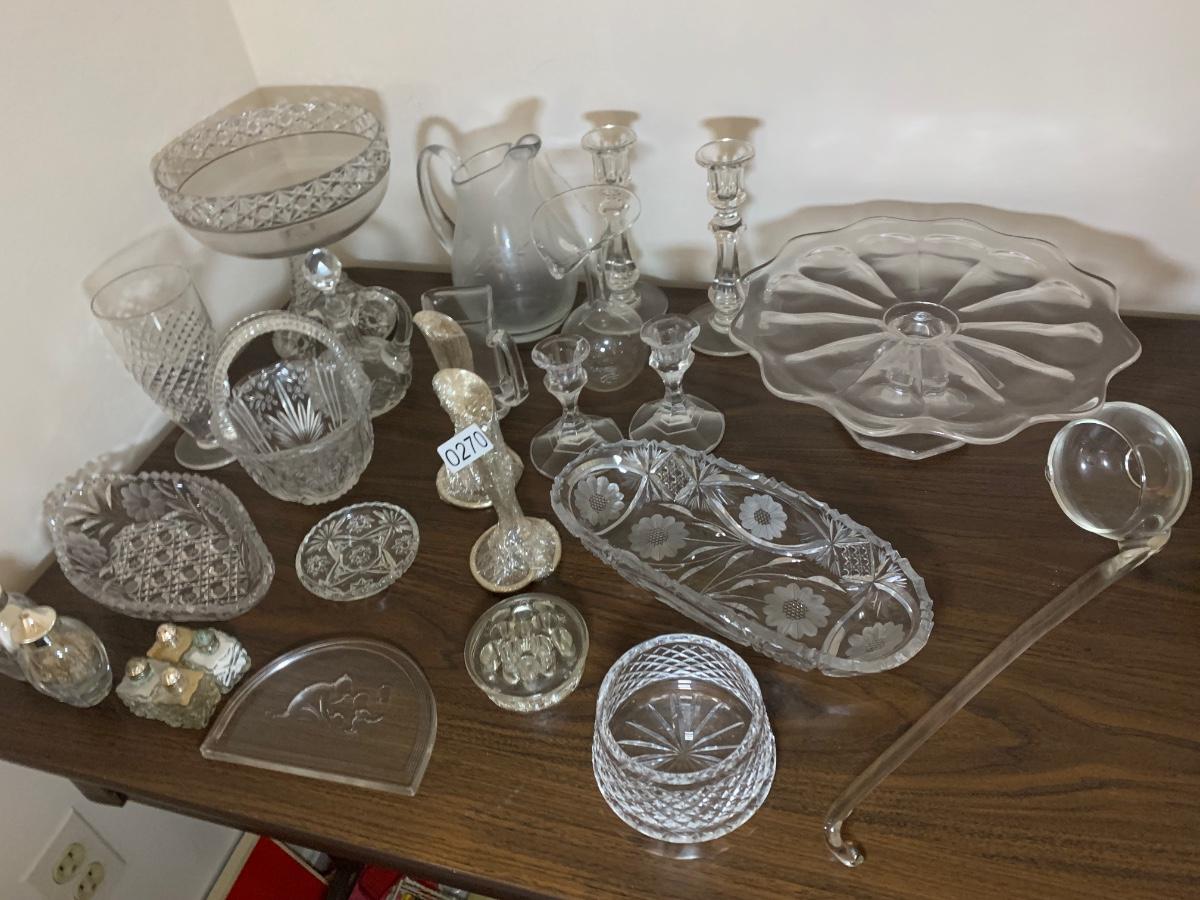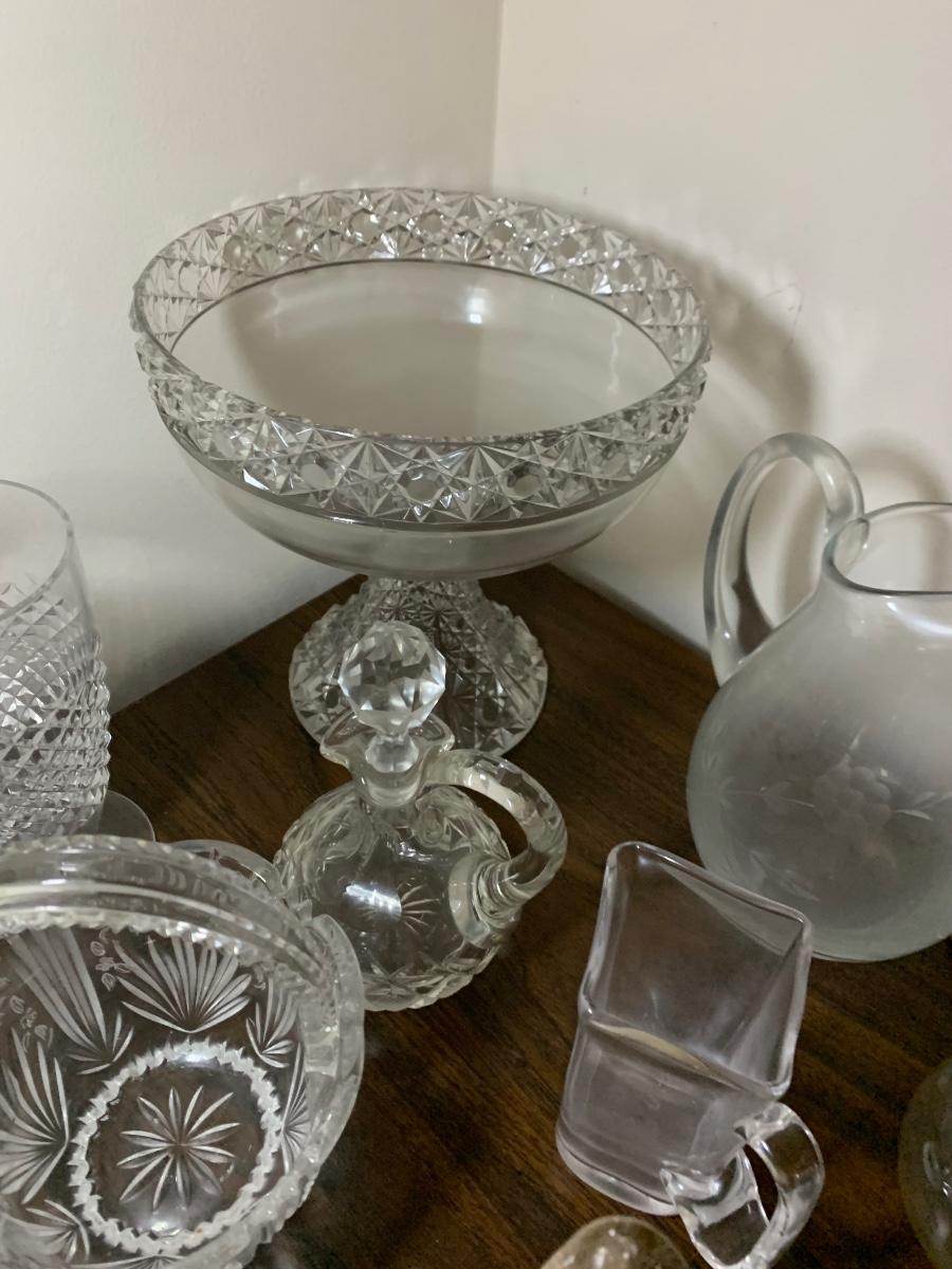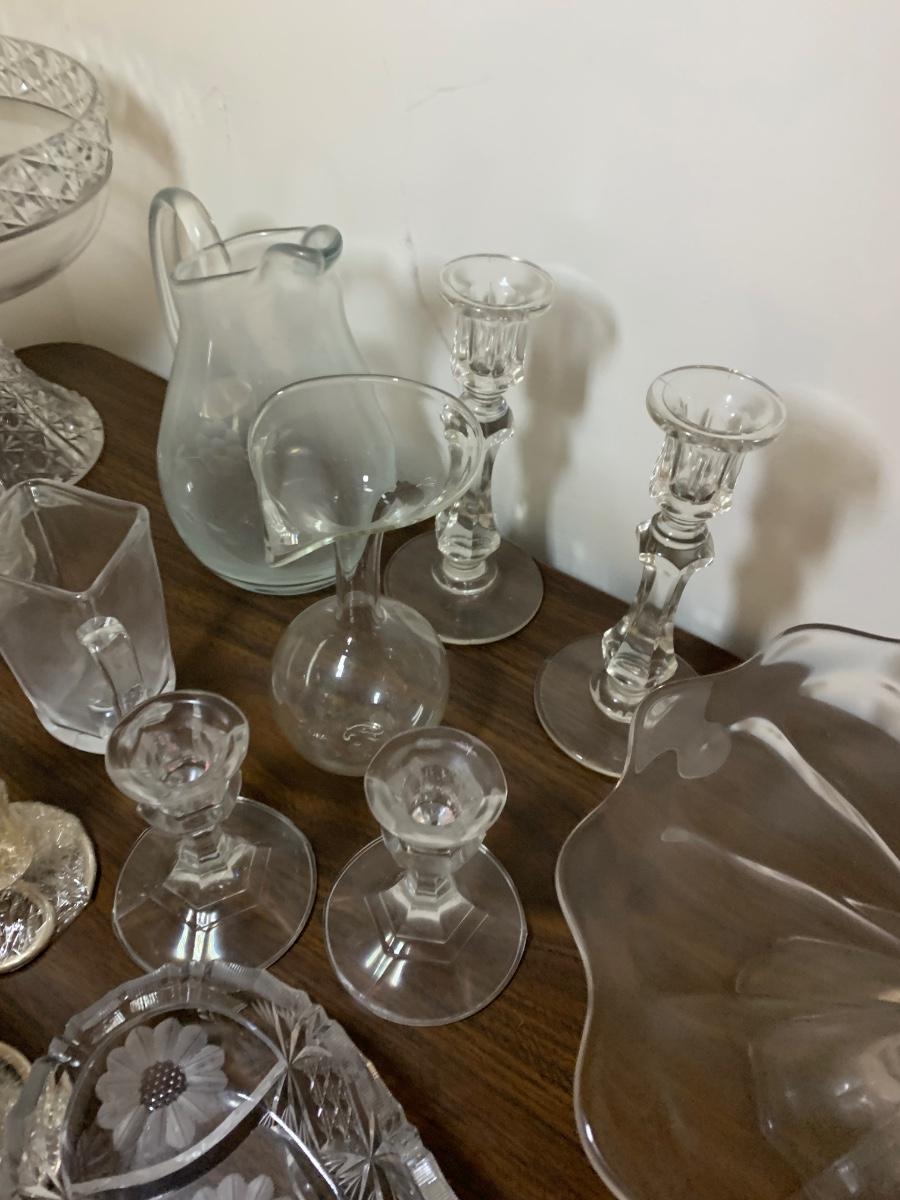 Large Lot Of Clear Glassware Cakeplate Vases Serving Dishes +++