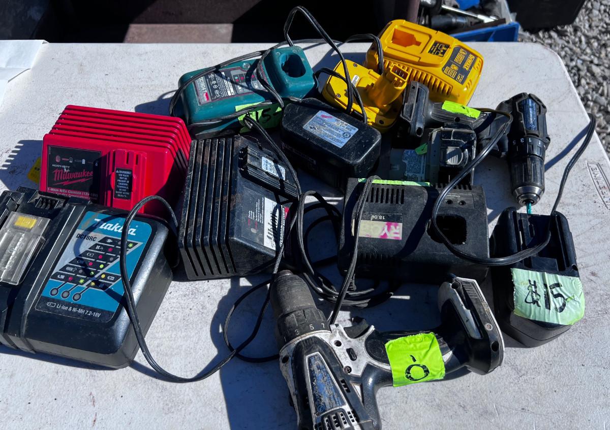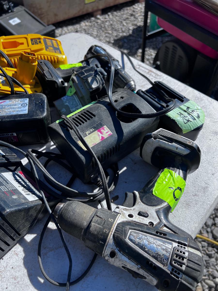 Large Lot of Cordless Chargers, Batteries and Drills-MIXED Variety.