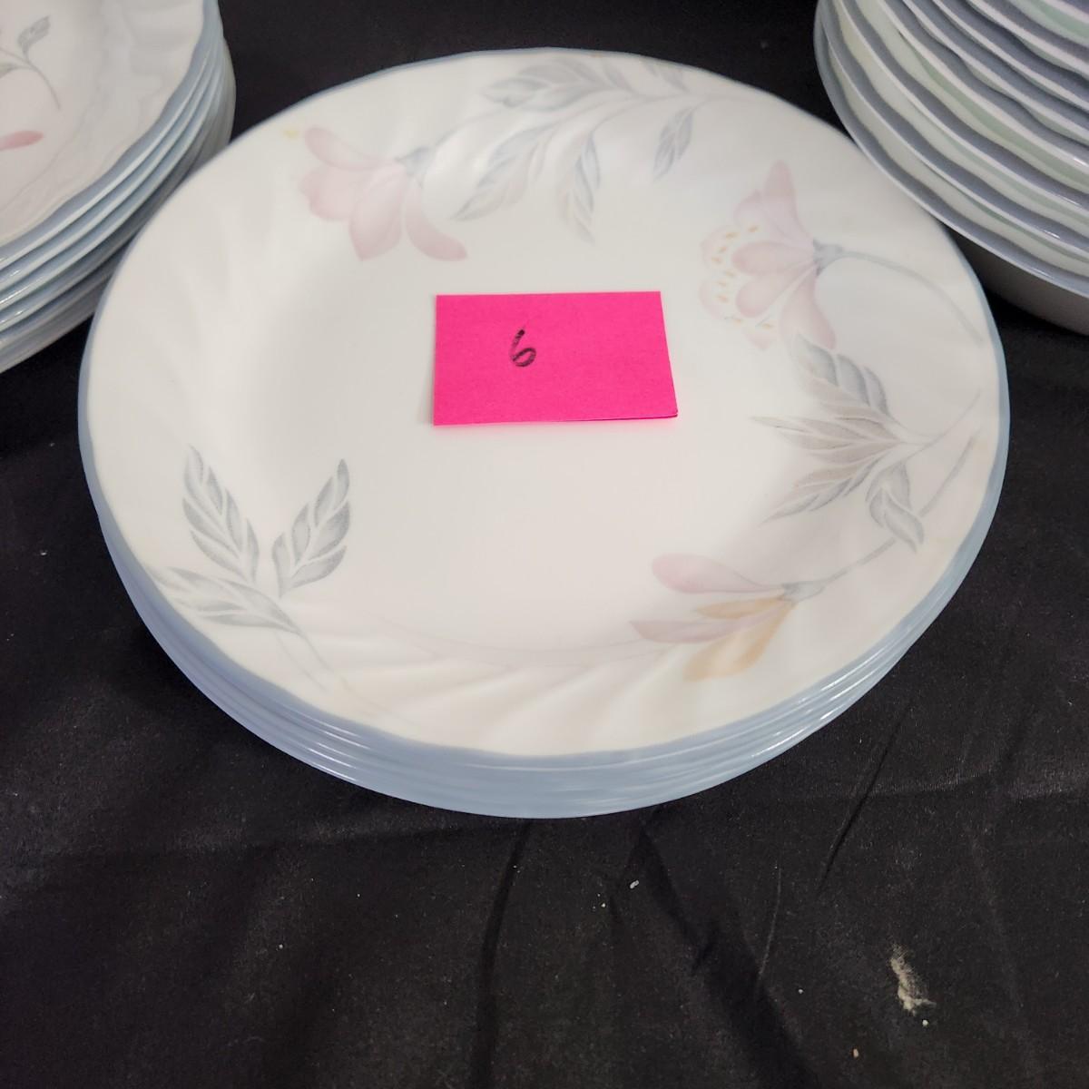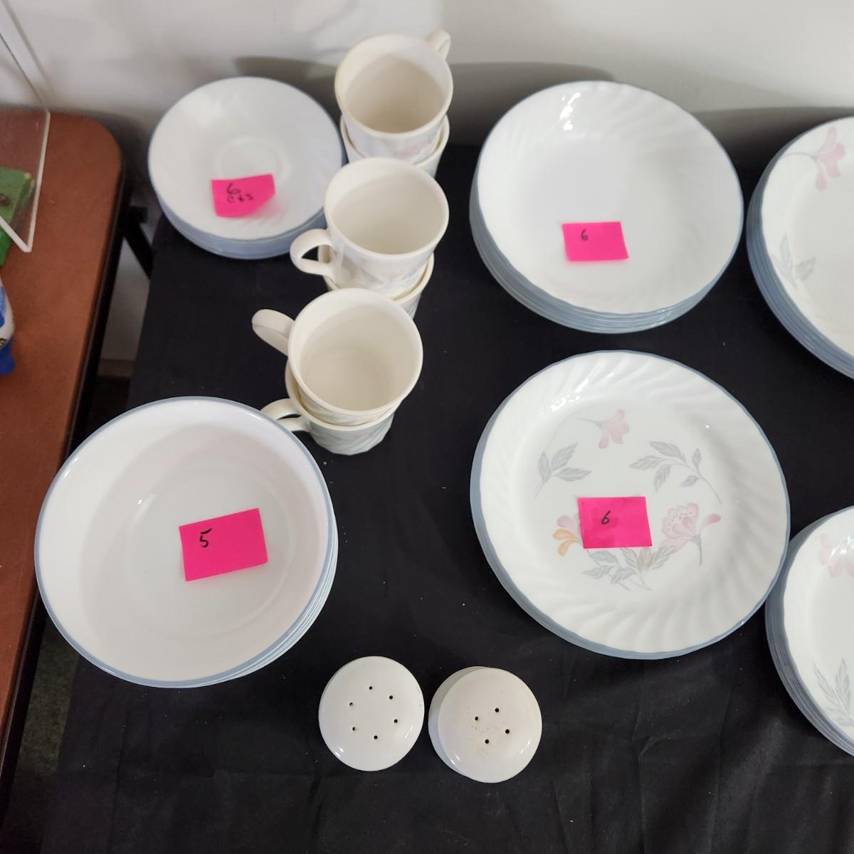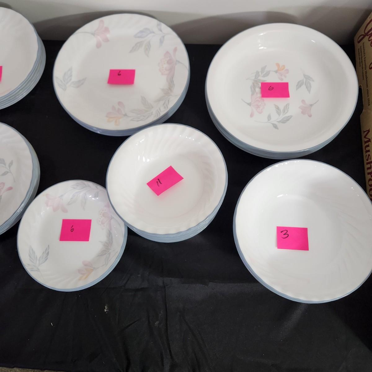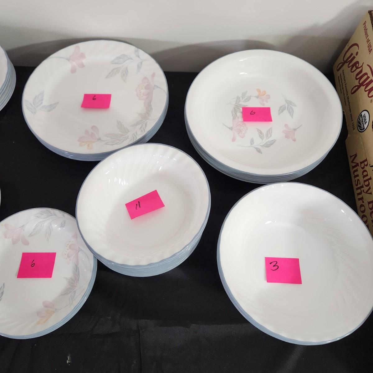Large lot of Corning Corelle Pink Trio Plates, Cups Saucers Bowls Servers