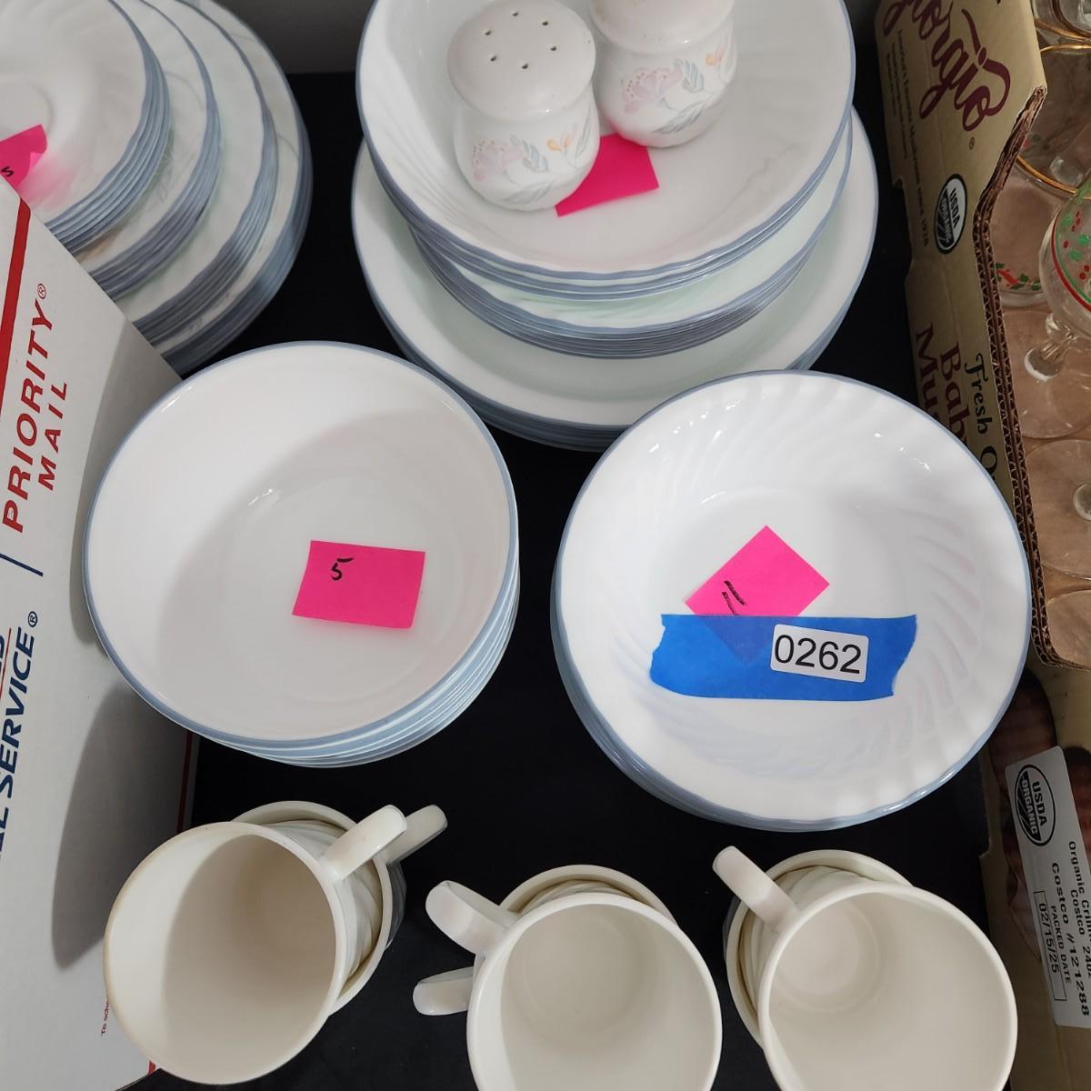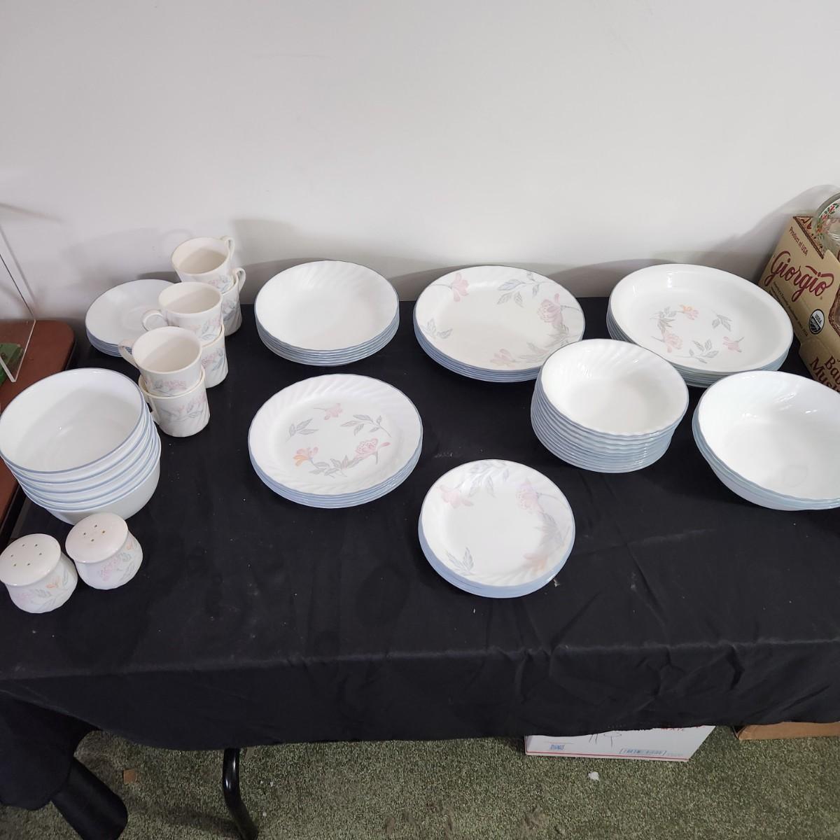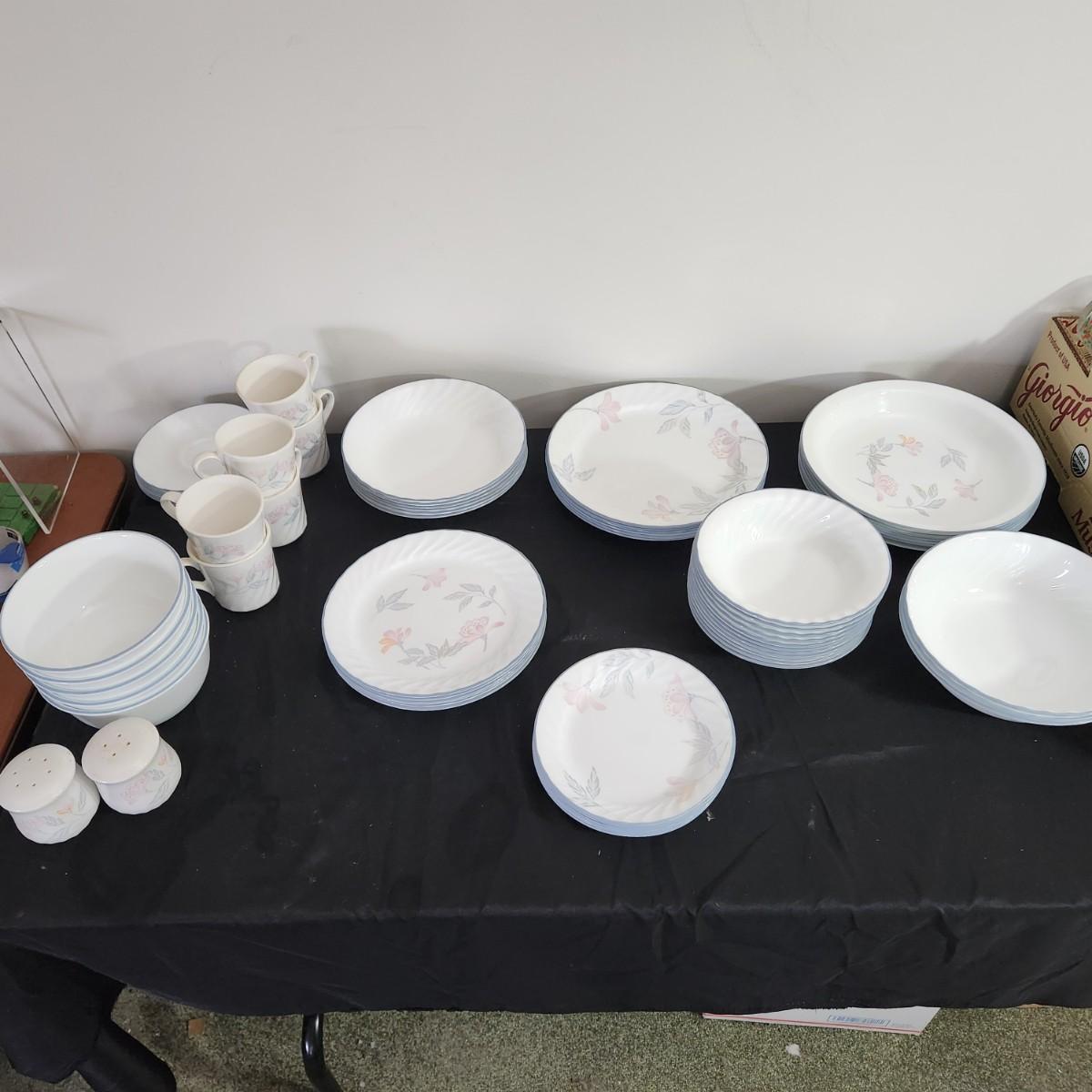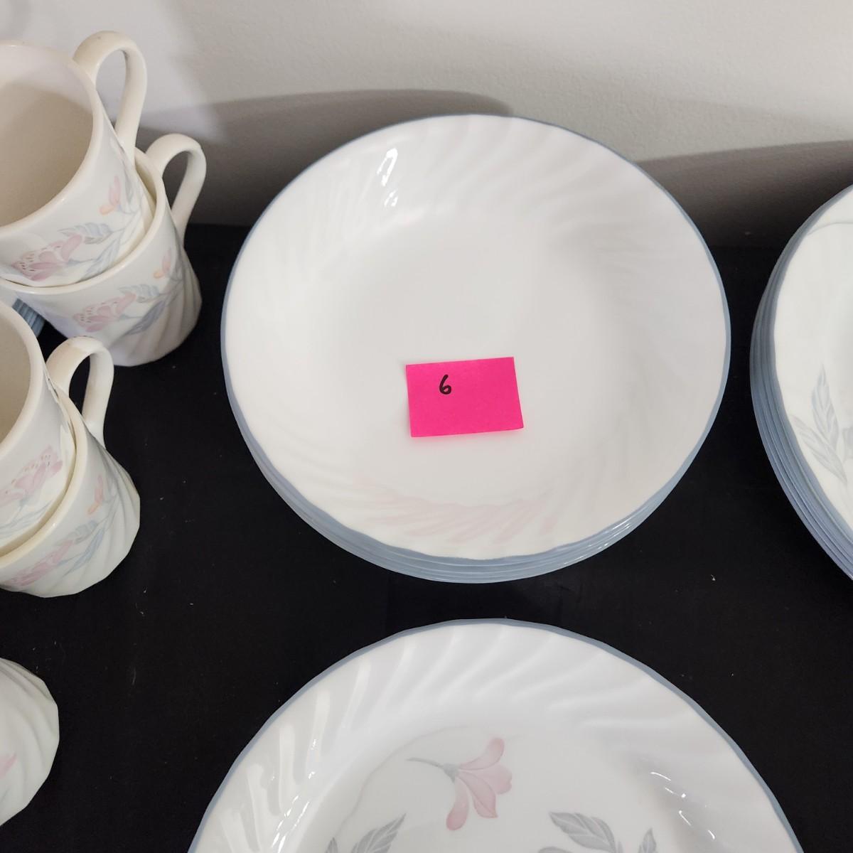 Large lot of Corning Corelle Pink Trio Plates, Cups Saucers Bowls Servers