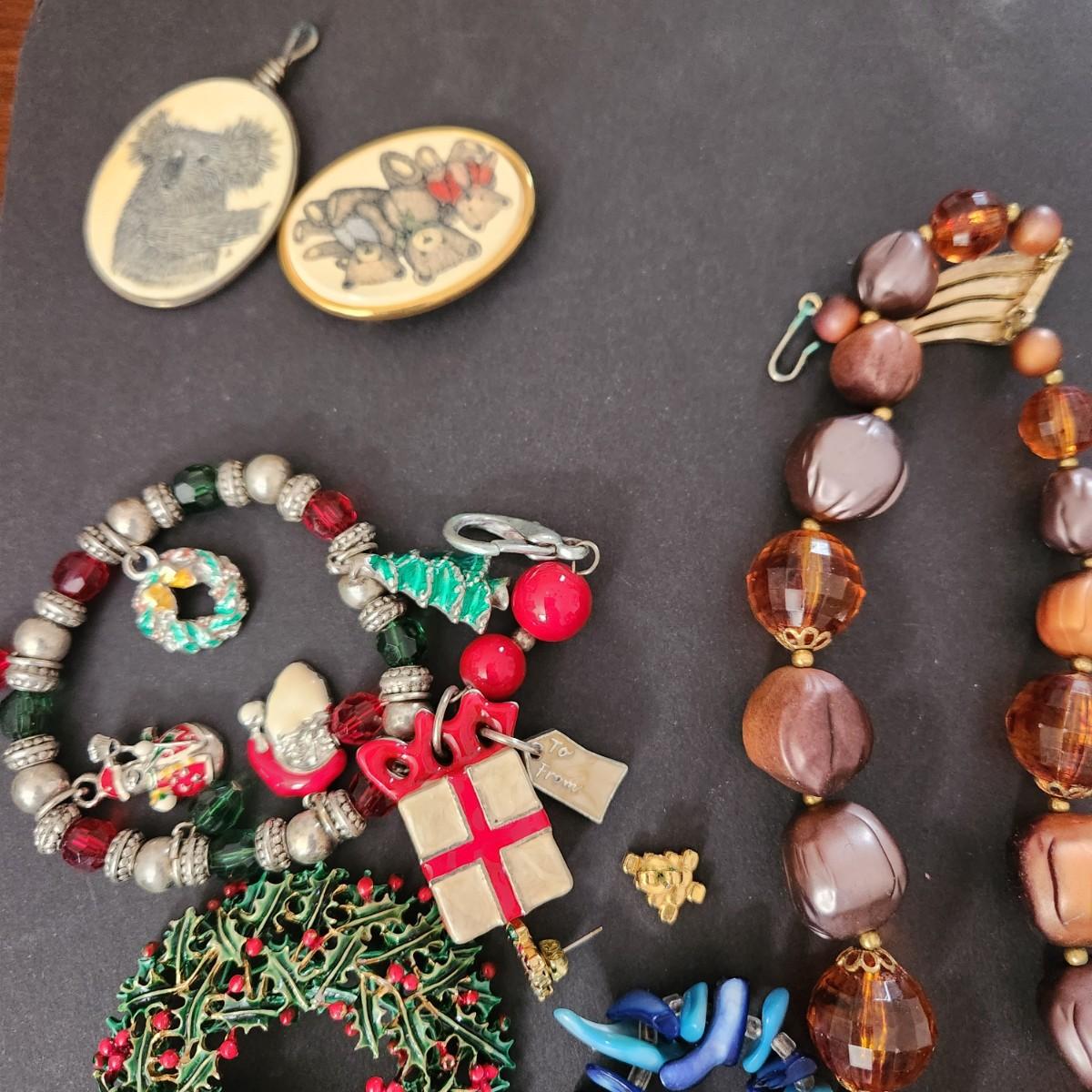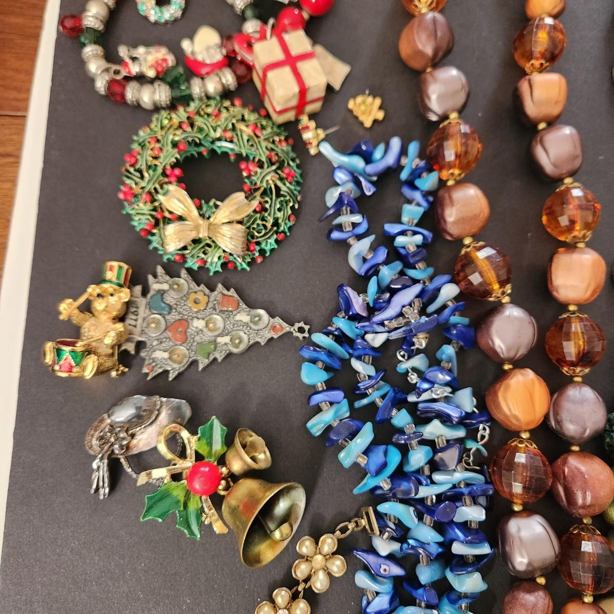 Large Lot of Costume Jewelry Christmas Pins Brooches Christopher Radko Pin P.S. Co Necklace Jewelry by Robbins