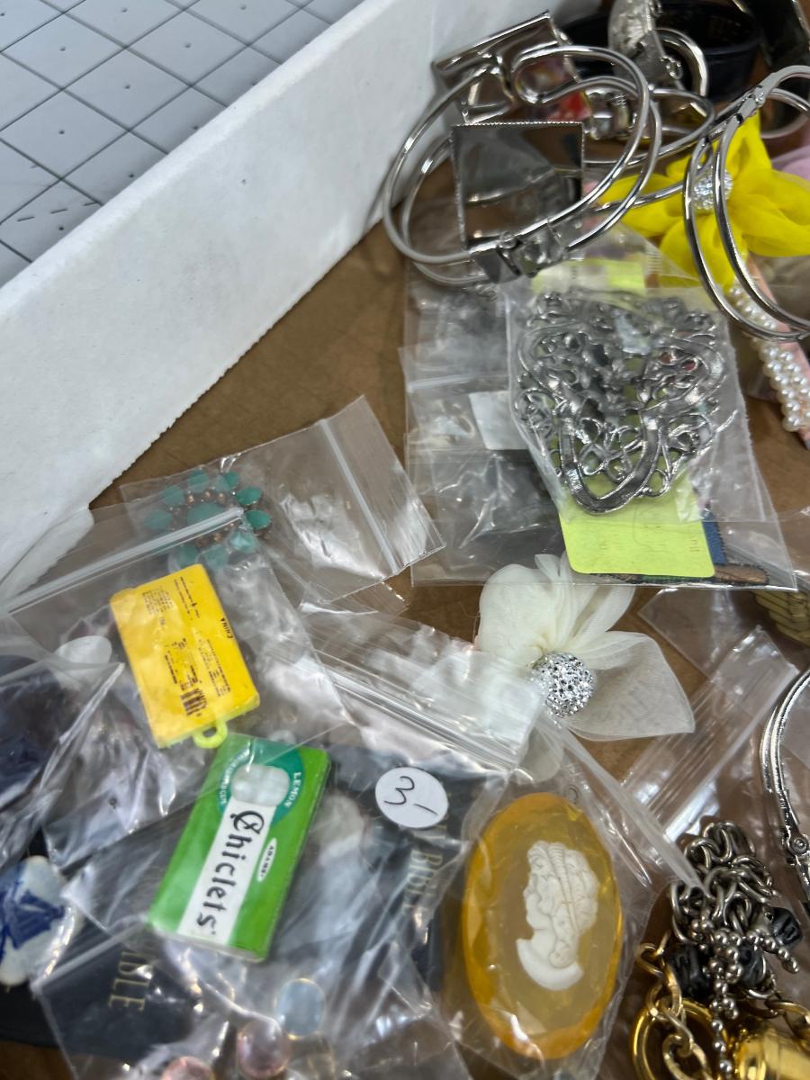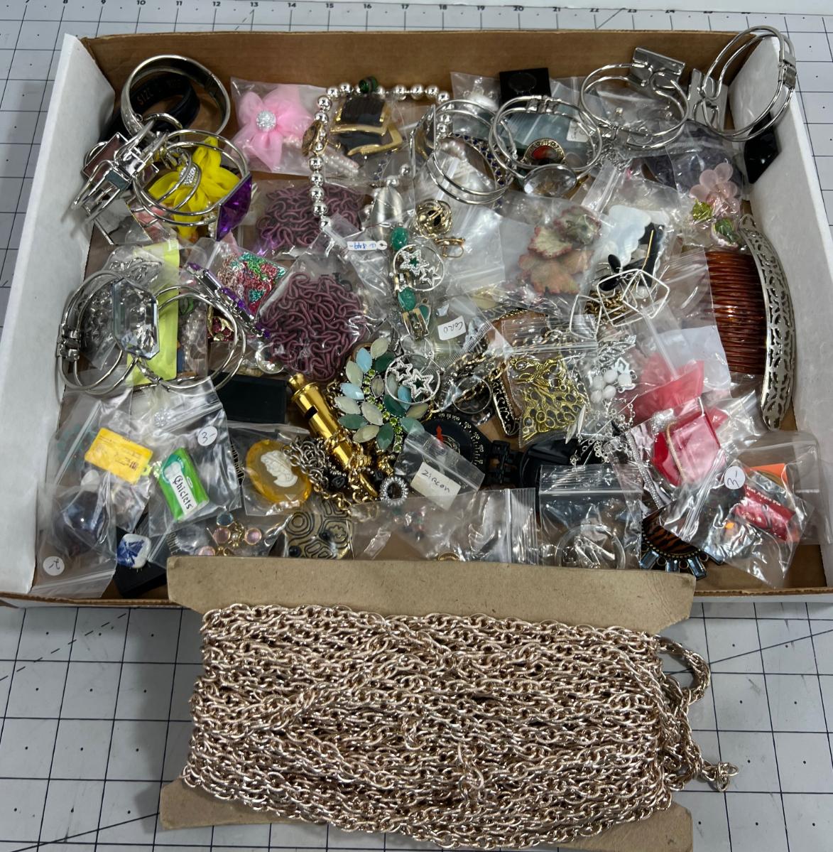 Large Lot of Costume Jewelry, Mixed Lot plus Gold Toned Chain for Décor'