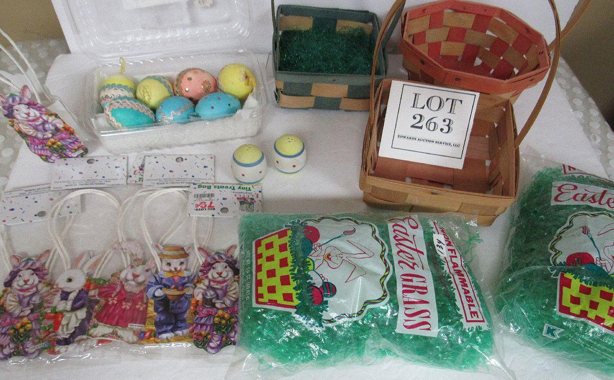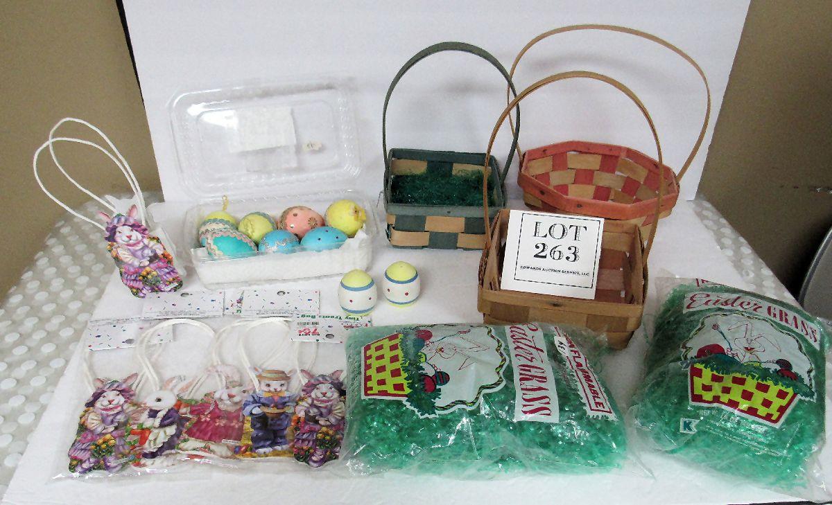 Large Lot of Easter Decor, Vintage Baskets, Grass, More