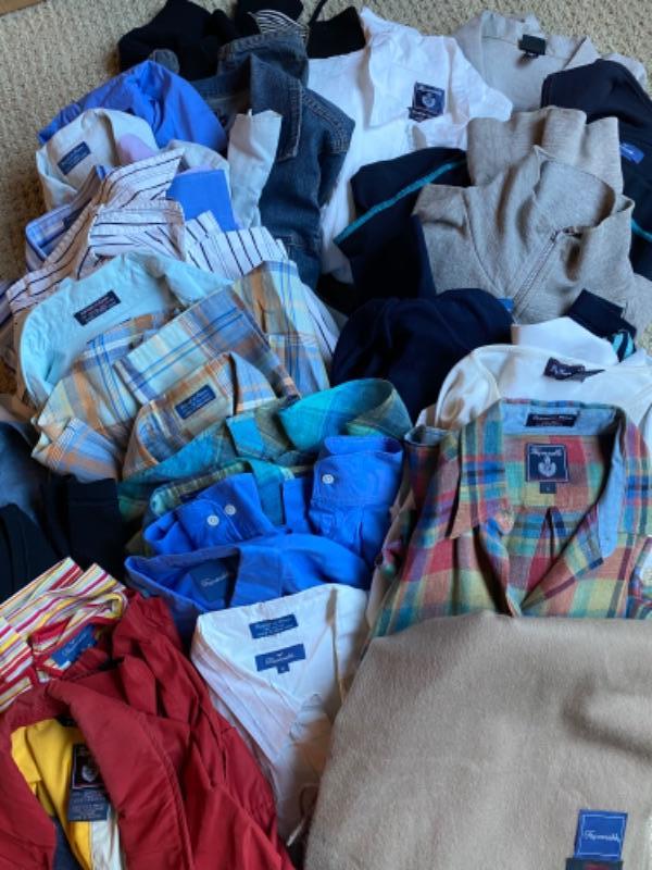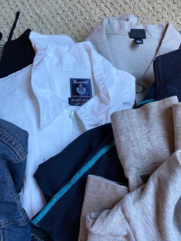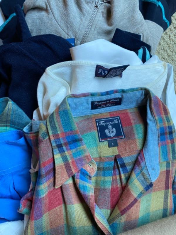 33. Large Lot of Faconnable Tops, Scarves, Jackets, Shirts, etc. (Woman’s Large)