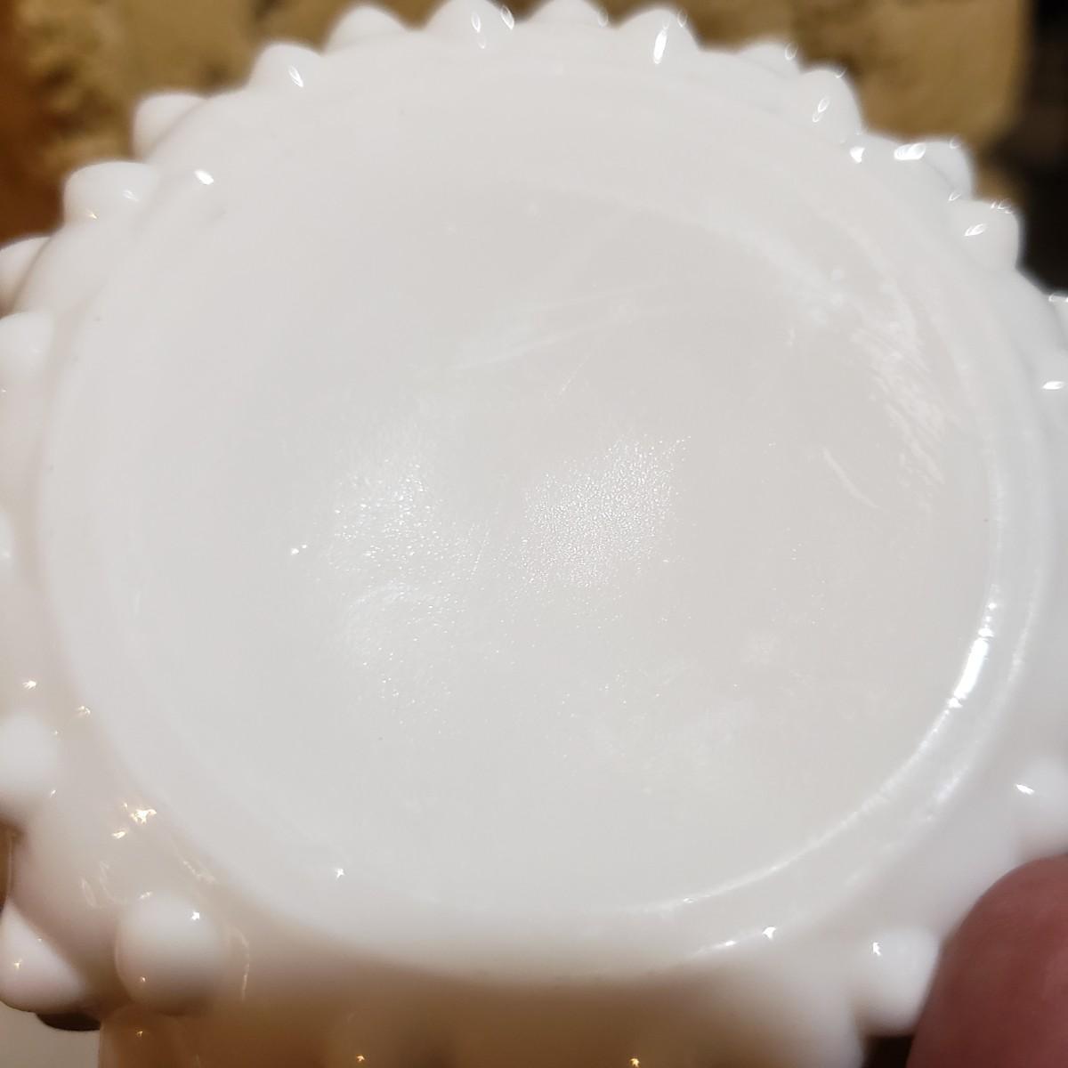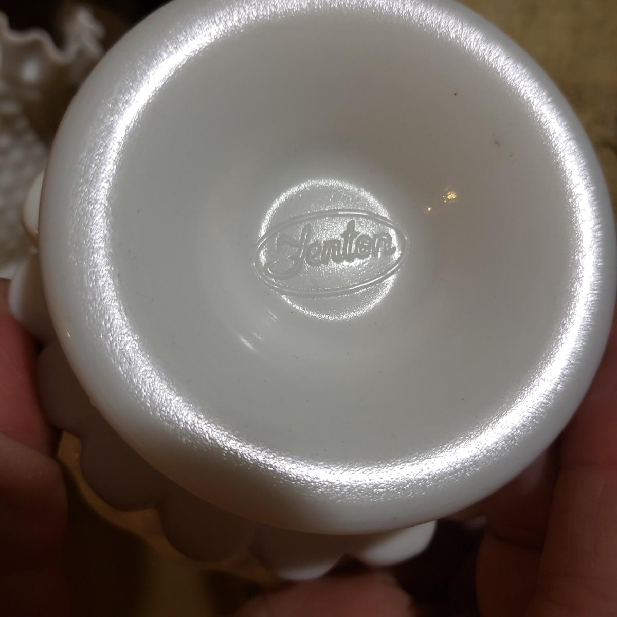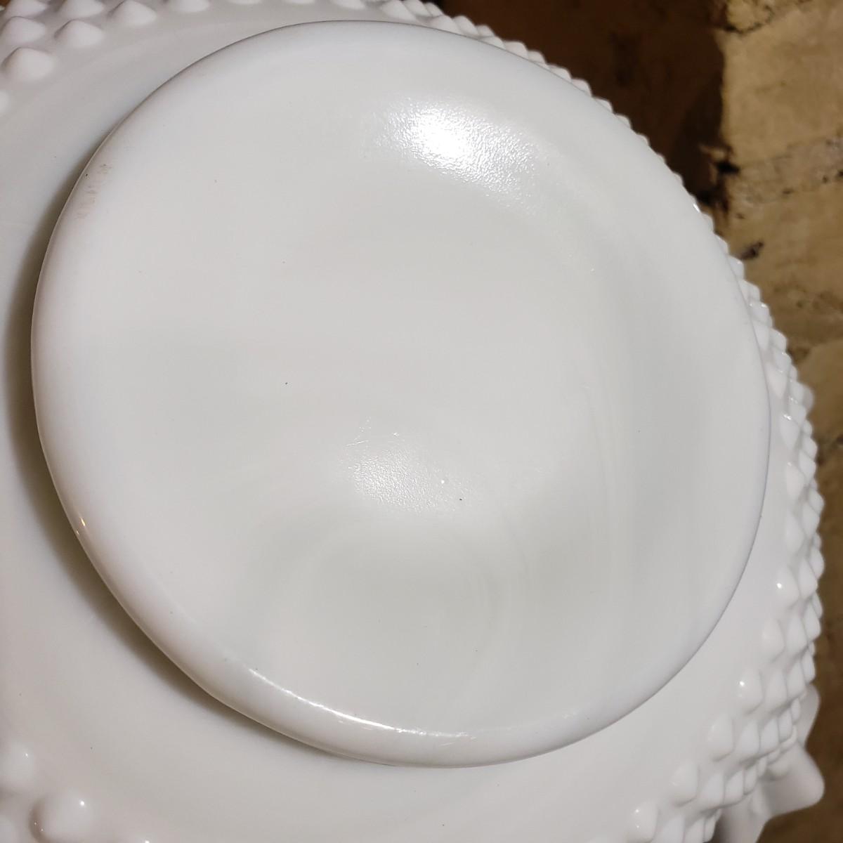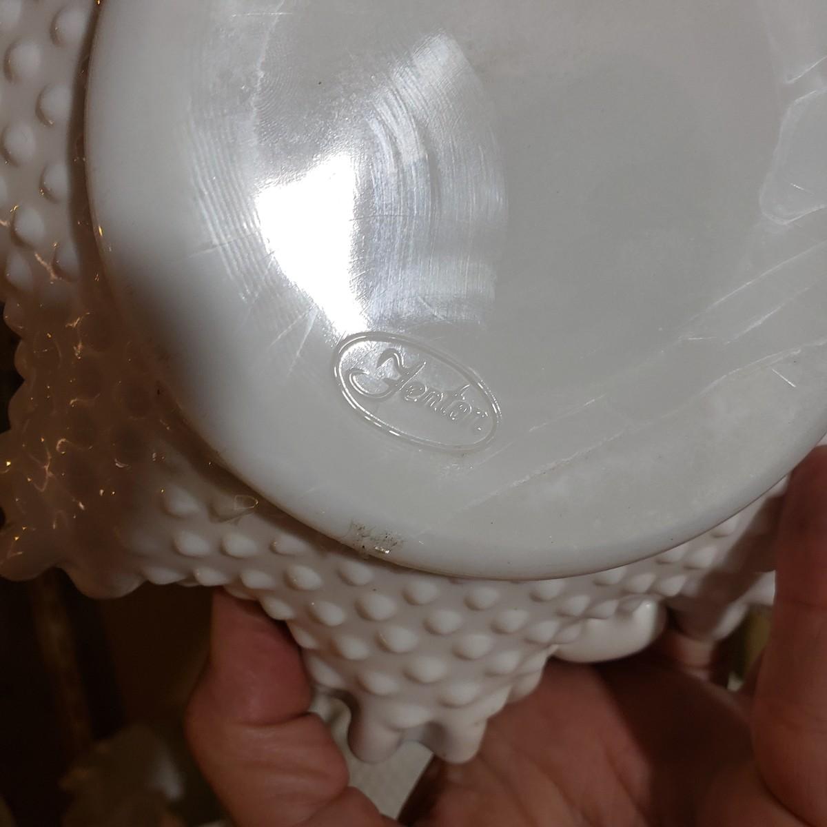 30 pieces of Fenton and other milk glass hobnail styled white glassware. All pieces appear to be blemish free. The largest basket measures 10" x 10"H. The tallest vase measures 6" x 12"H.