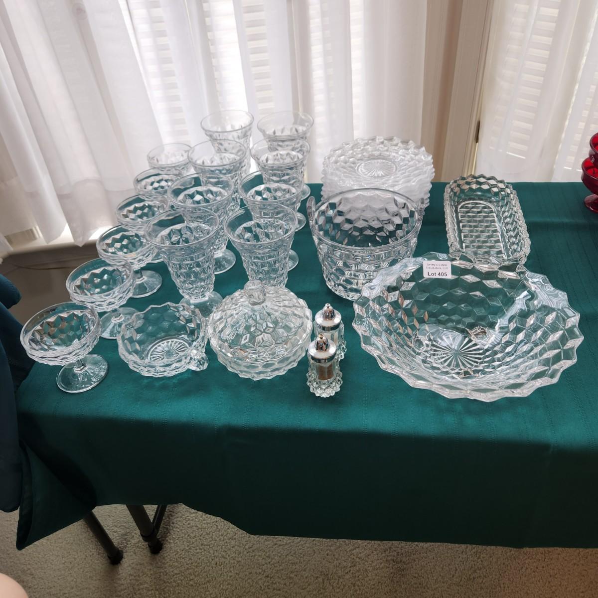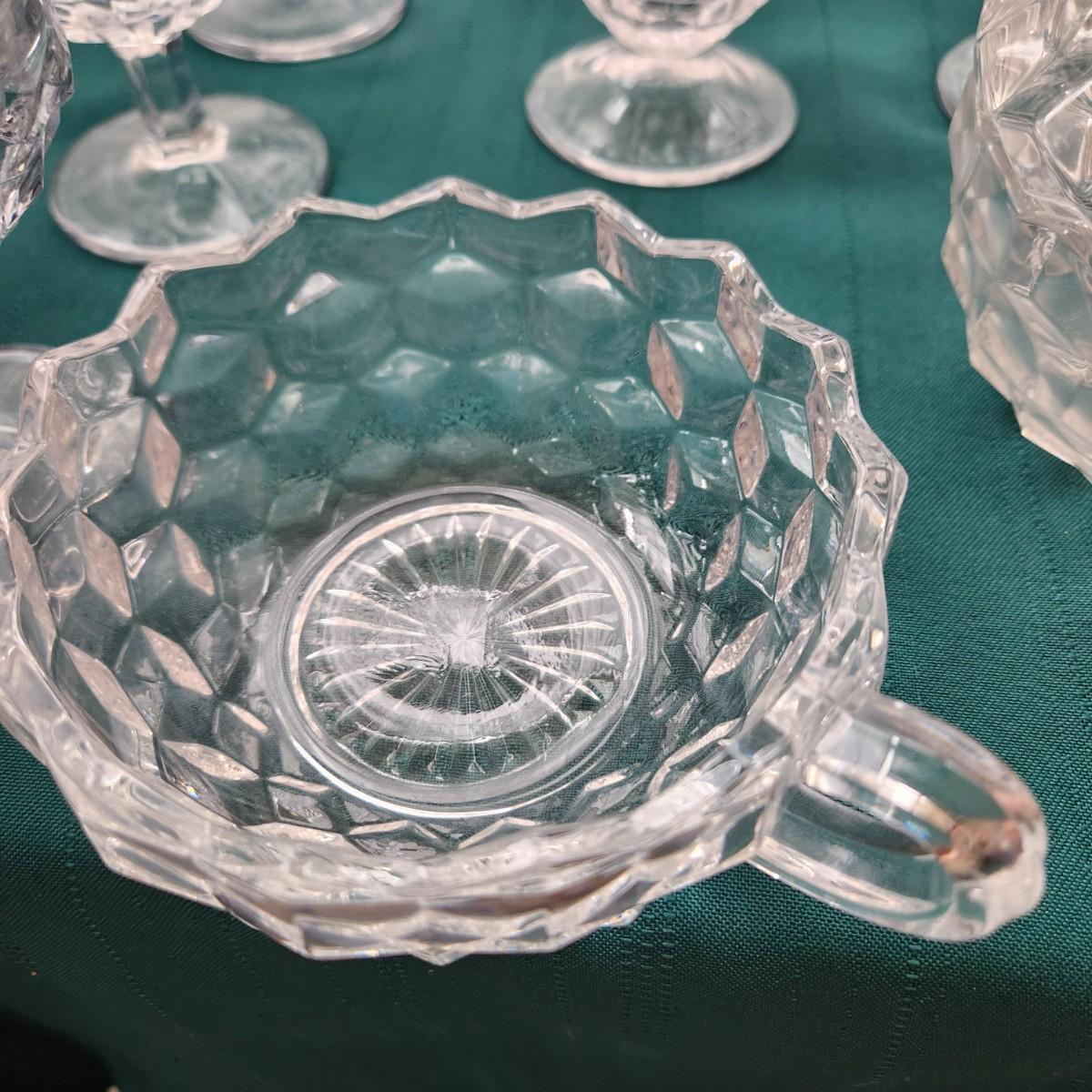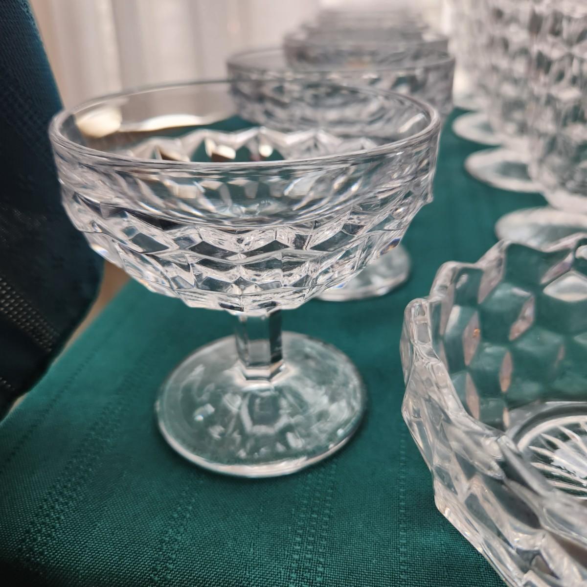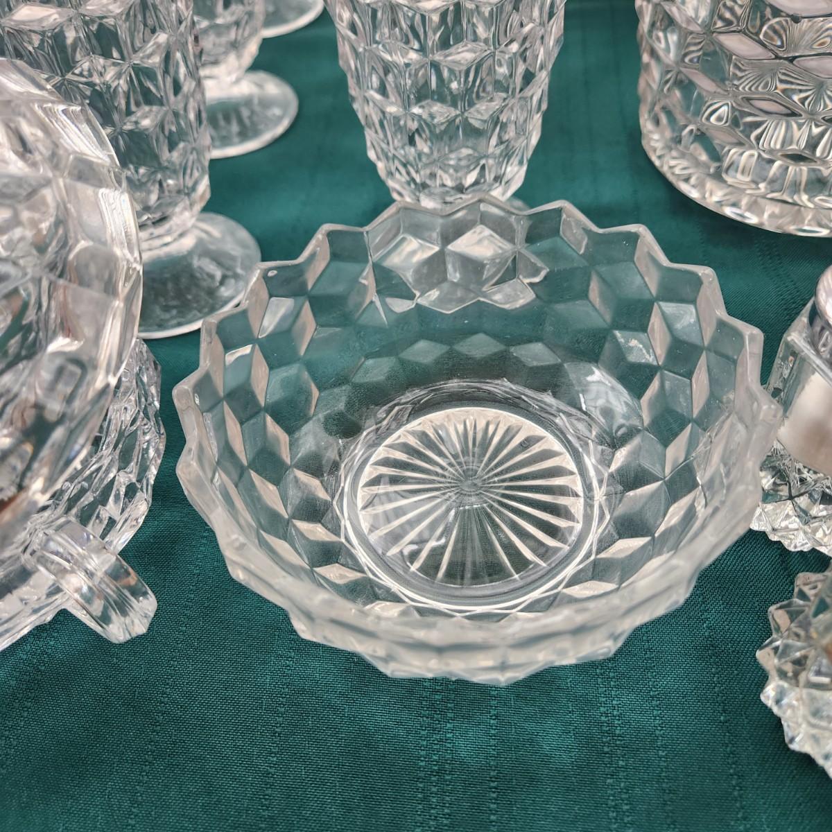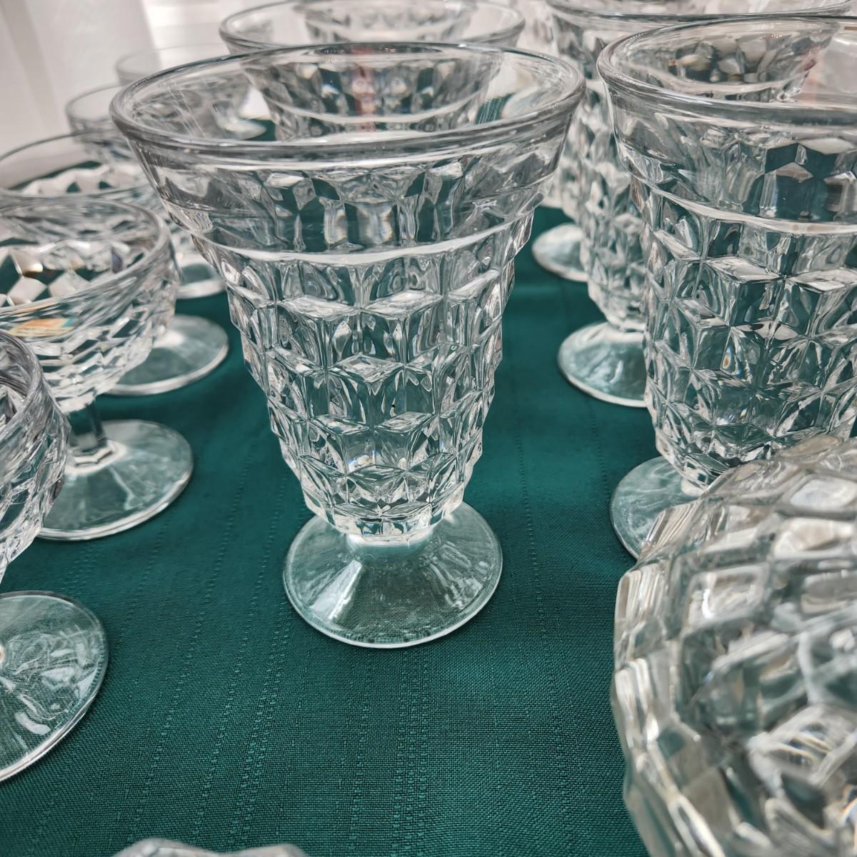 large Lot of Fostoria American Glass Bowl , Ice Tea Glasses , Plates, Sherbet, Salt pepper