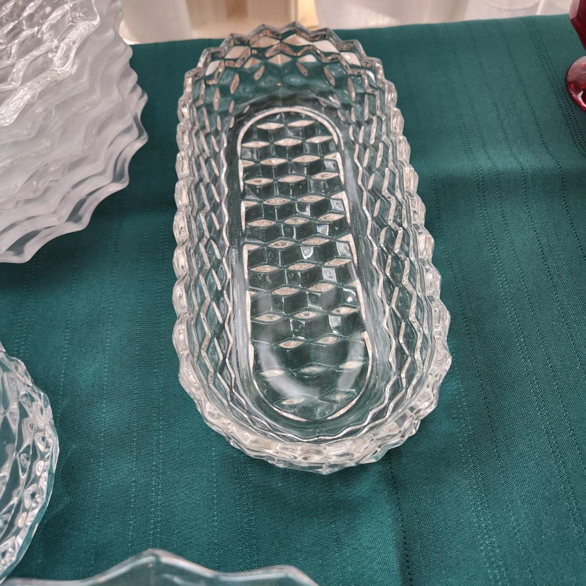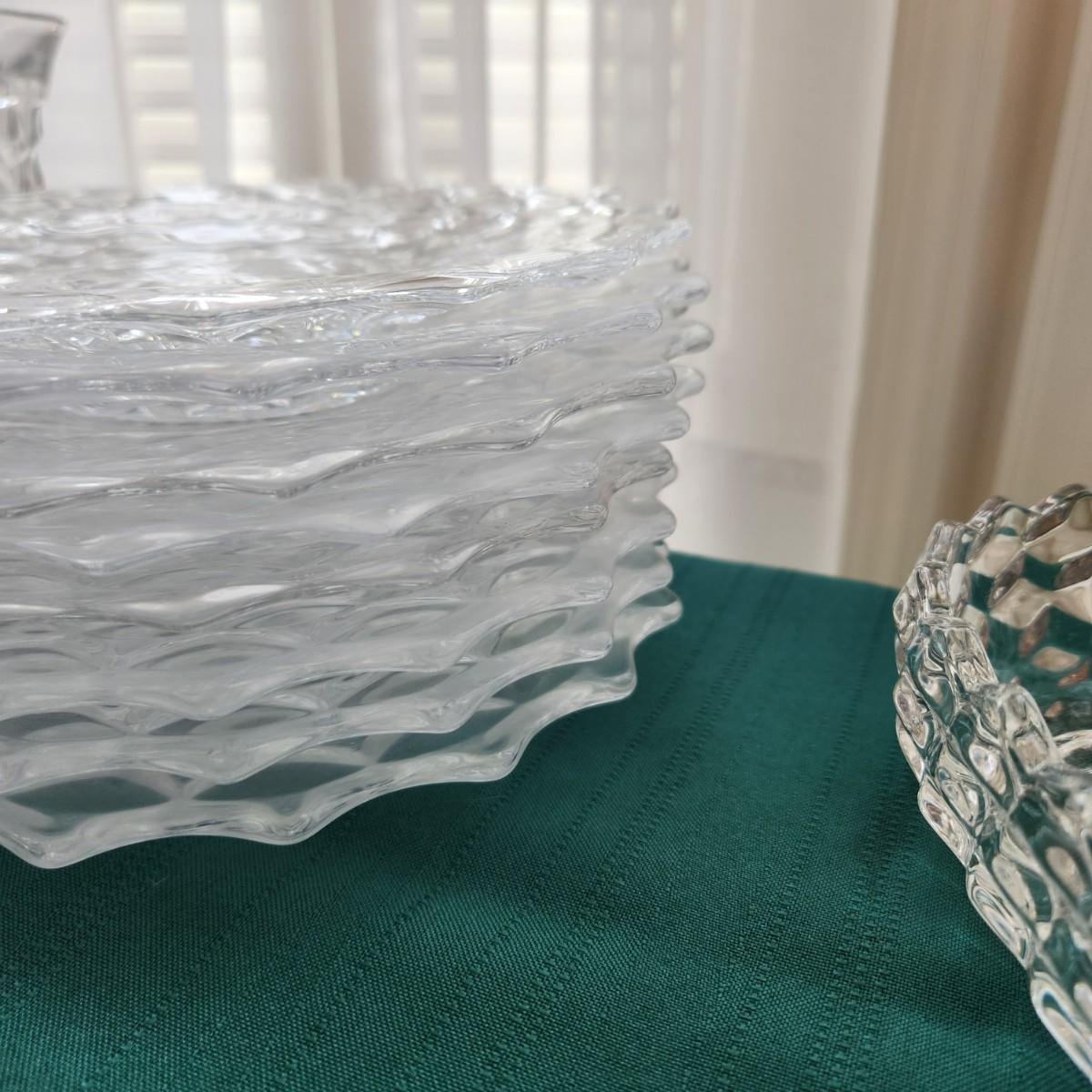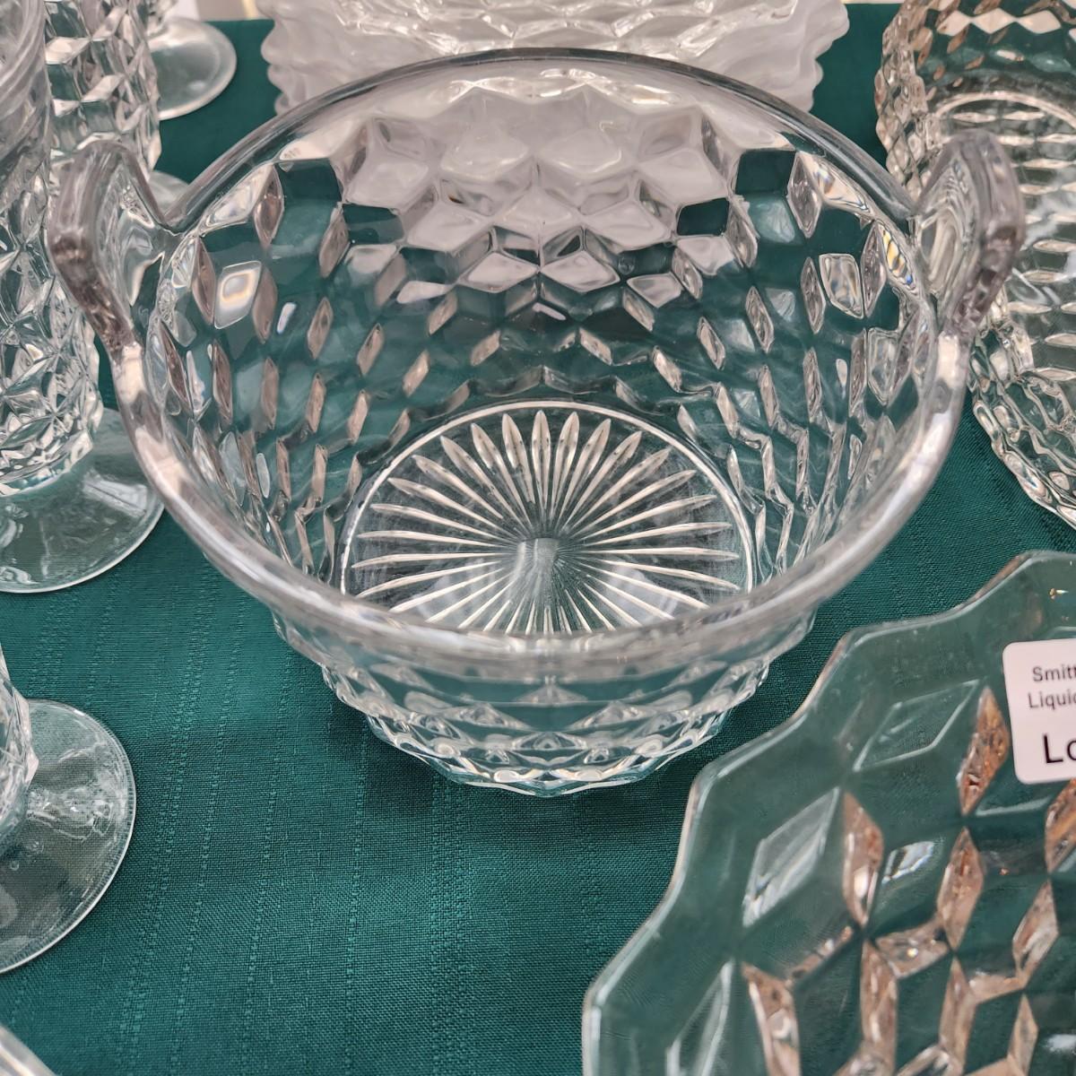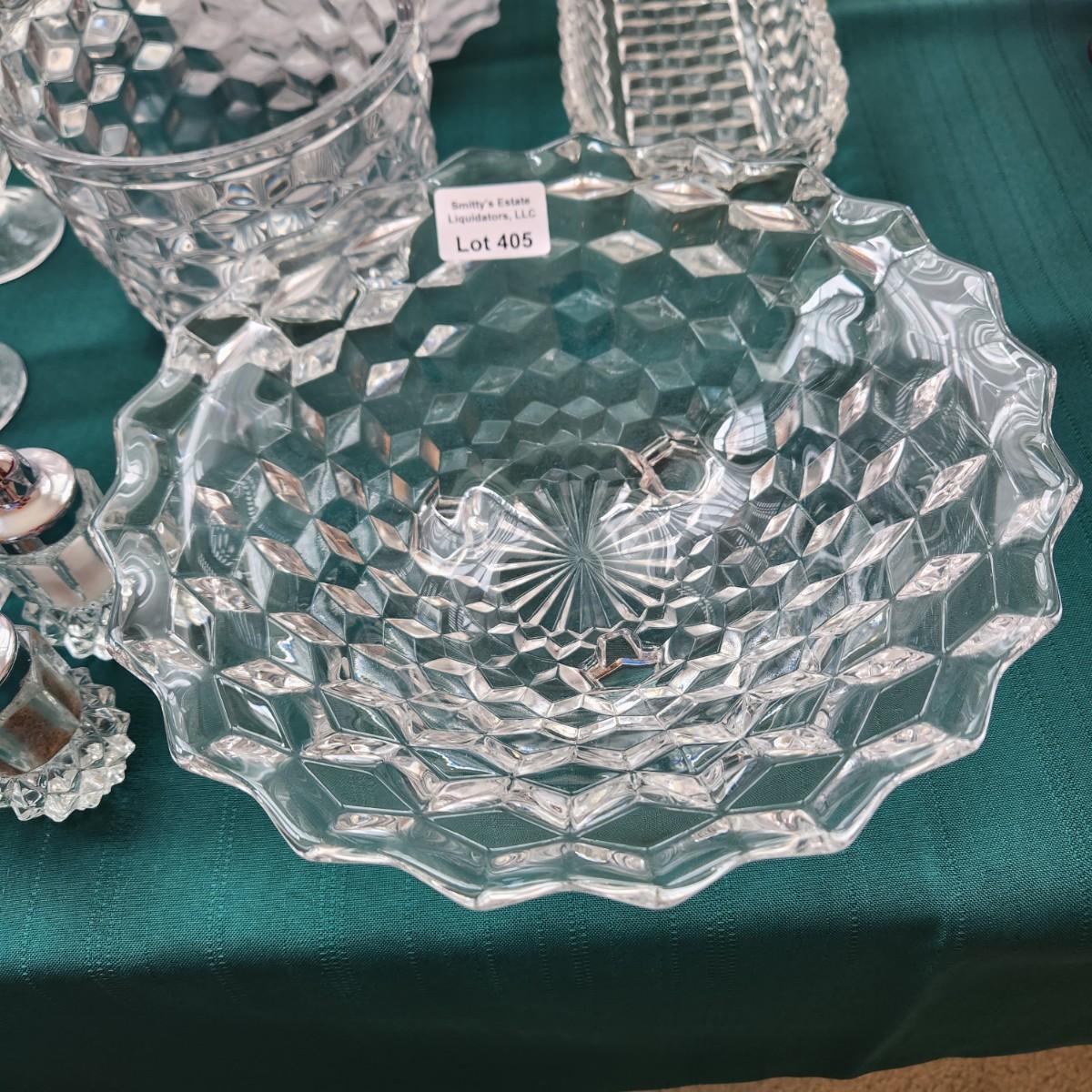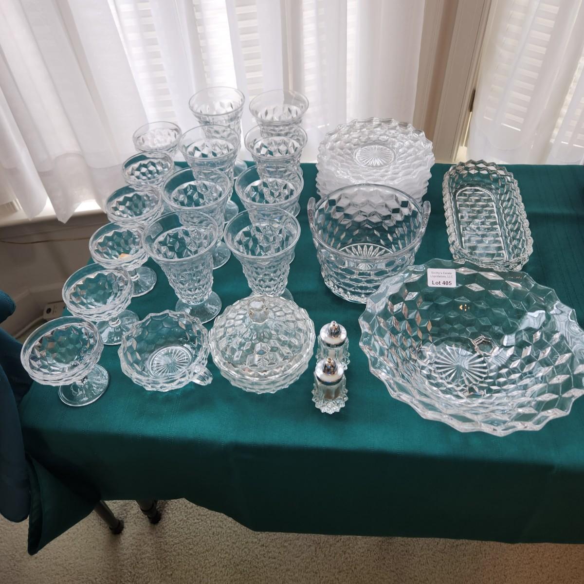 large Lot of Fostoria American Glass Bowl , Ice Tea Glasses , Plates, Sherbet, Salt pepper