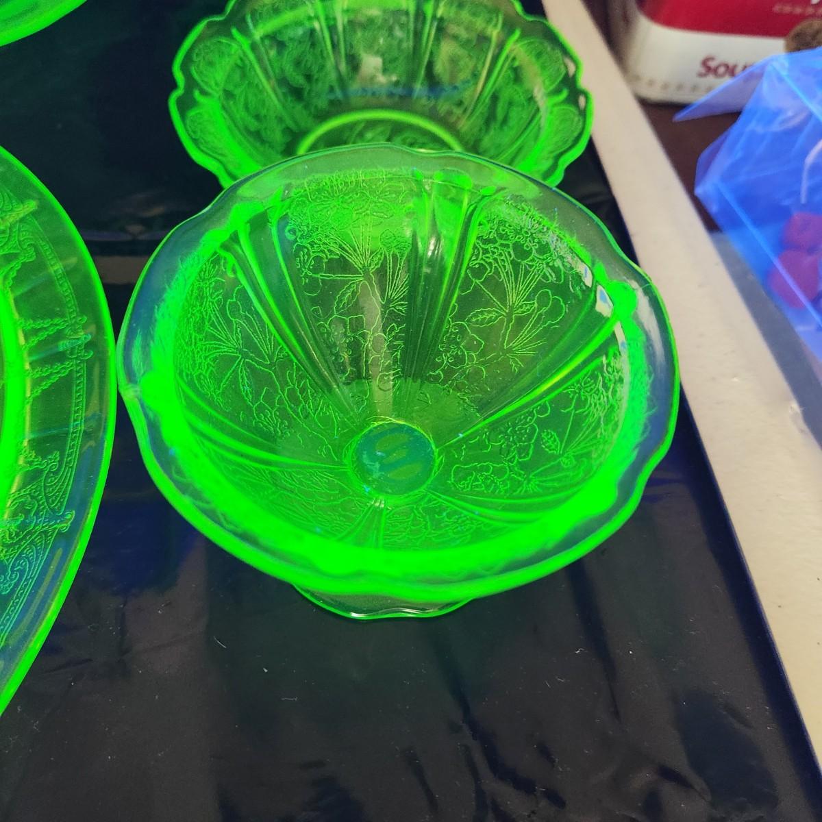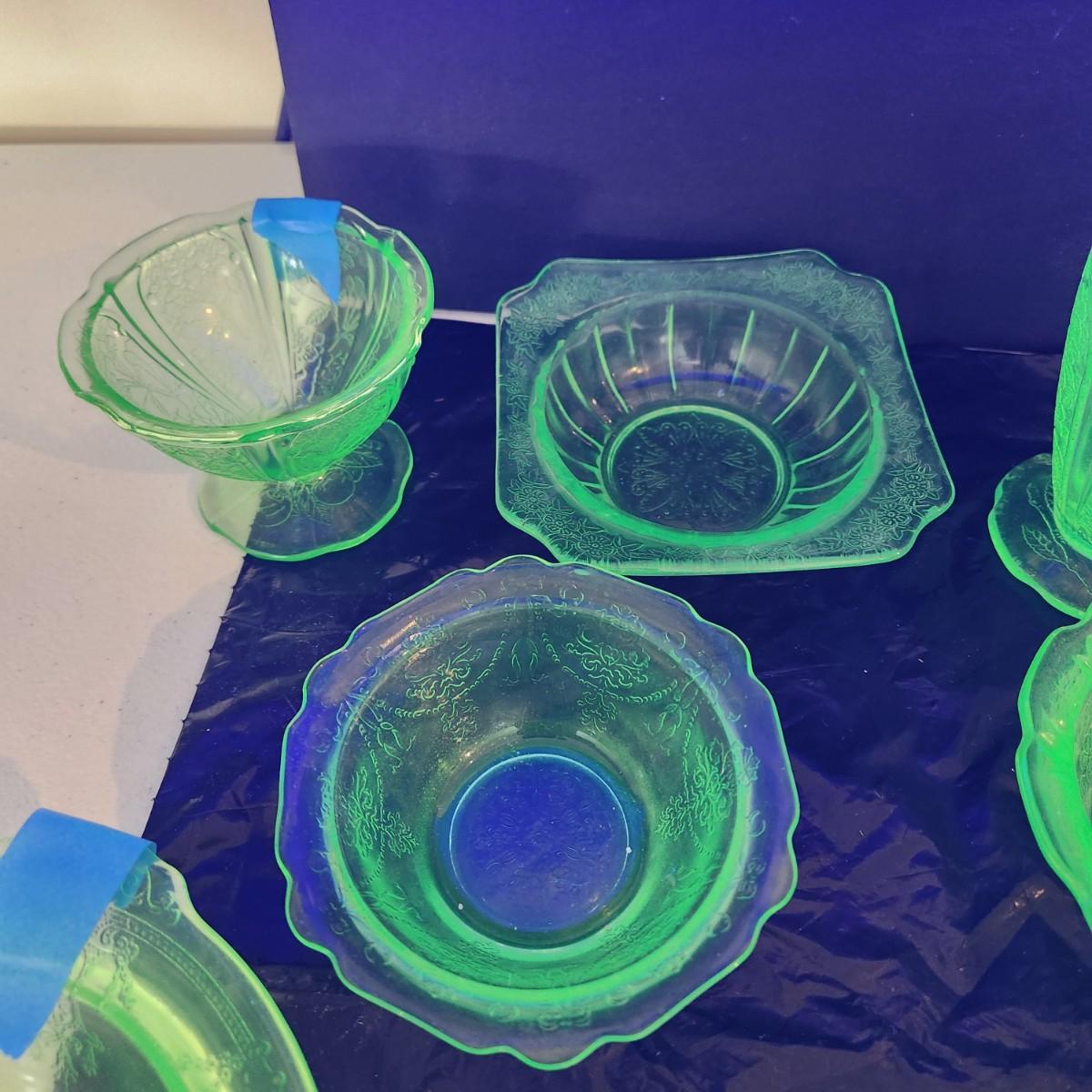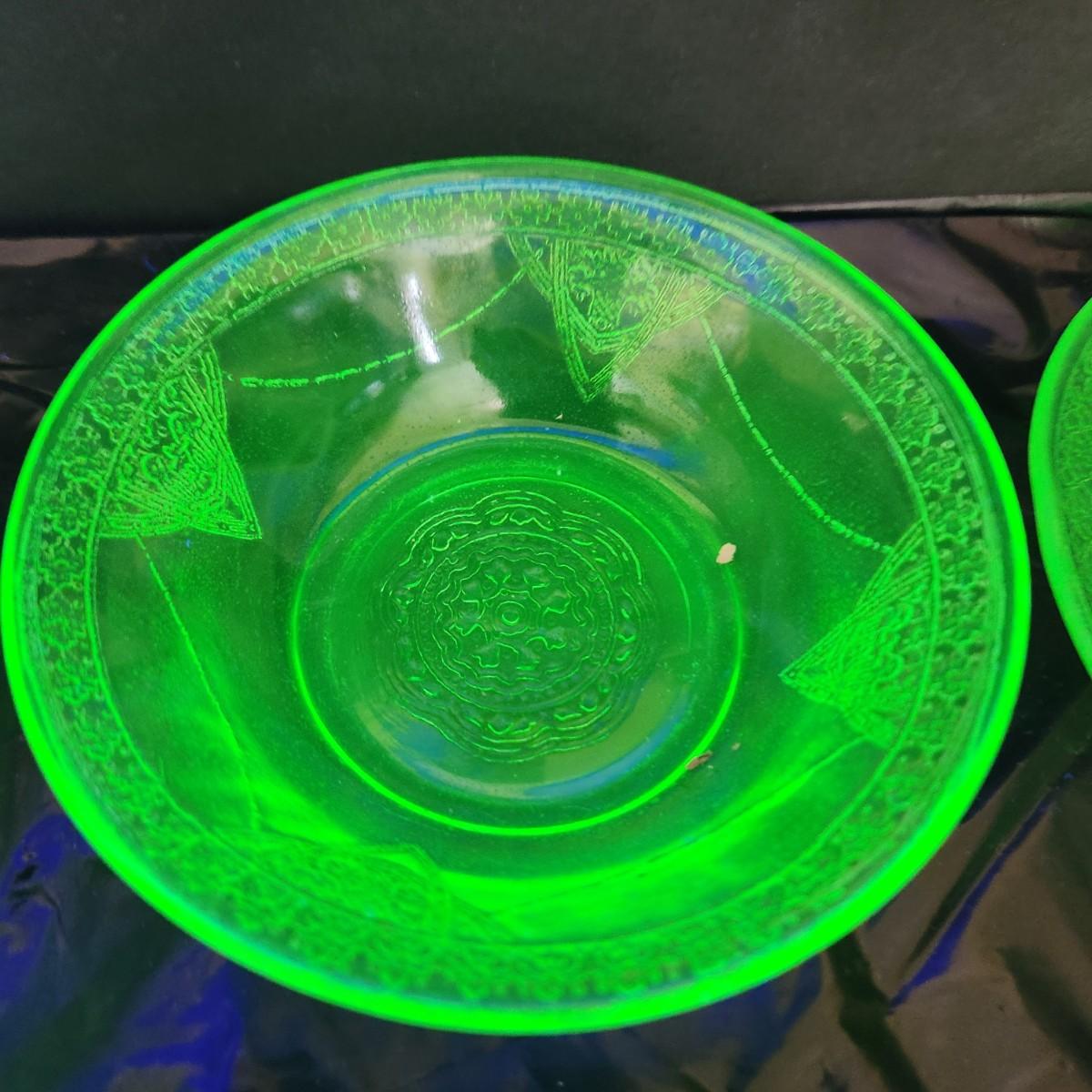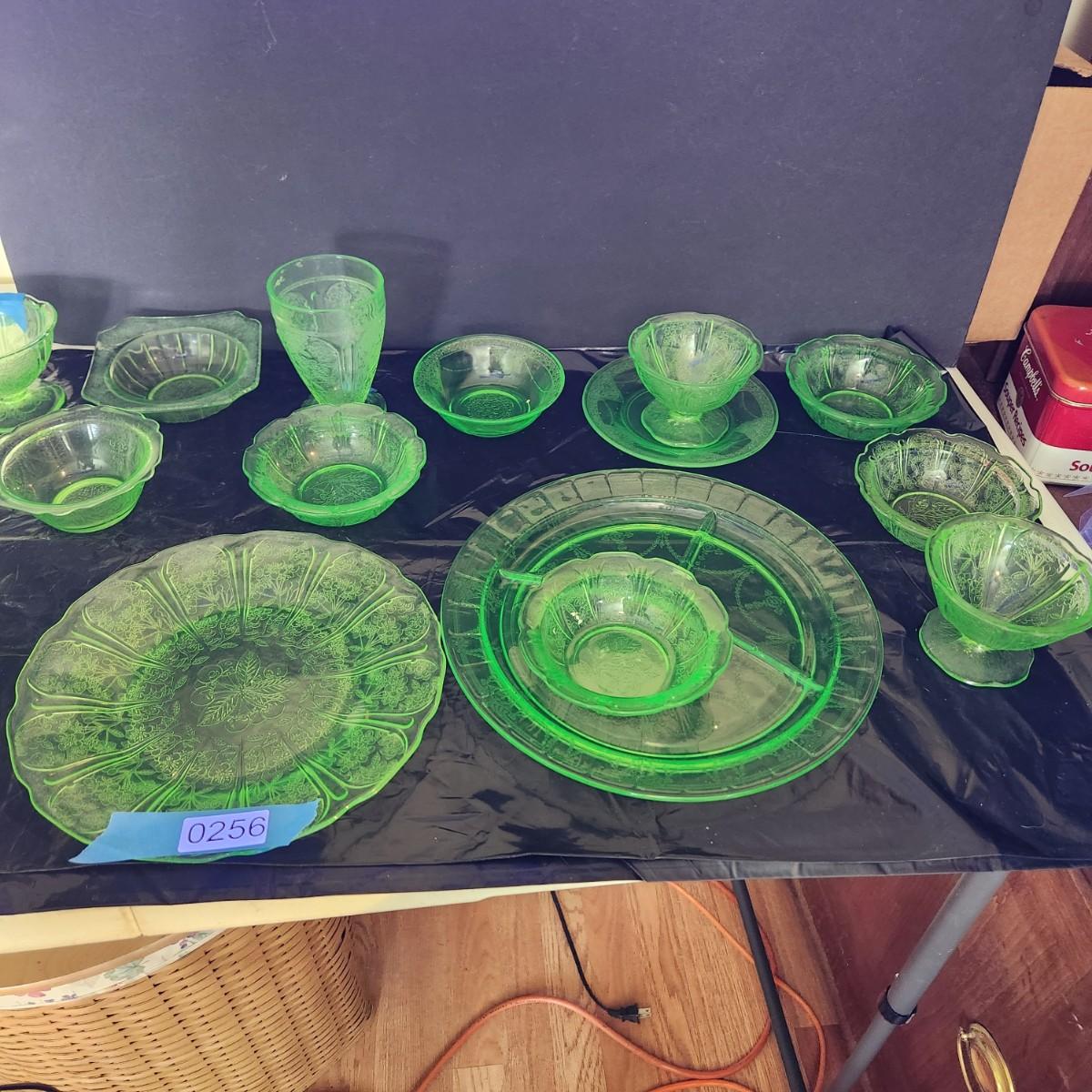 Large Lot of Green Glass Vaseline Uranium Glass Plates, Glass, Bowls