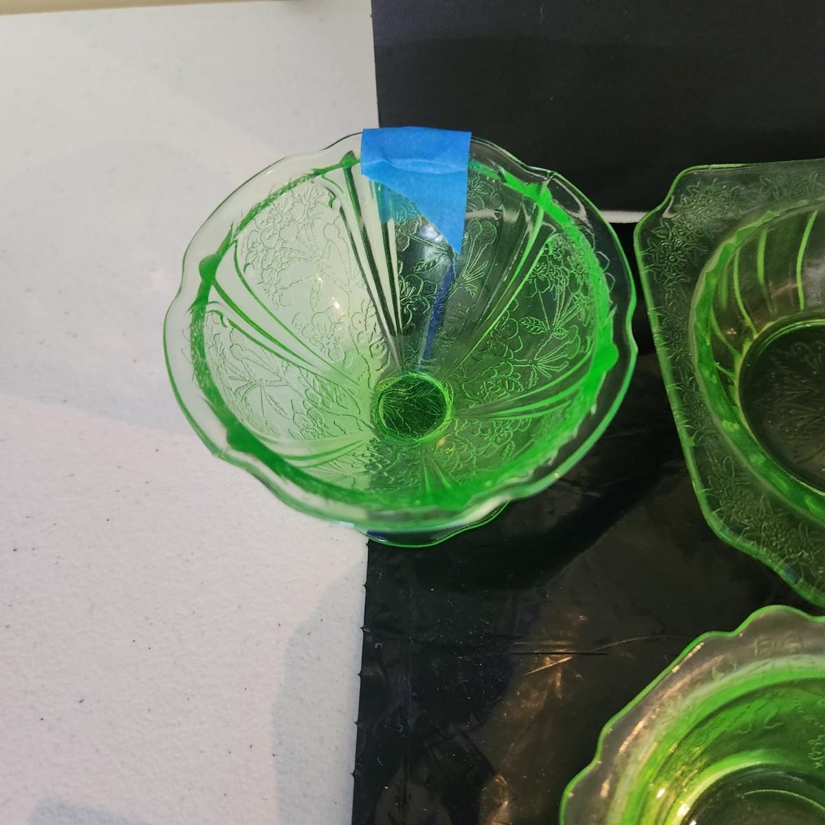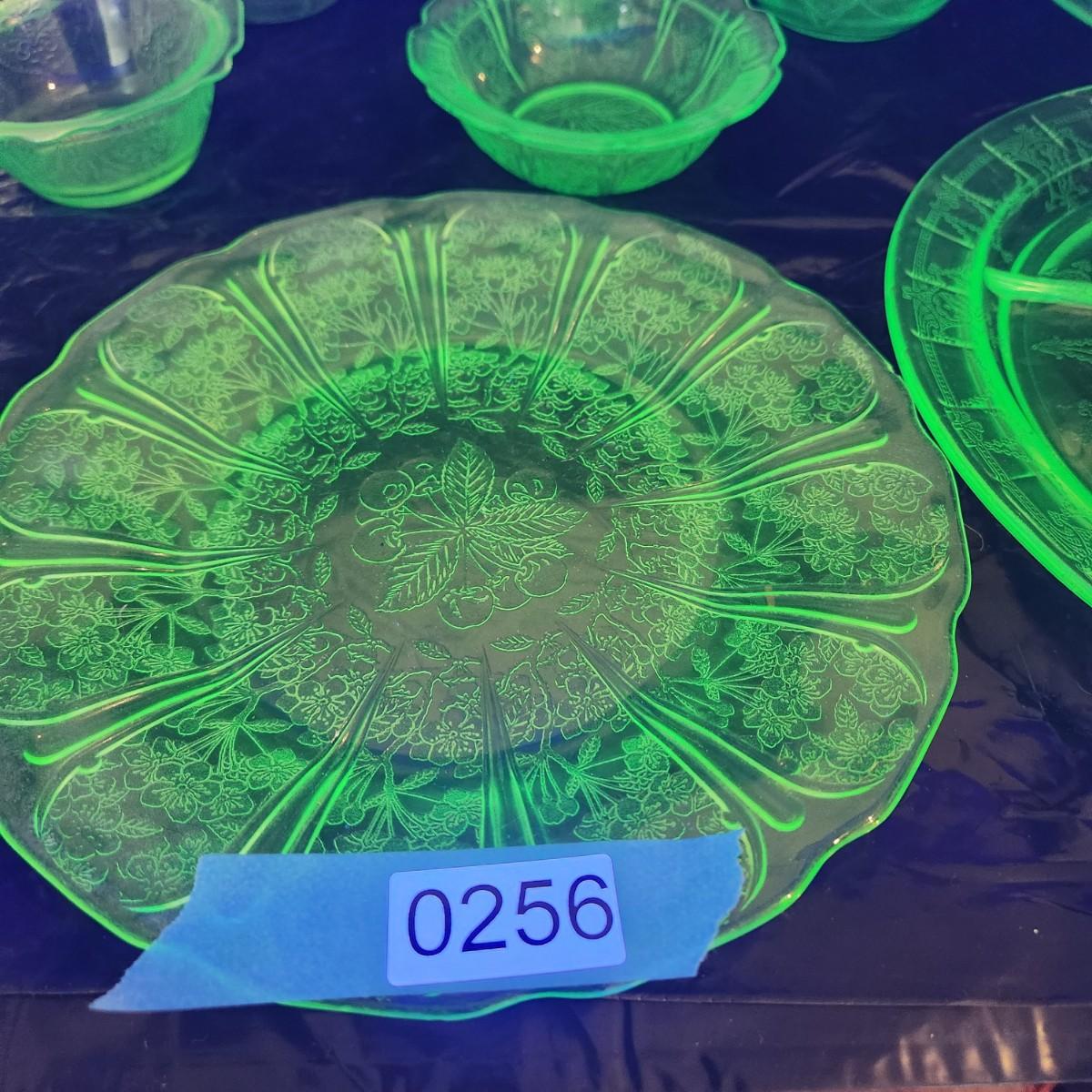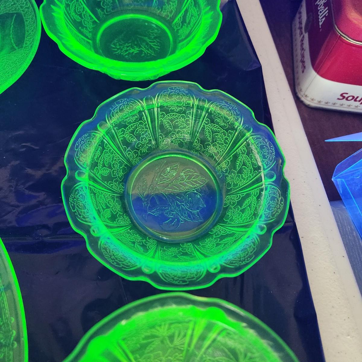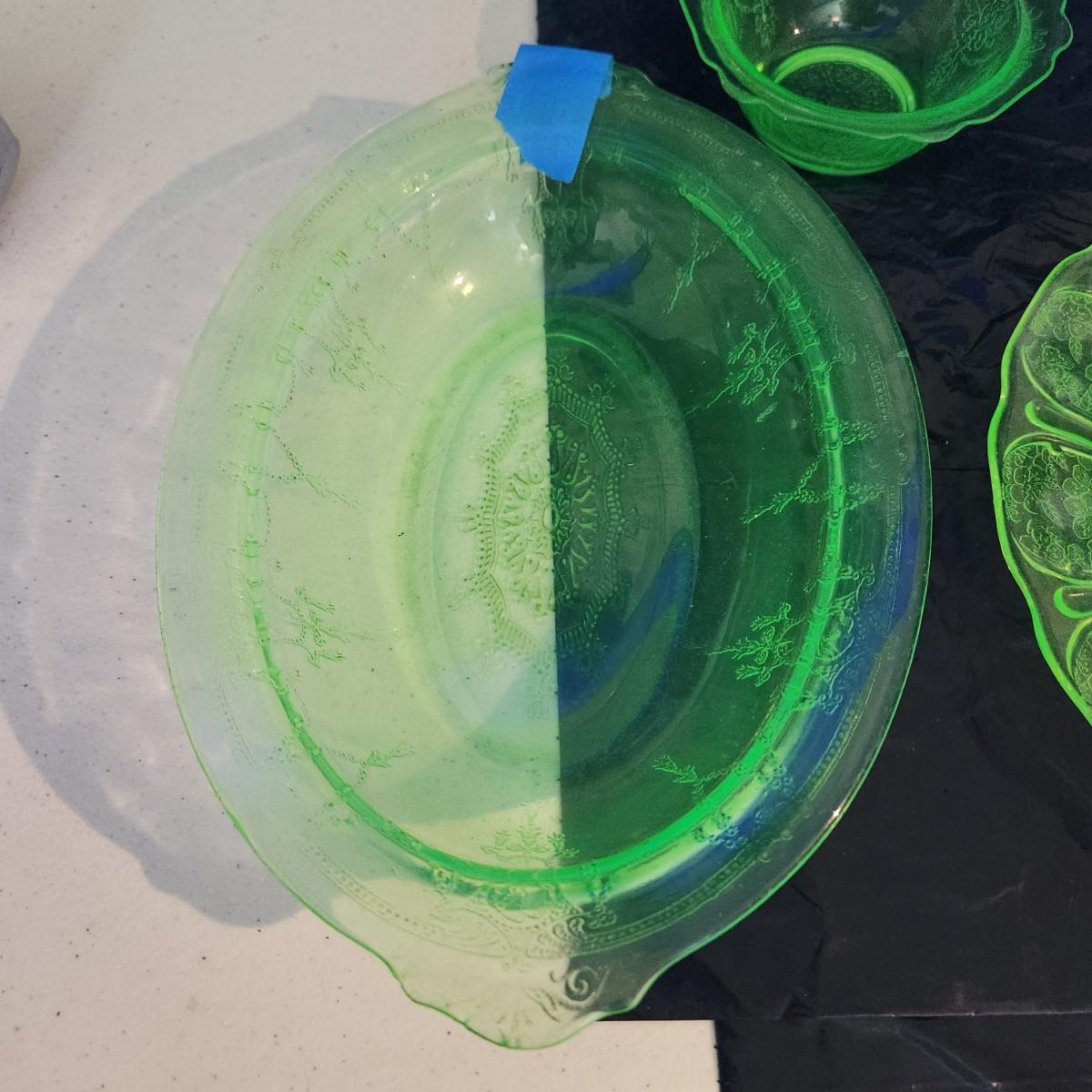Large Lot of Green Glass Vaseline Uranium Glass Plates, Glass, Bowls