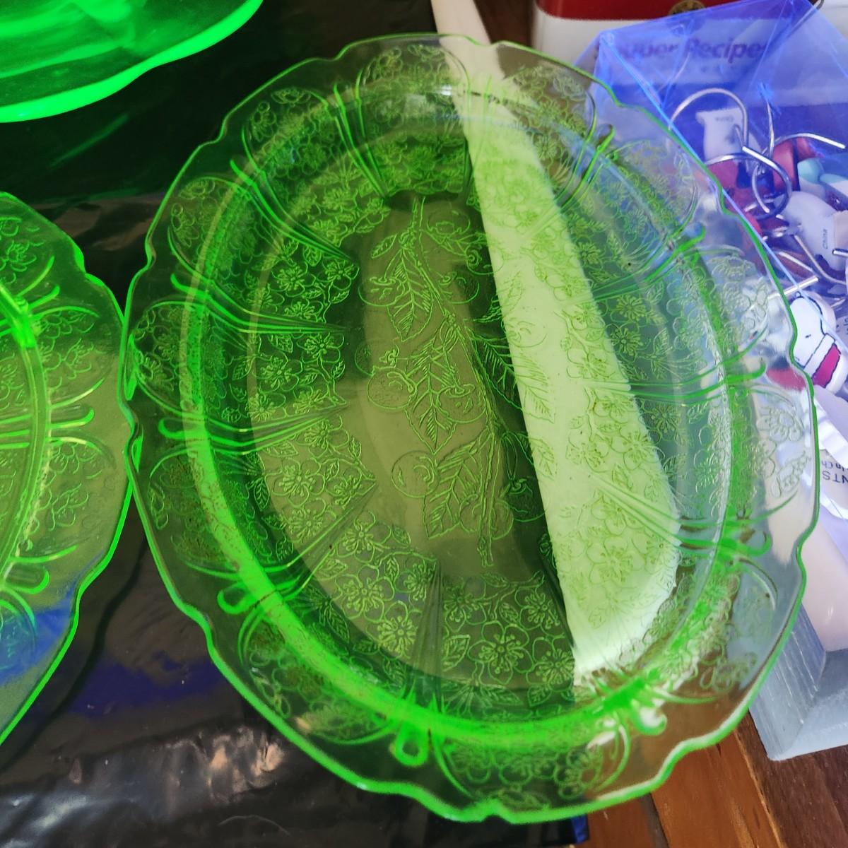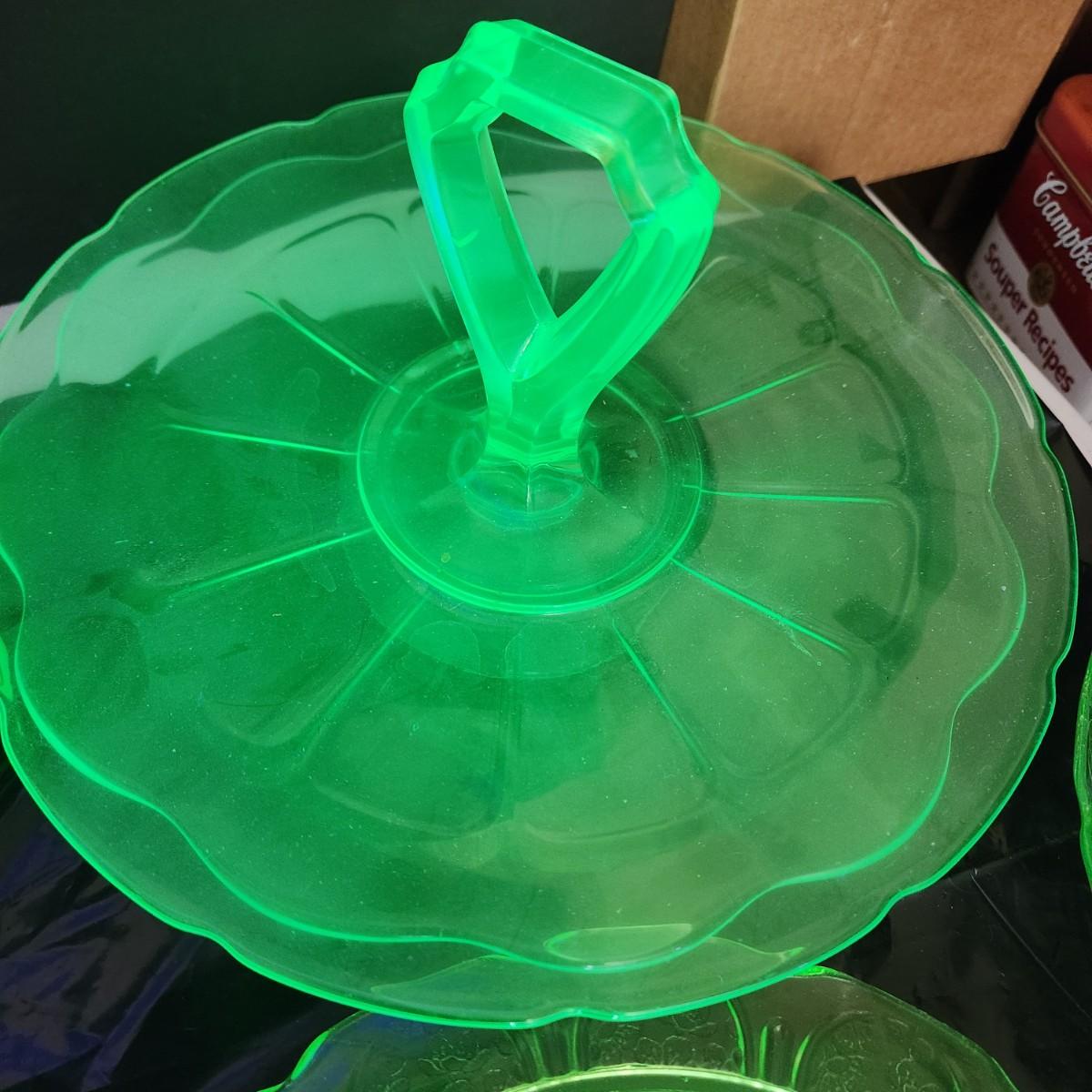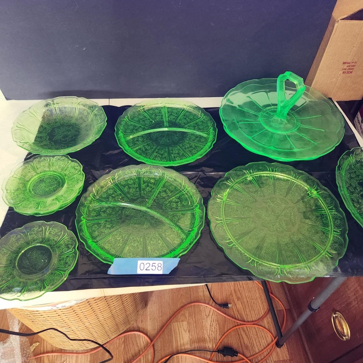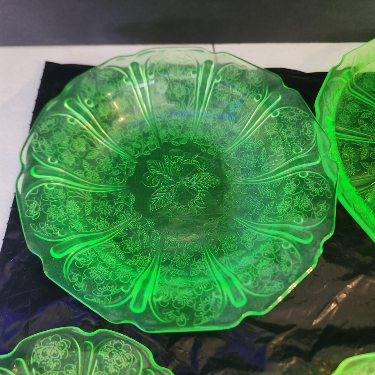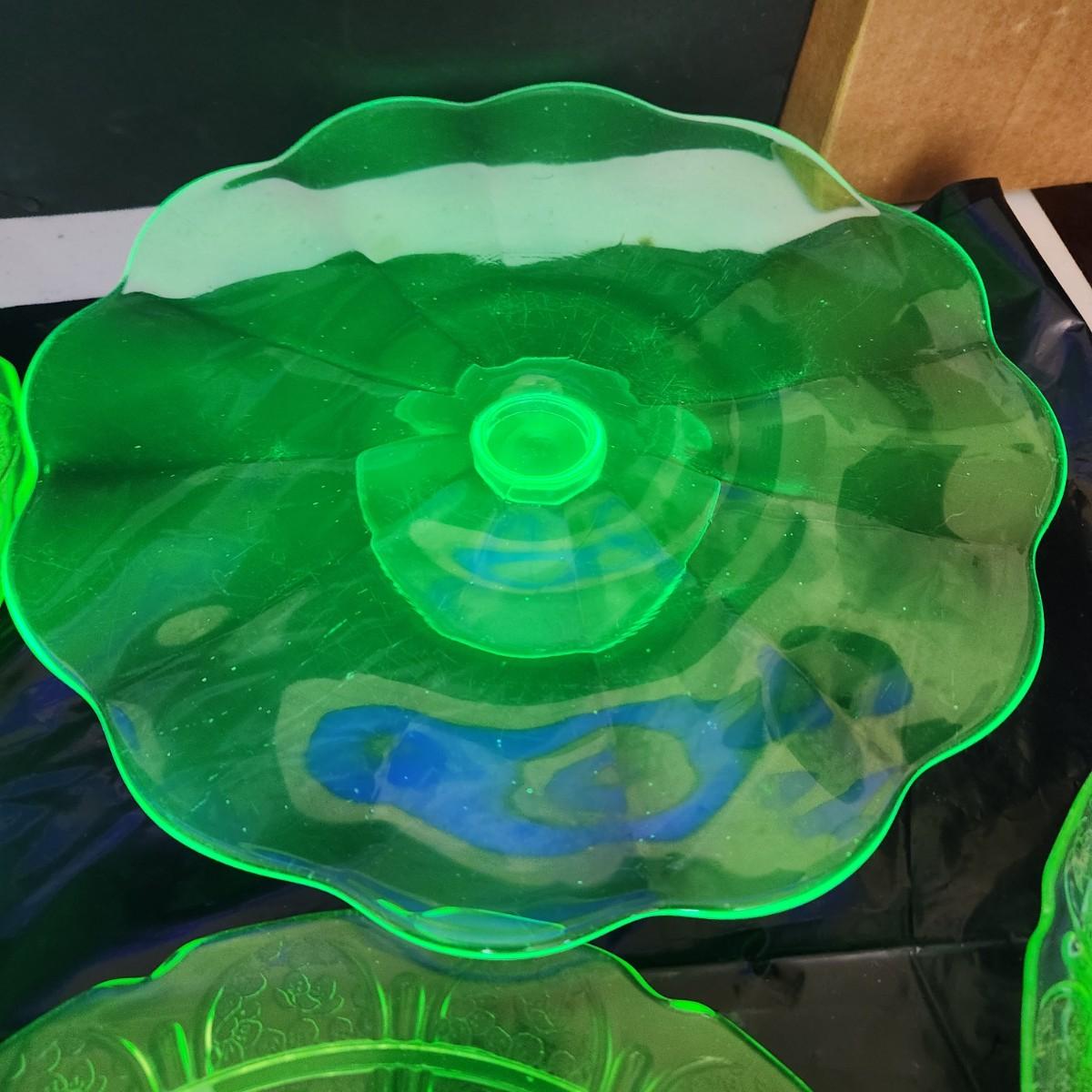 Large Lot of Green Glass Vaseline Uranium Glass Plates, Serving Dishes