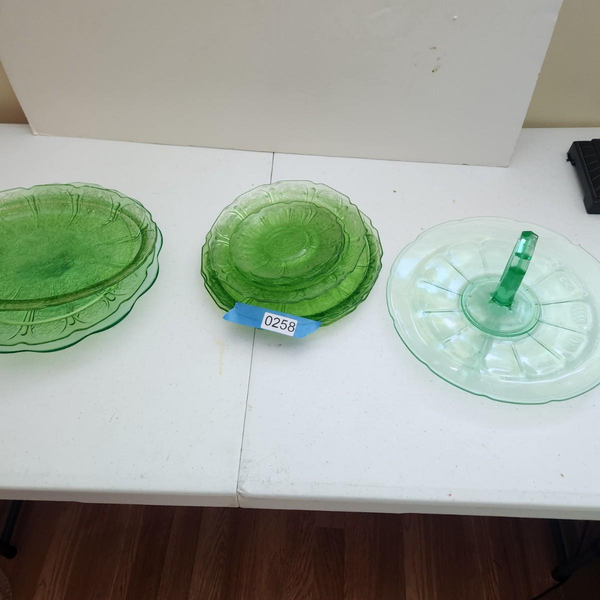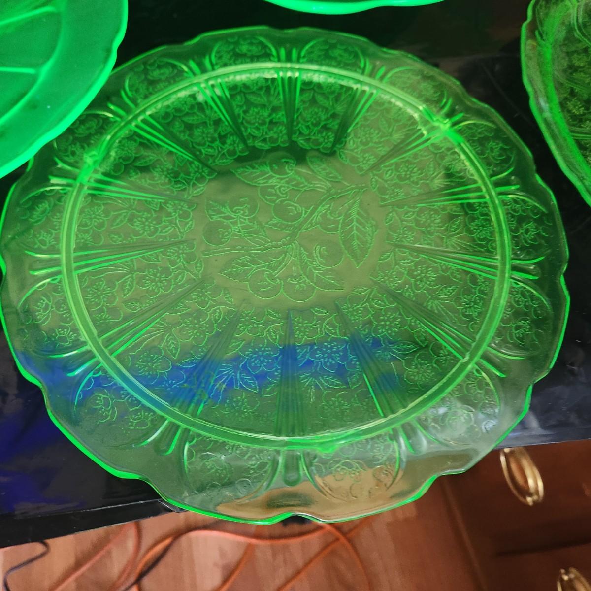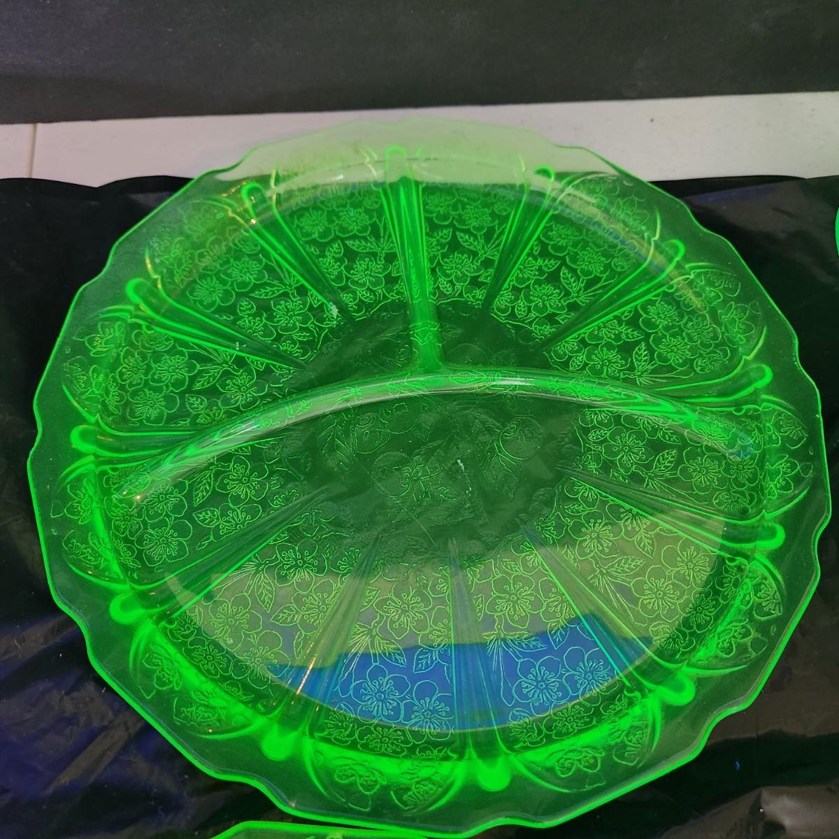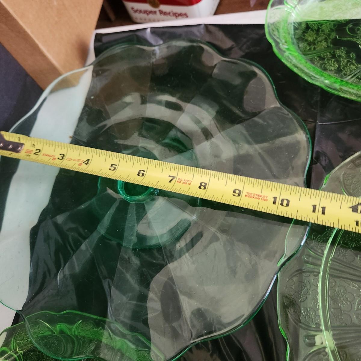 Large Lot of Green Glass Vaseline Uranium Glass Plates, Serving Dishes