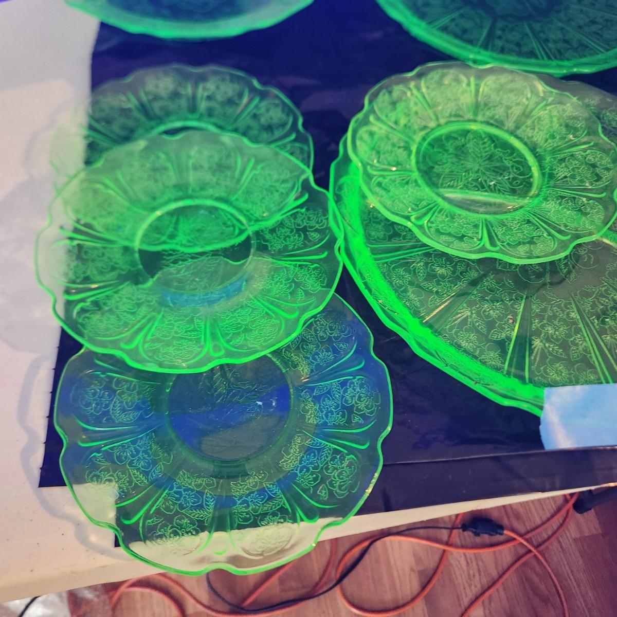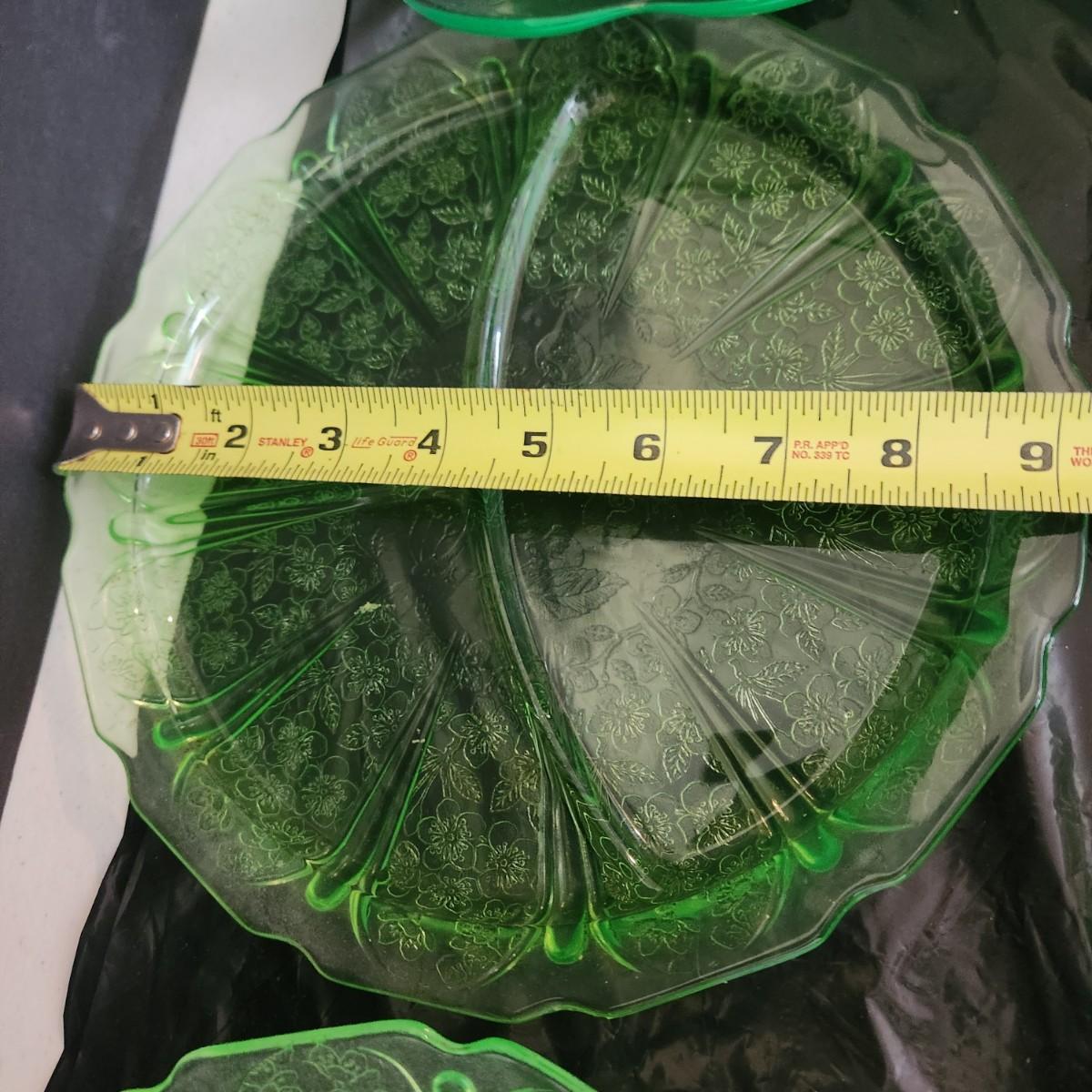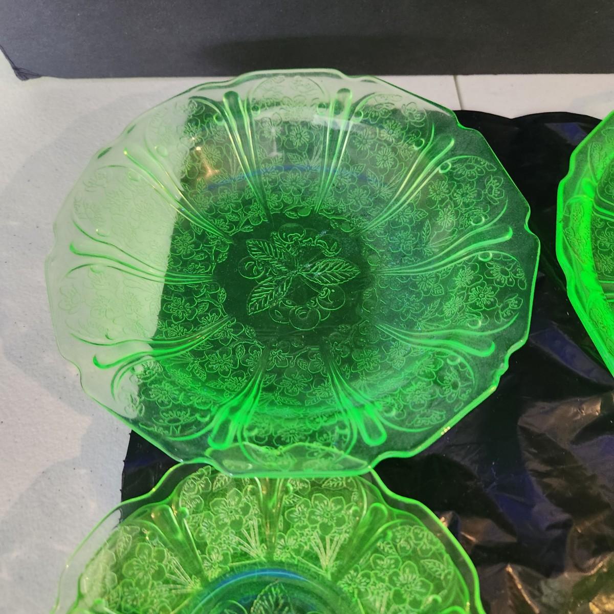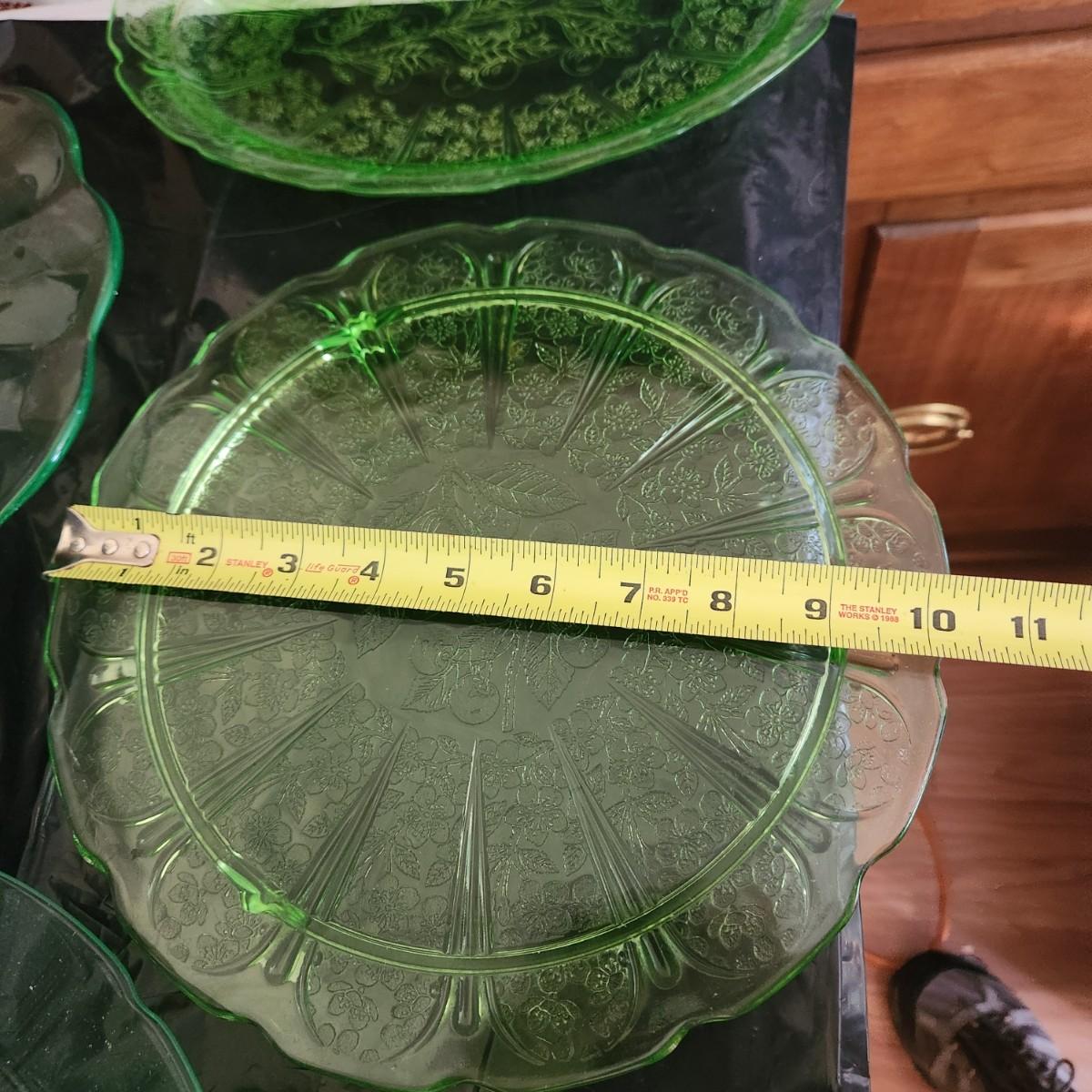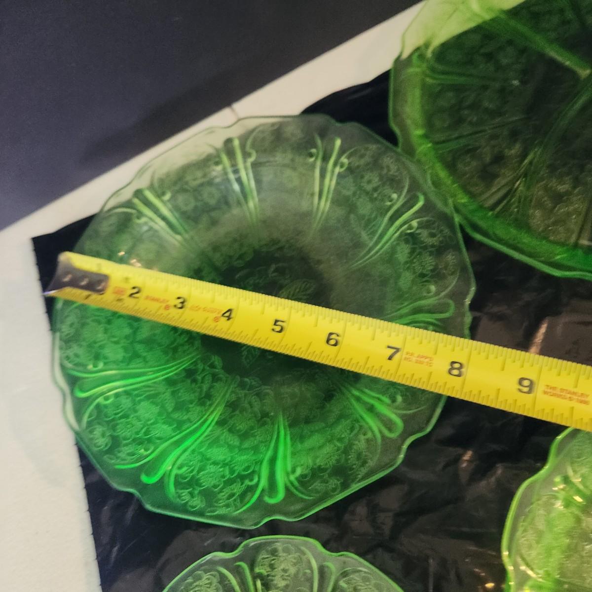 Large Lot of Green Glass Vaseline Uranium Glass Plates, Serving Dishes