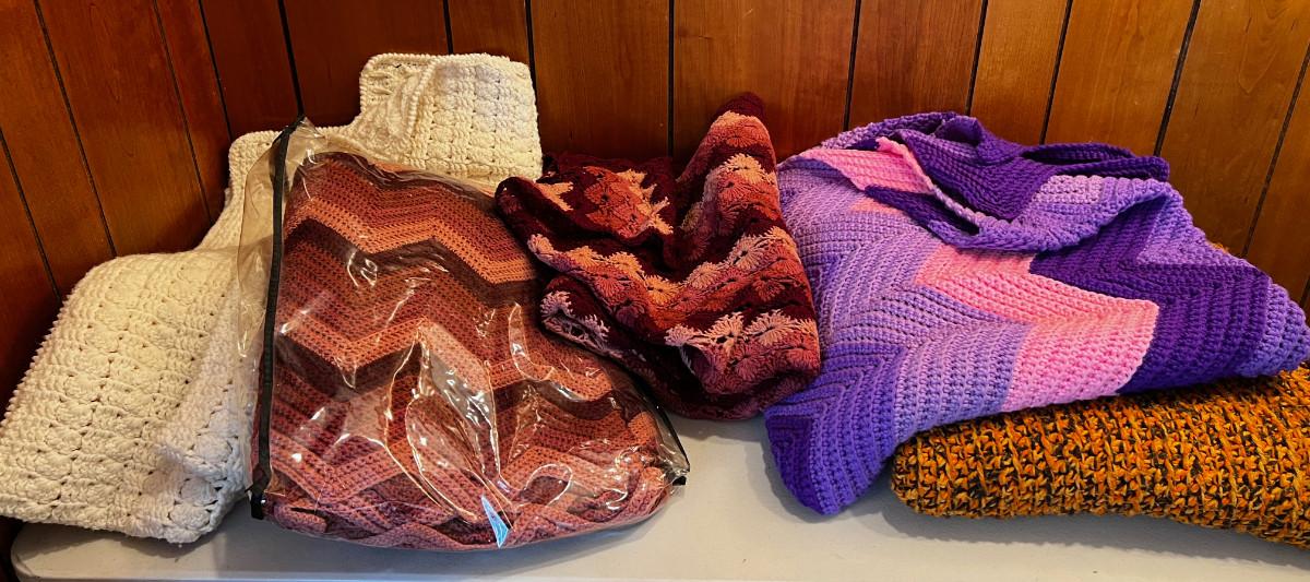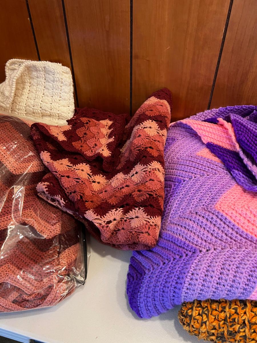 Hand Crafted. A lost Art. 5 Mostly purple colors.