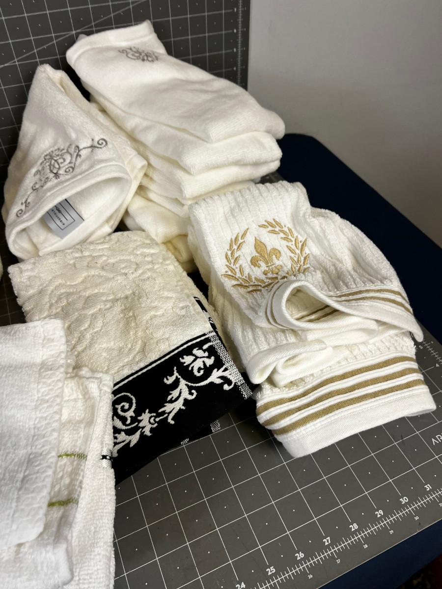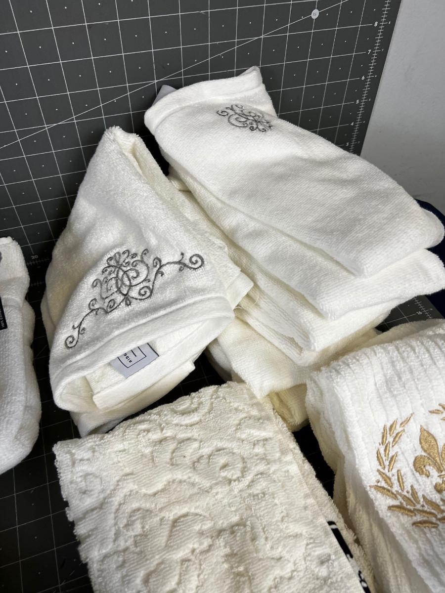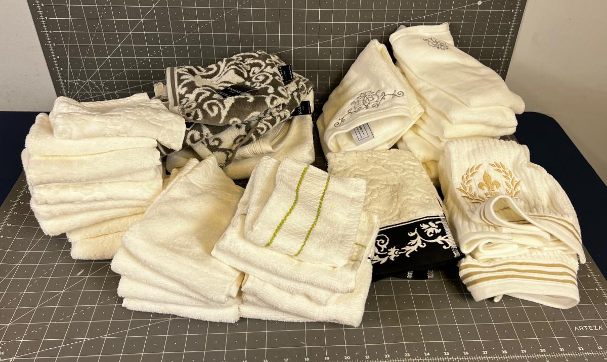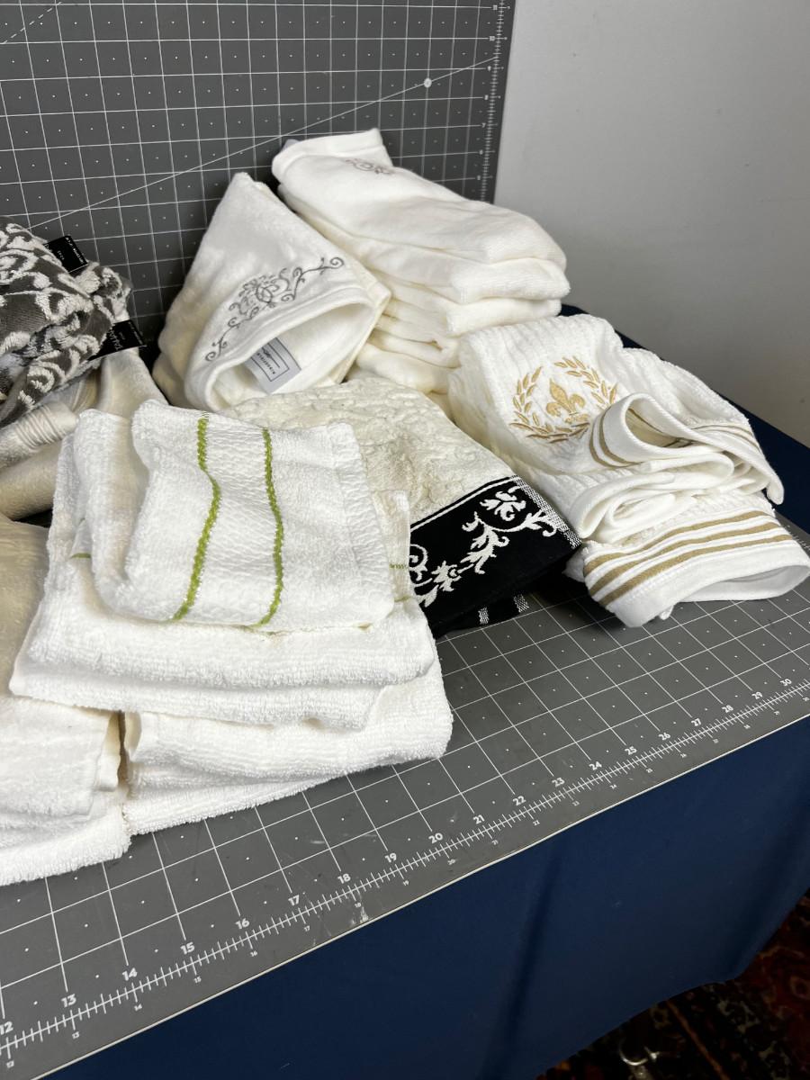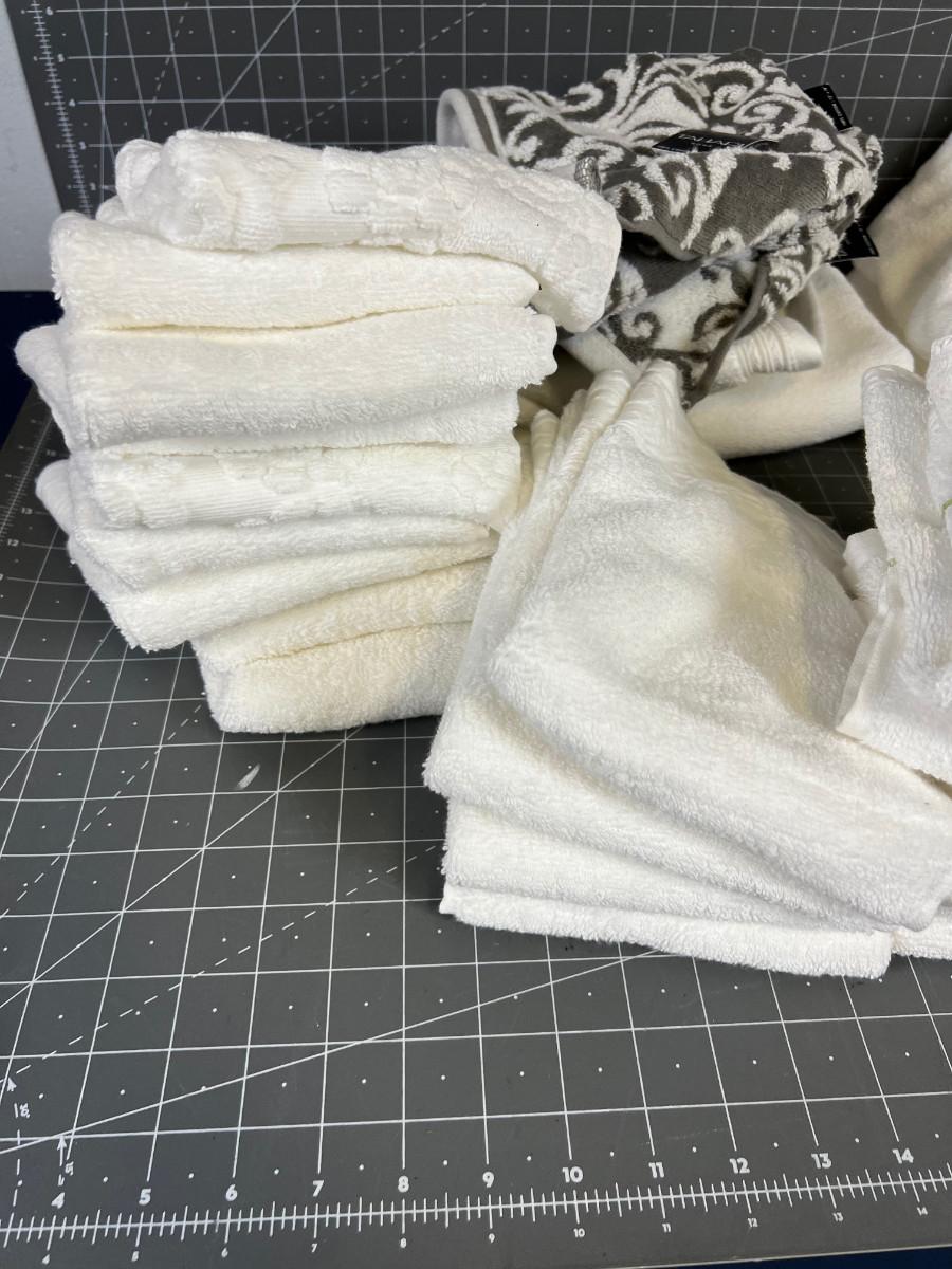 Large Lot of Hand Towels and Washcloths, NEW White and some Gray Color
