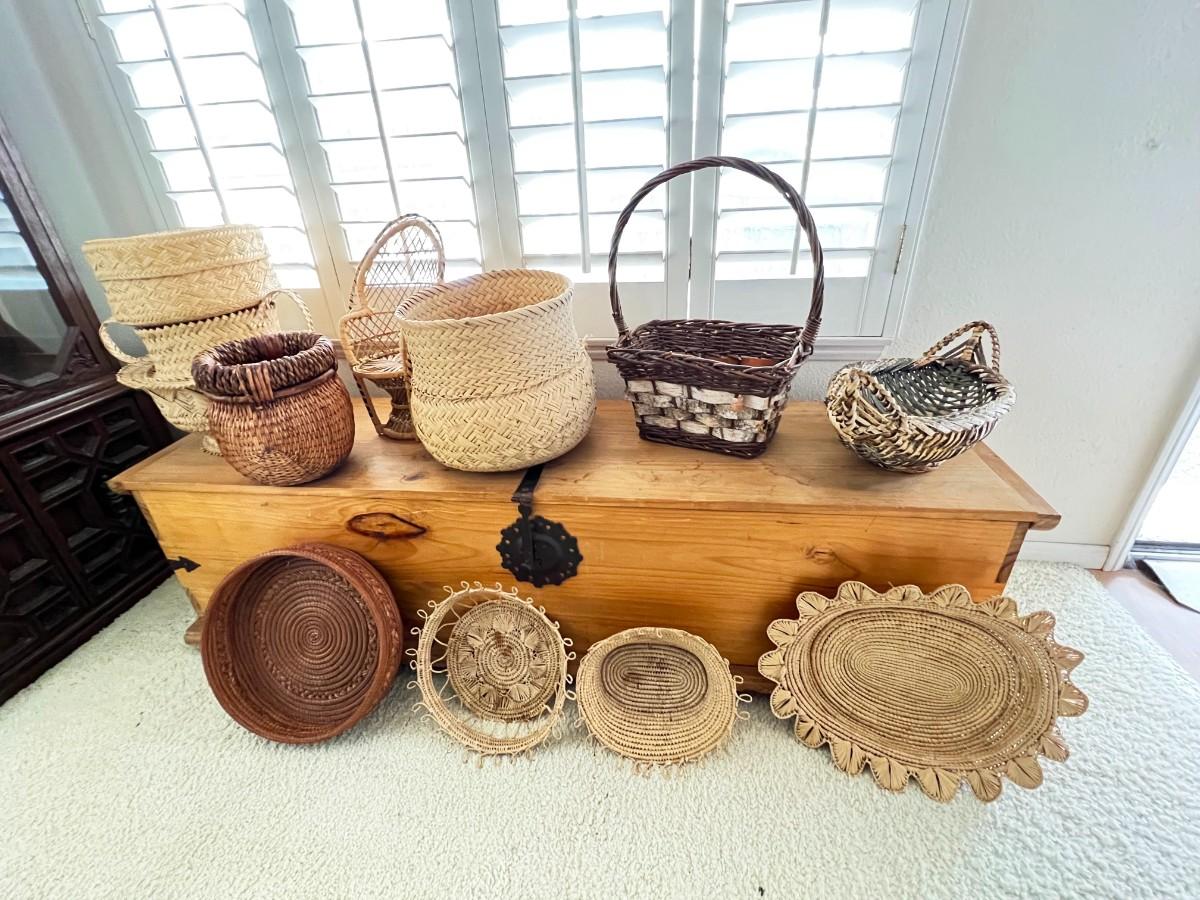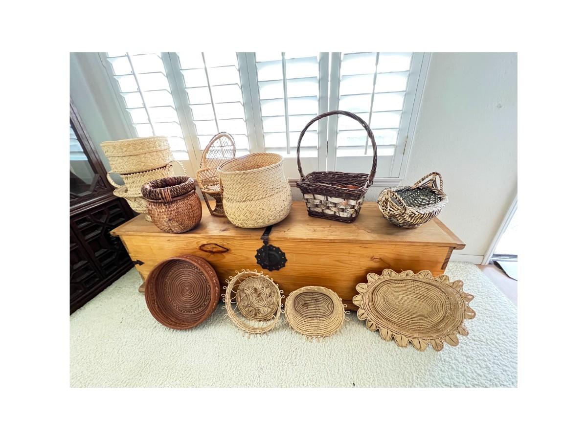 Large Lot of Handmade Woven Dinnerware, Baskets, Home Decor & More