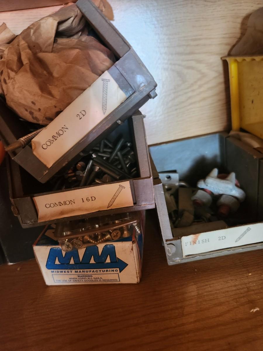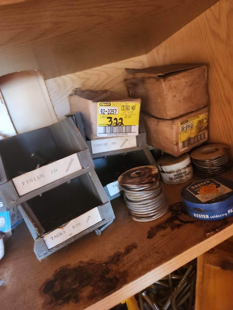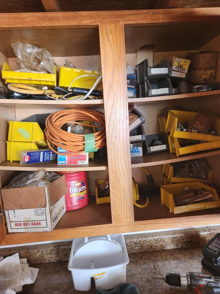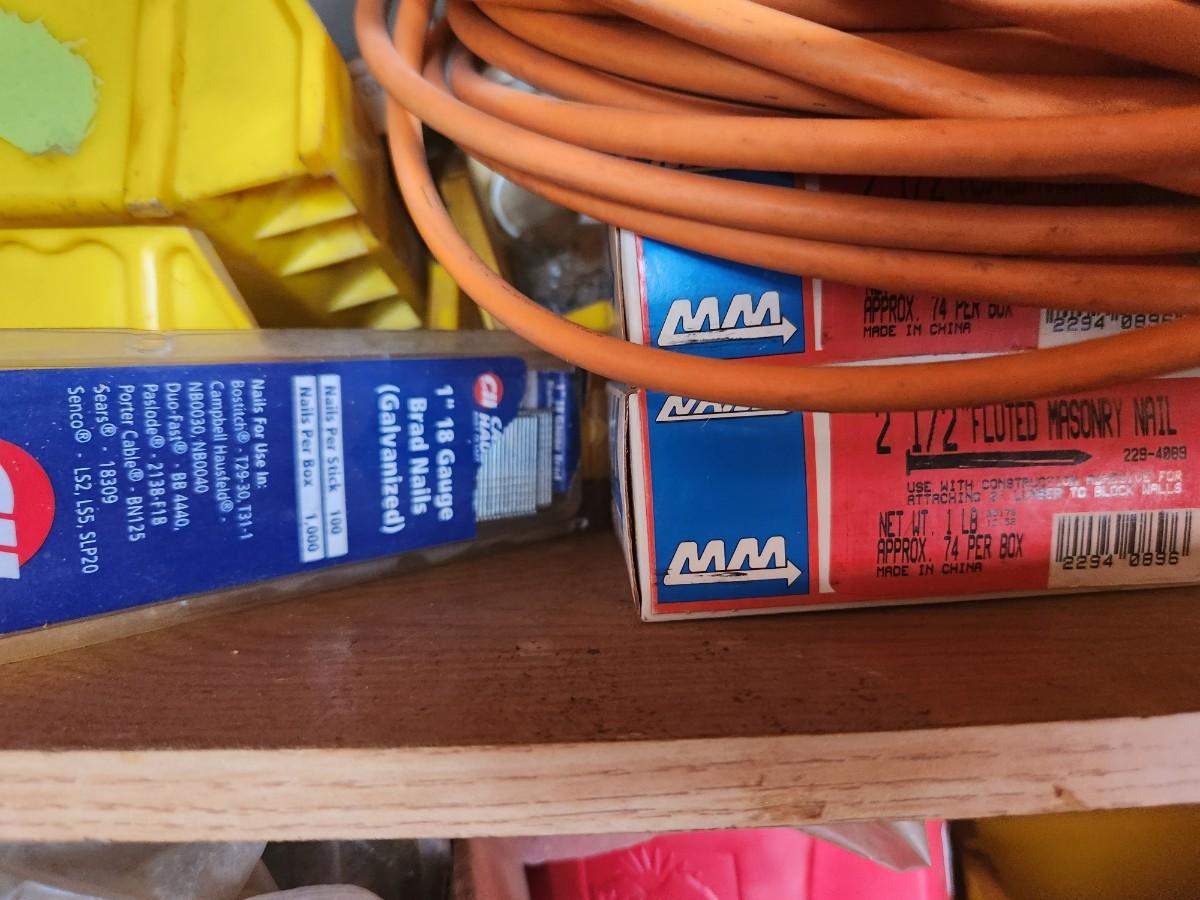 Nails, screws, finishing nails, extension cables, everything else in the cabinet that's photographed.