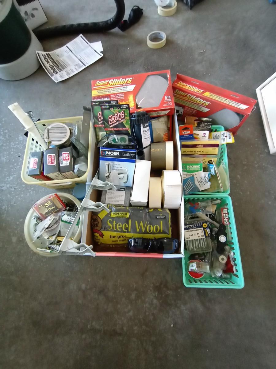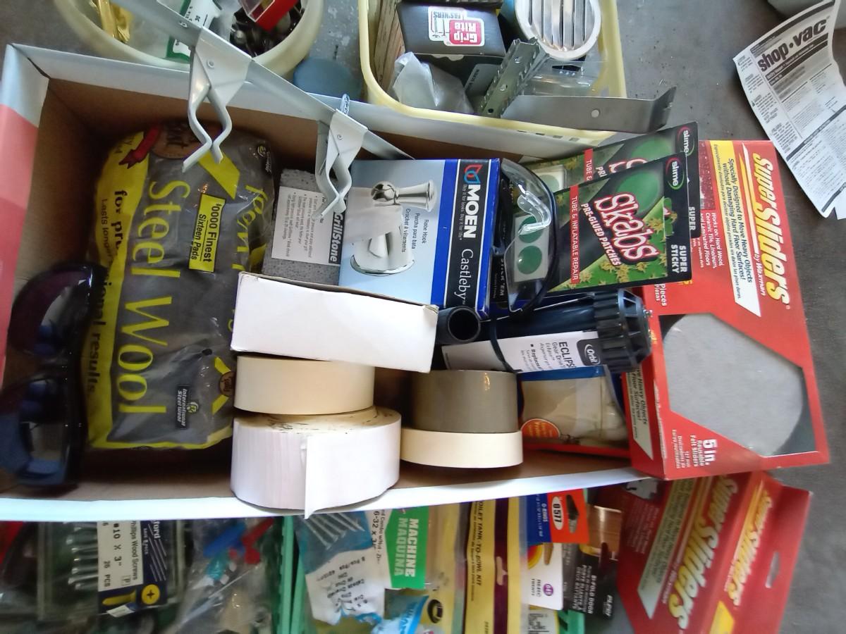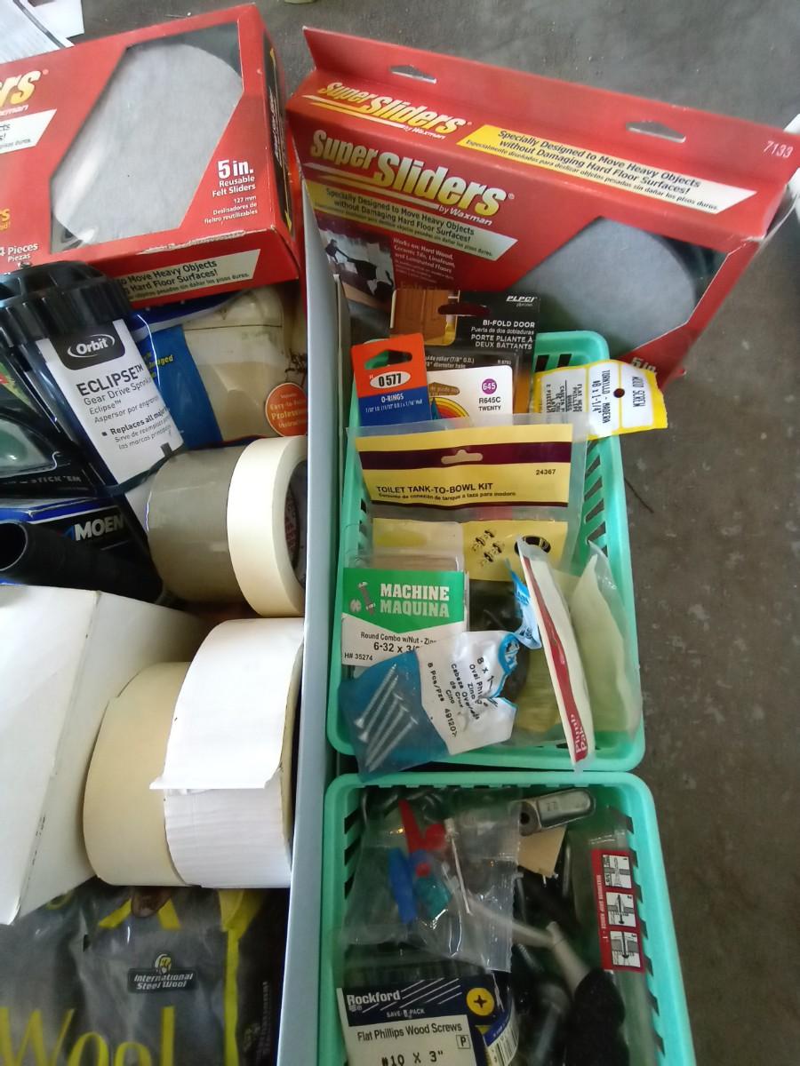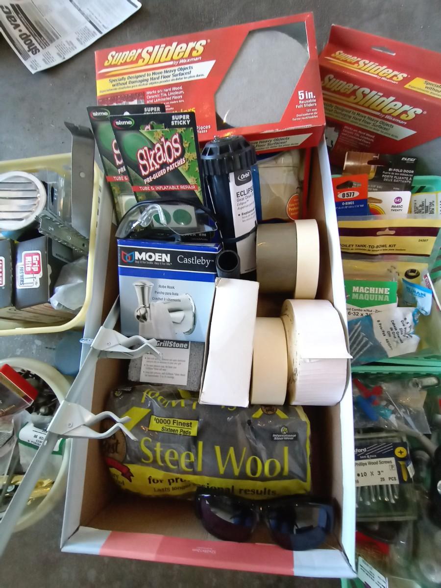 LARGE LOT OF HARDWARE AND HOUSEHOLD ESSENTIALS