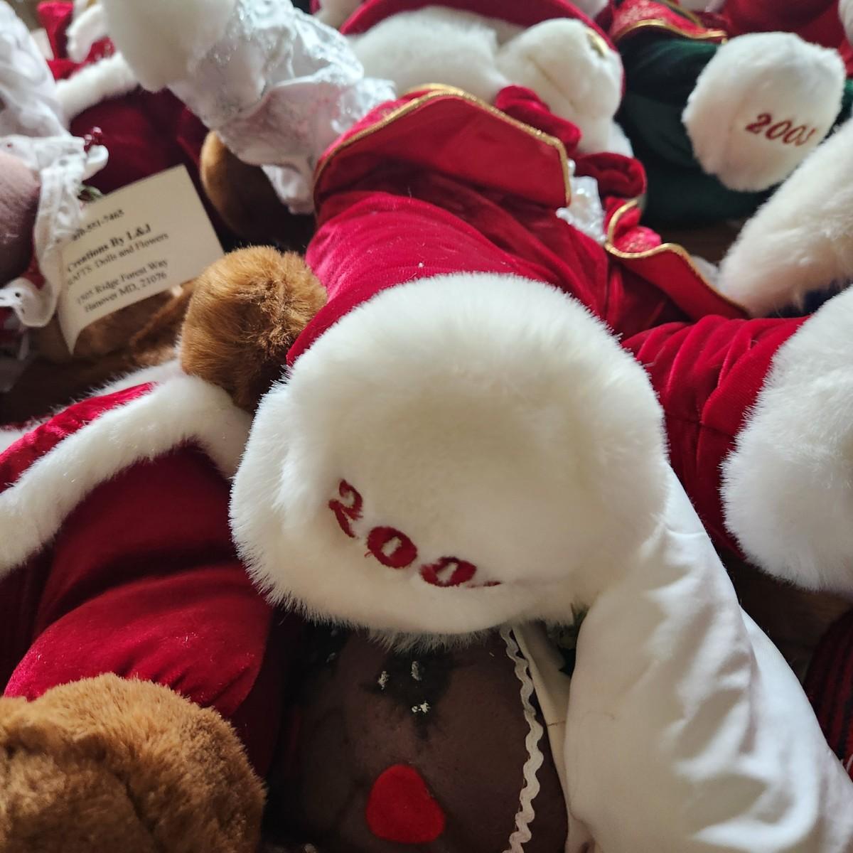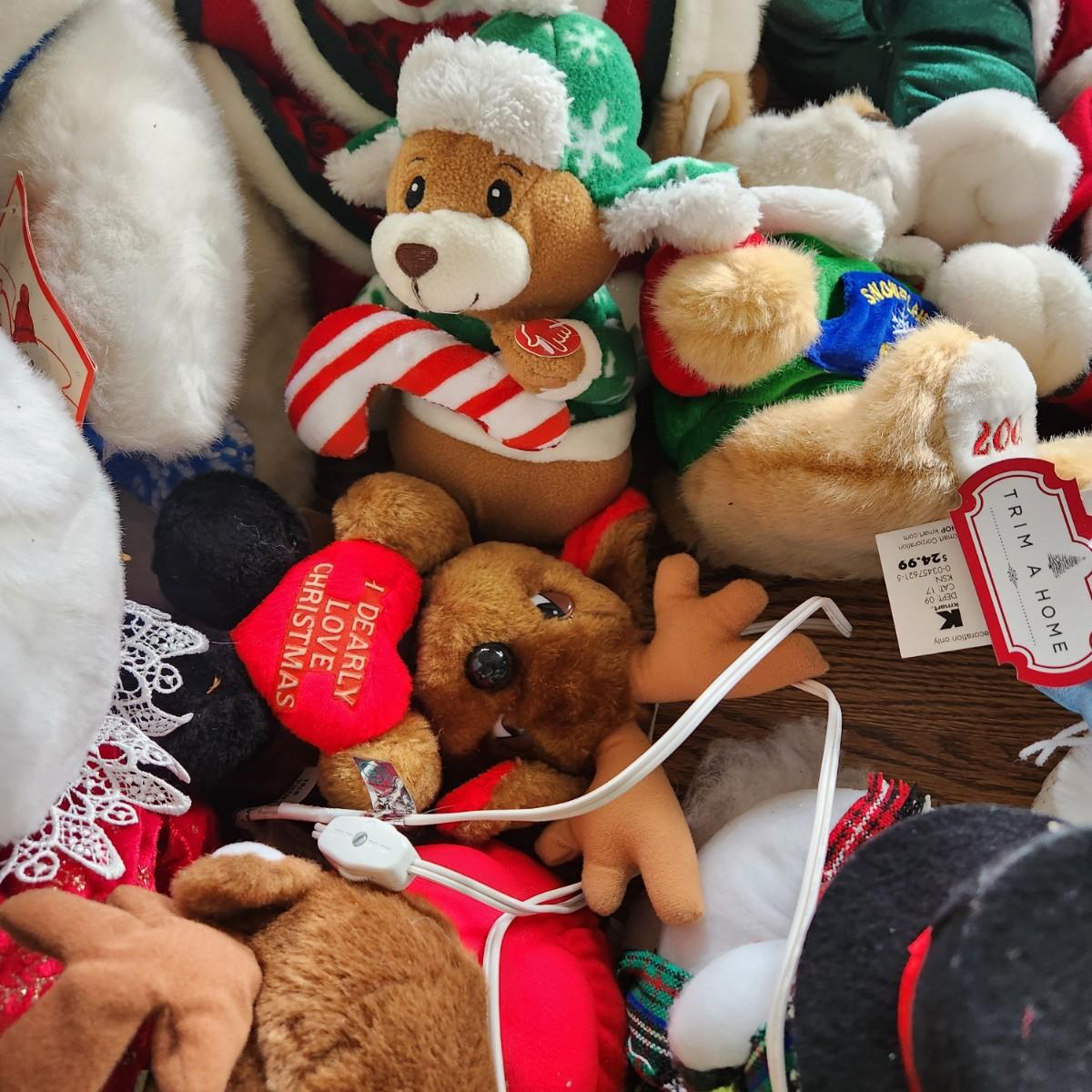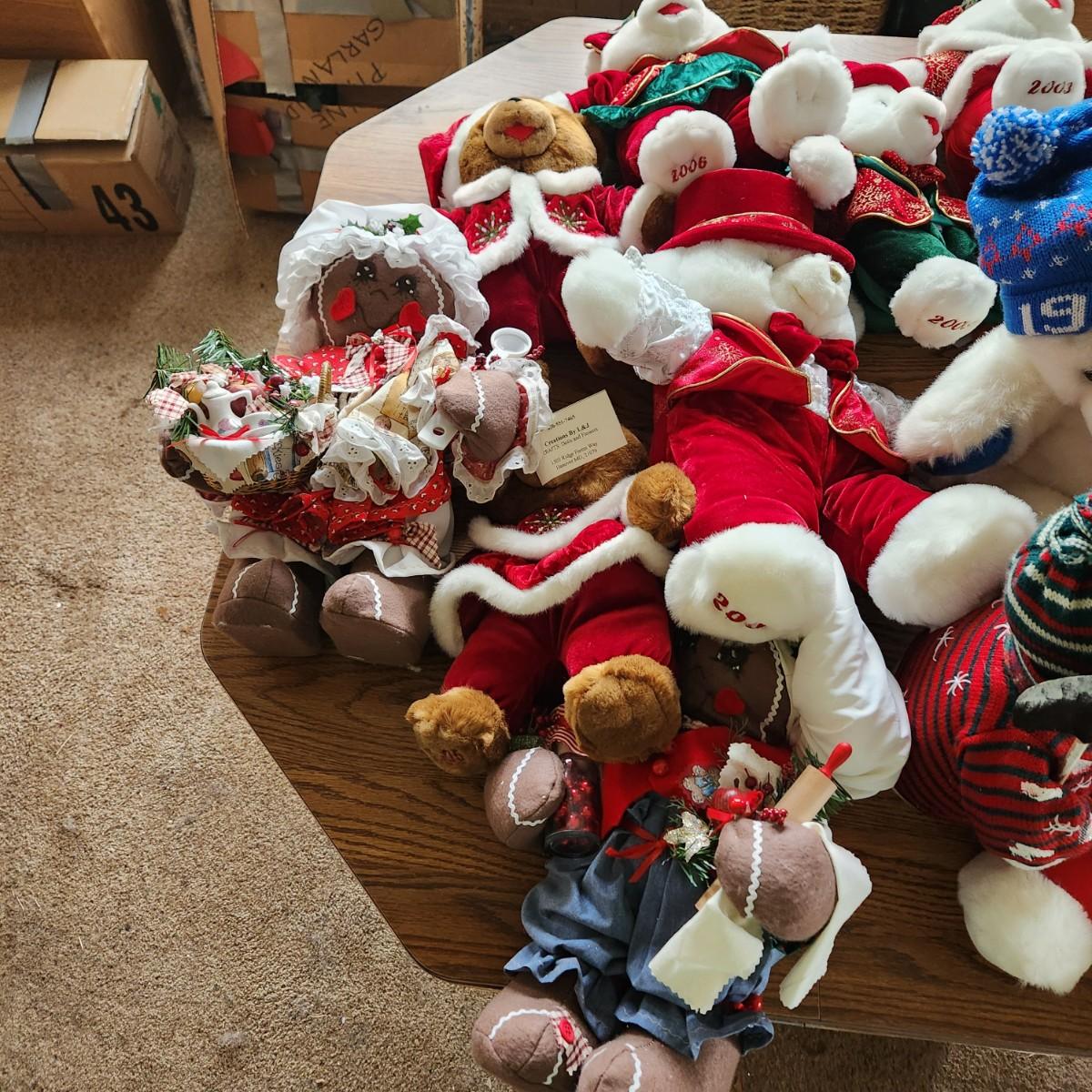 Large Lot of Holiday Plush Mostly Bears ,Snowmans, Keepsake Memories bear
