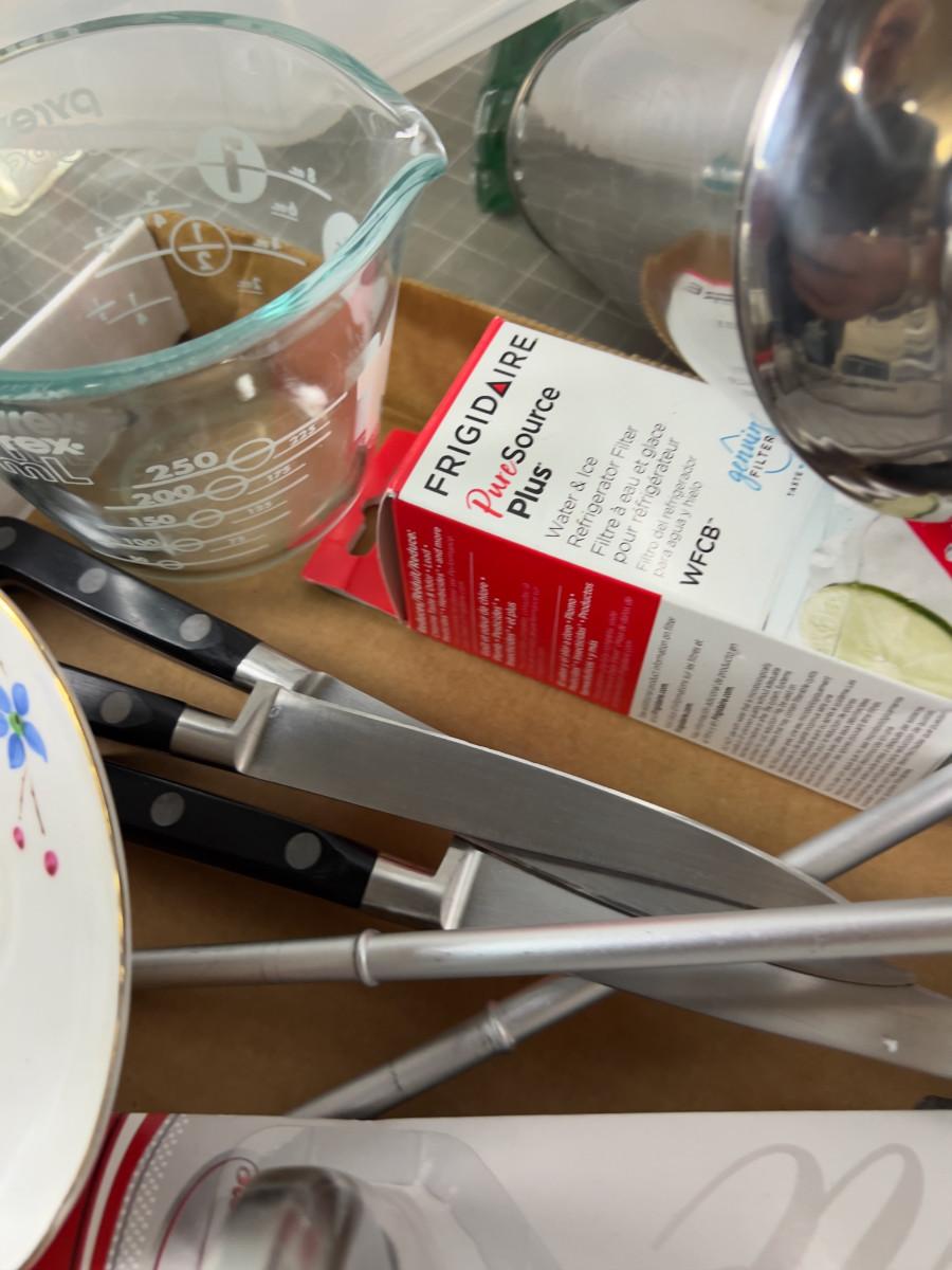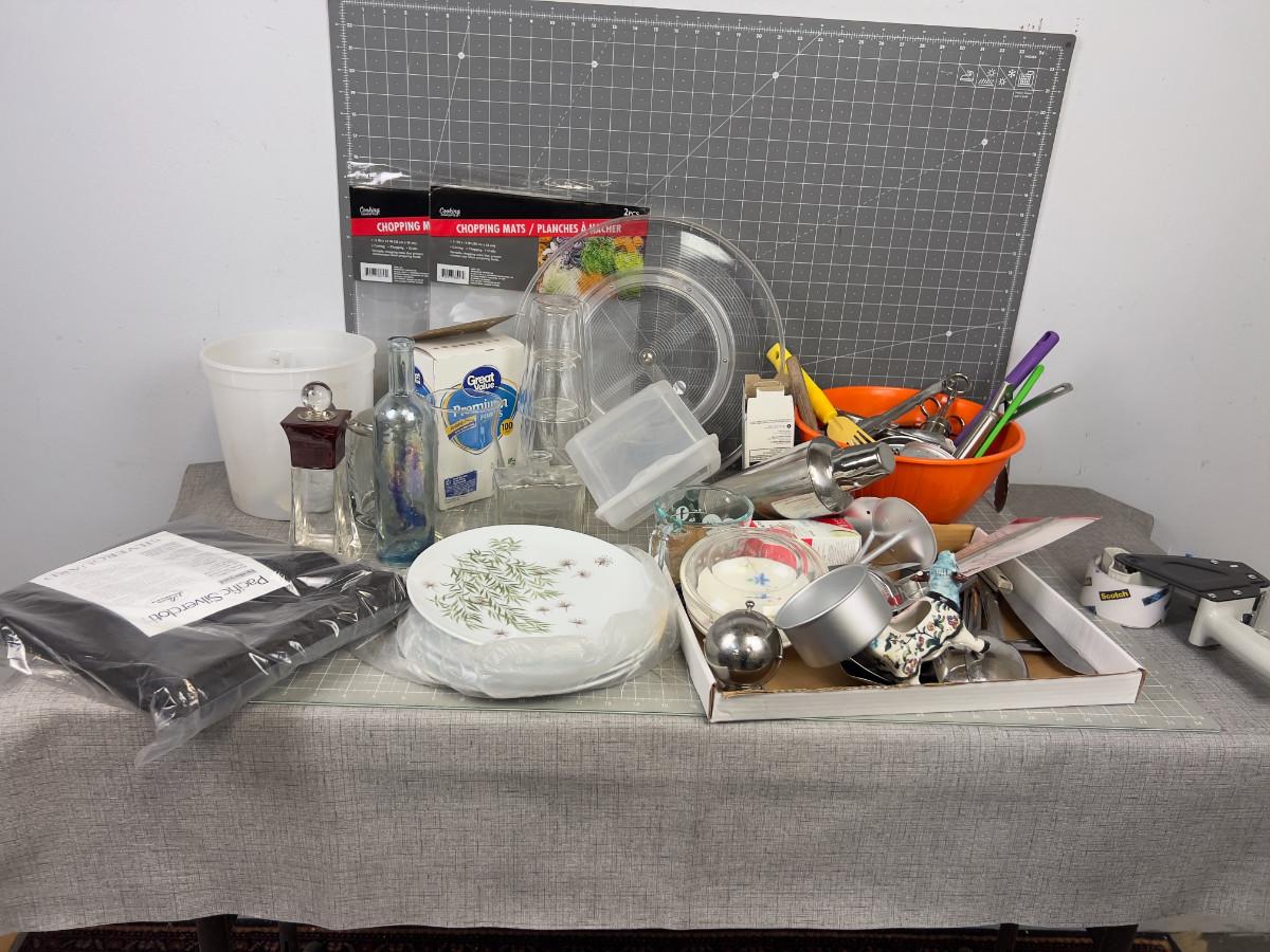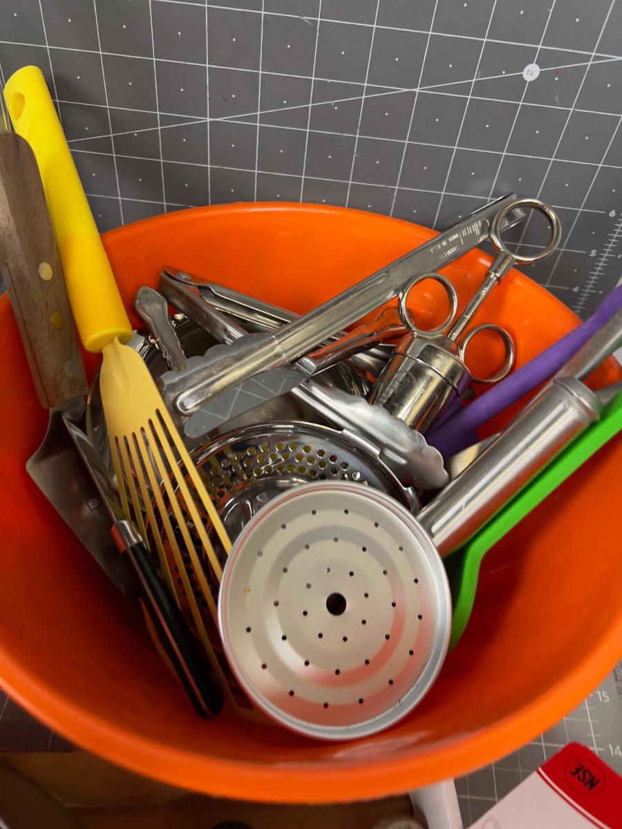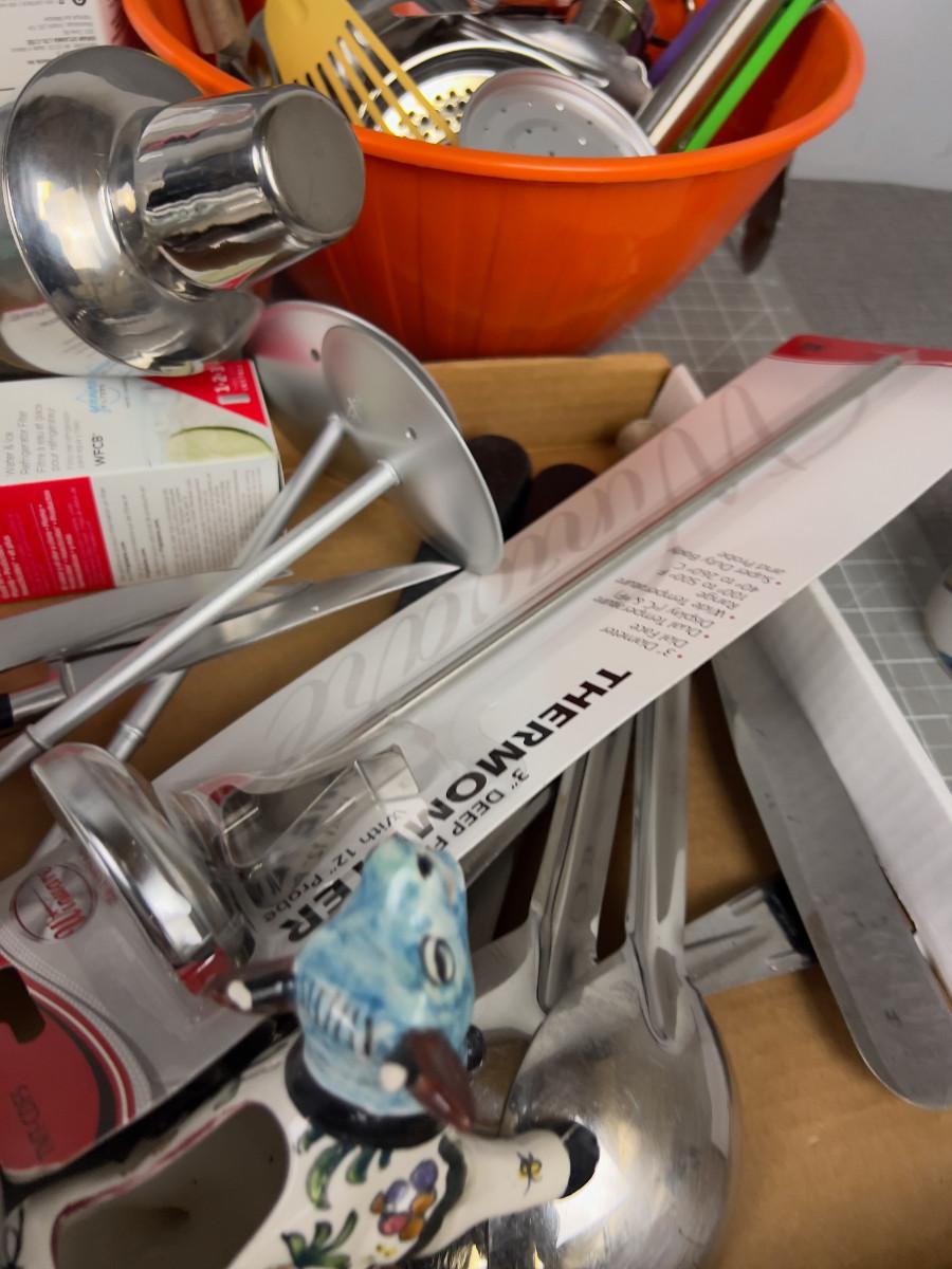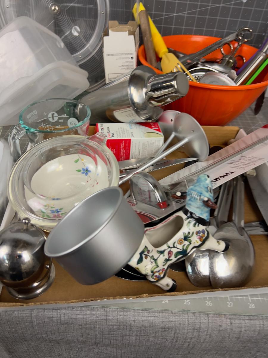 Large Lot of Kitchen Stuff including Blue Cow Creamer