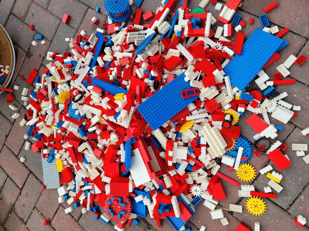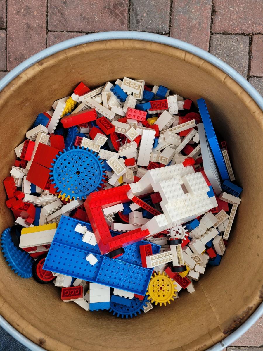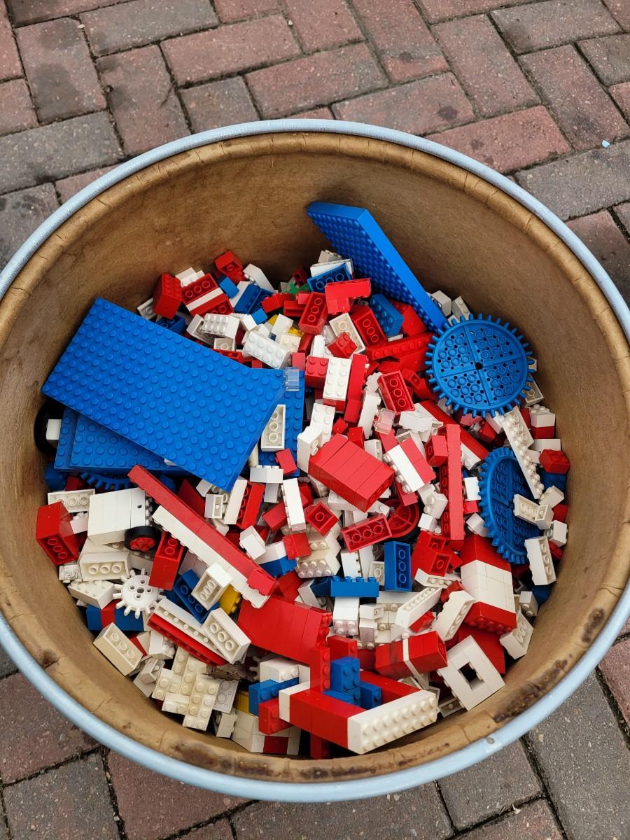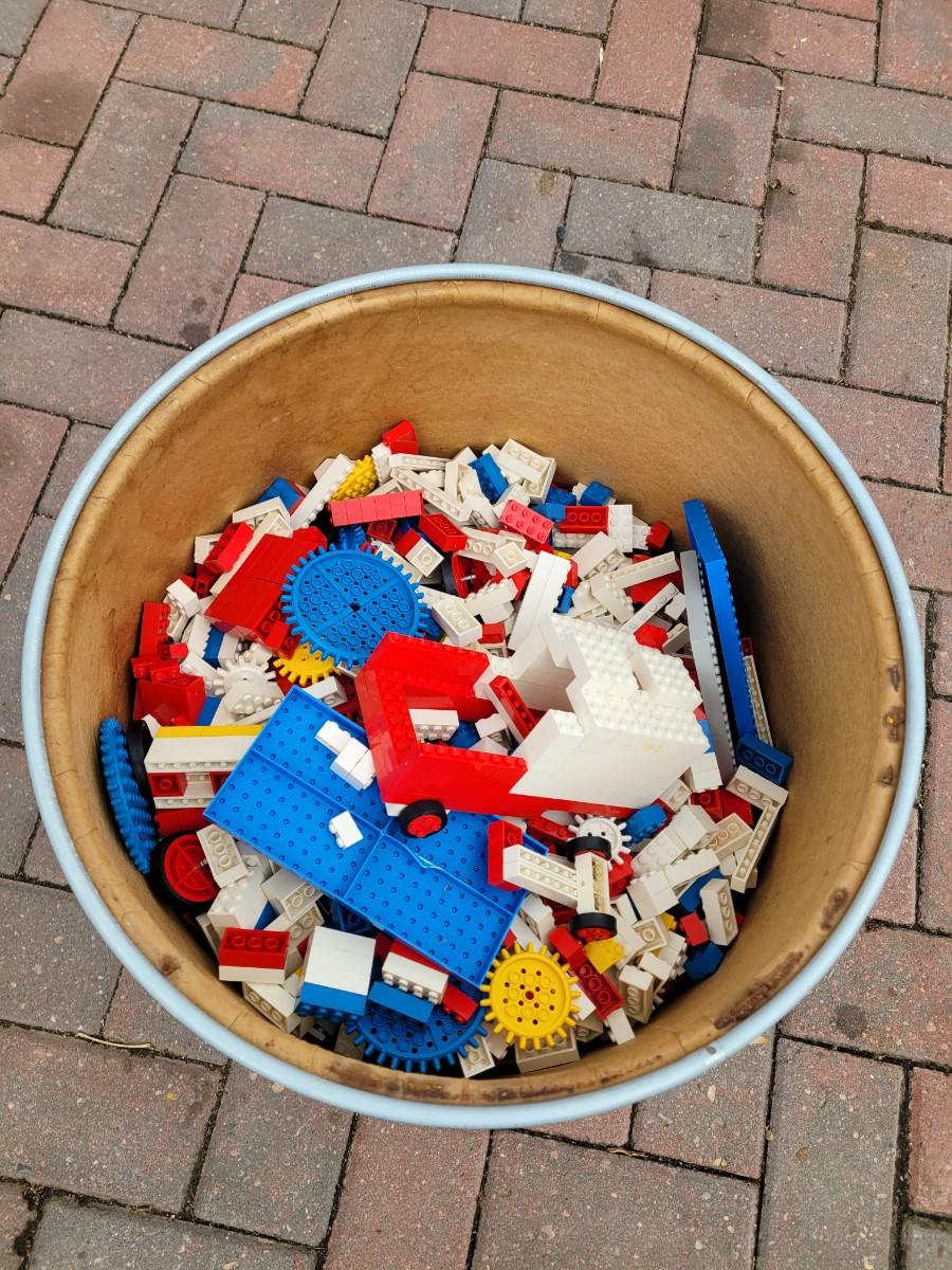 See the photos for the measurements of the barrel. Lots and lots and lots of Legos and a handy Barrel to put them in