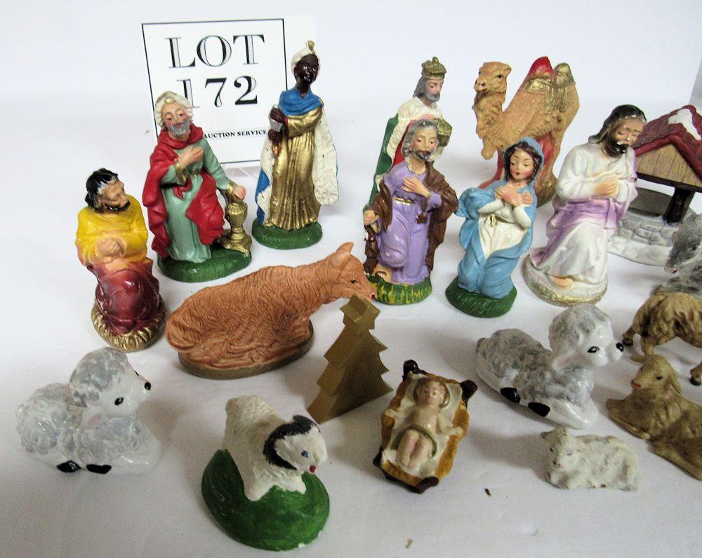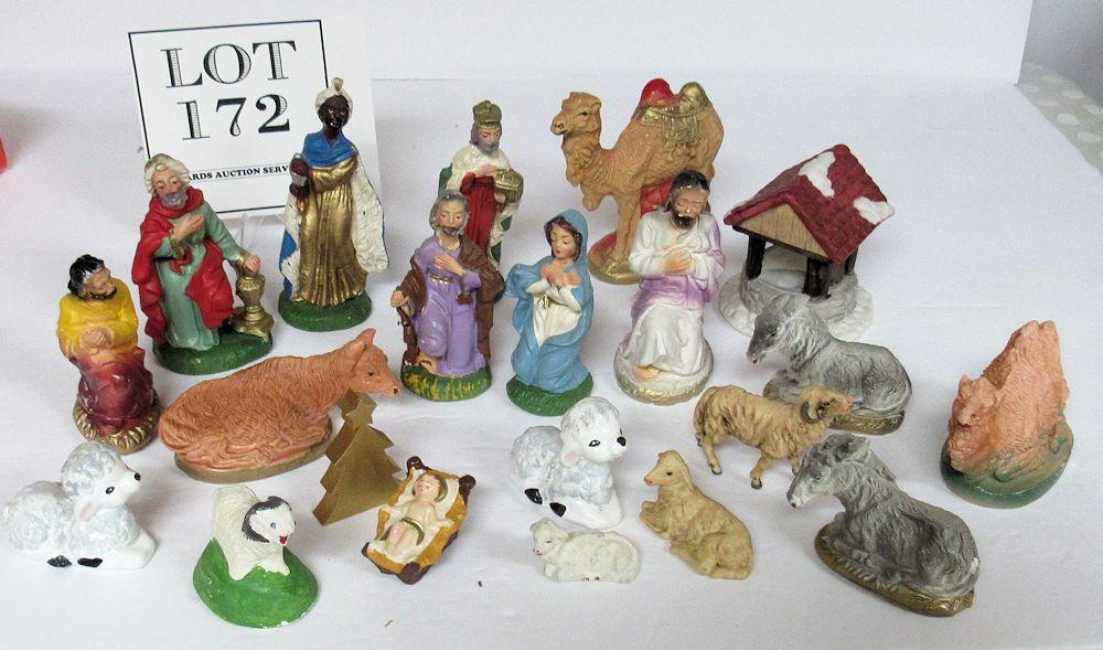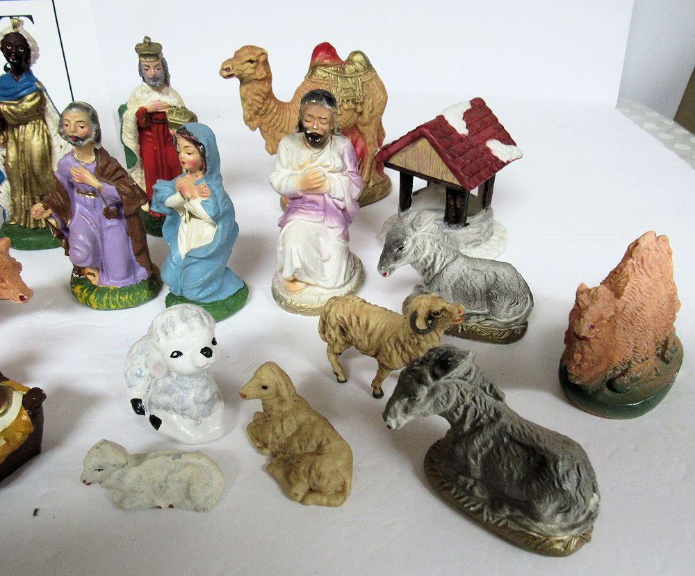 Large Lot of Misc Nativity Pieces, Plaster, Ceramic, Plastic