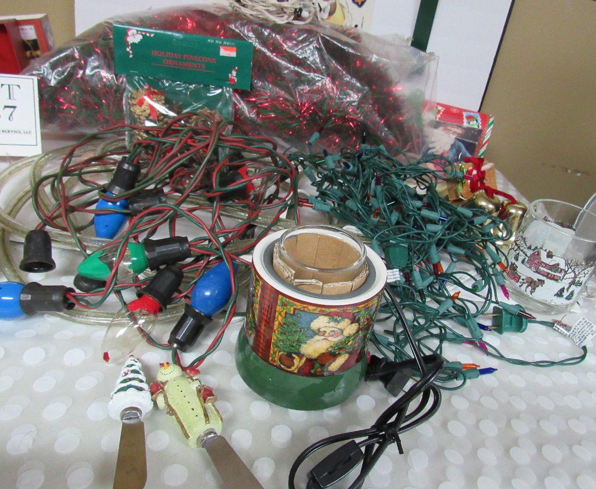 Large Lot of Mixed Christmas Stuff, Music Box, Warmer, Ornaments Lights