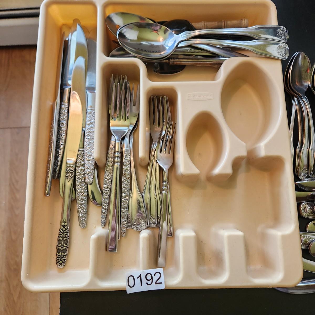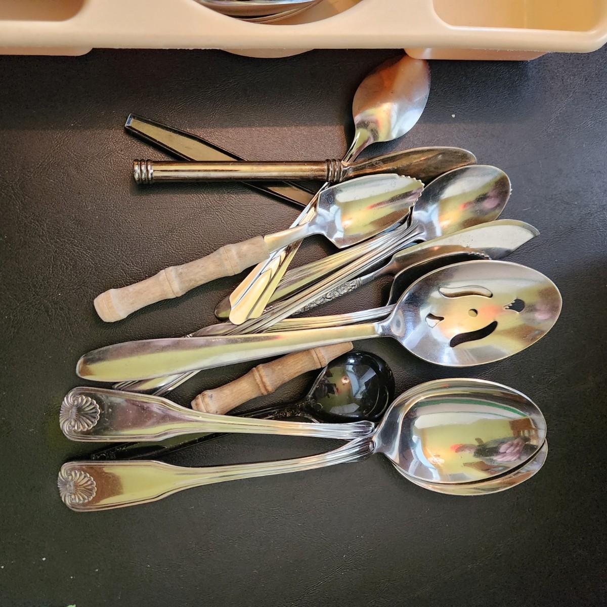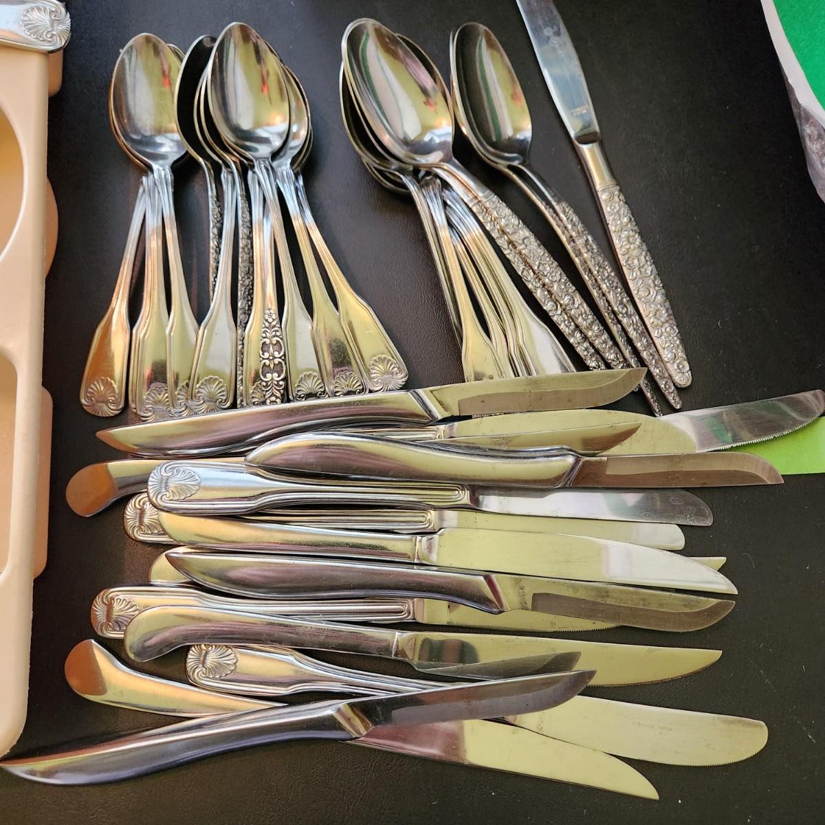 Large Lot of Mixed Flatware Knives, Forks Spoons and more