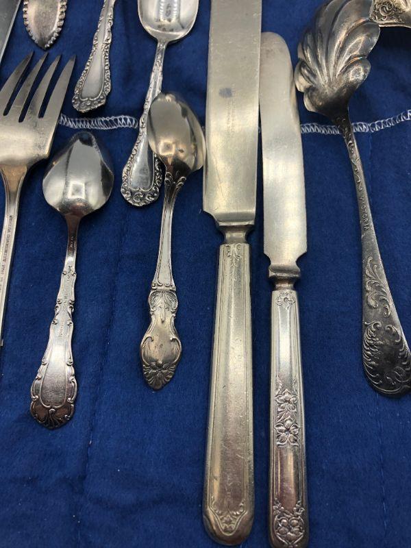 Large lot of flatware. Mixed patterns. Silverplate & stainless. Wide range of pieces.