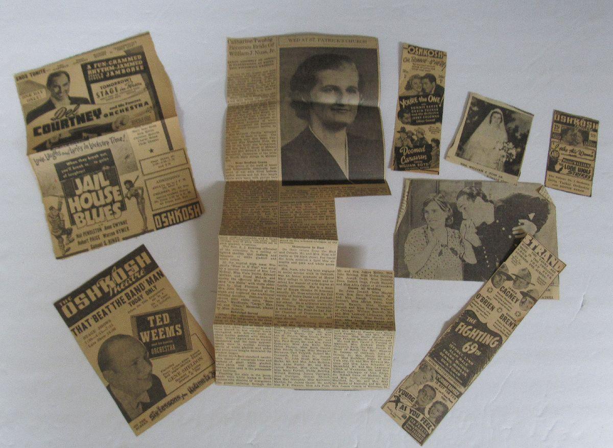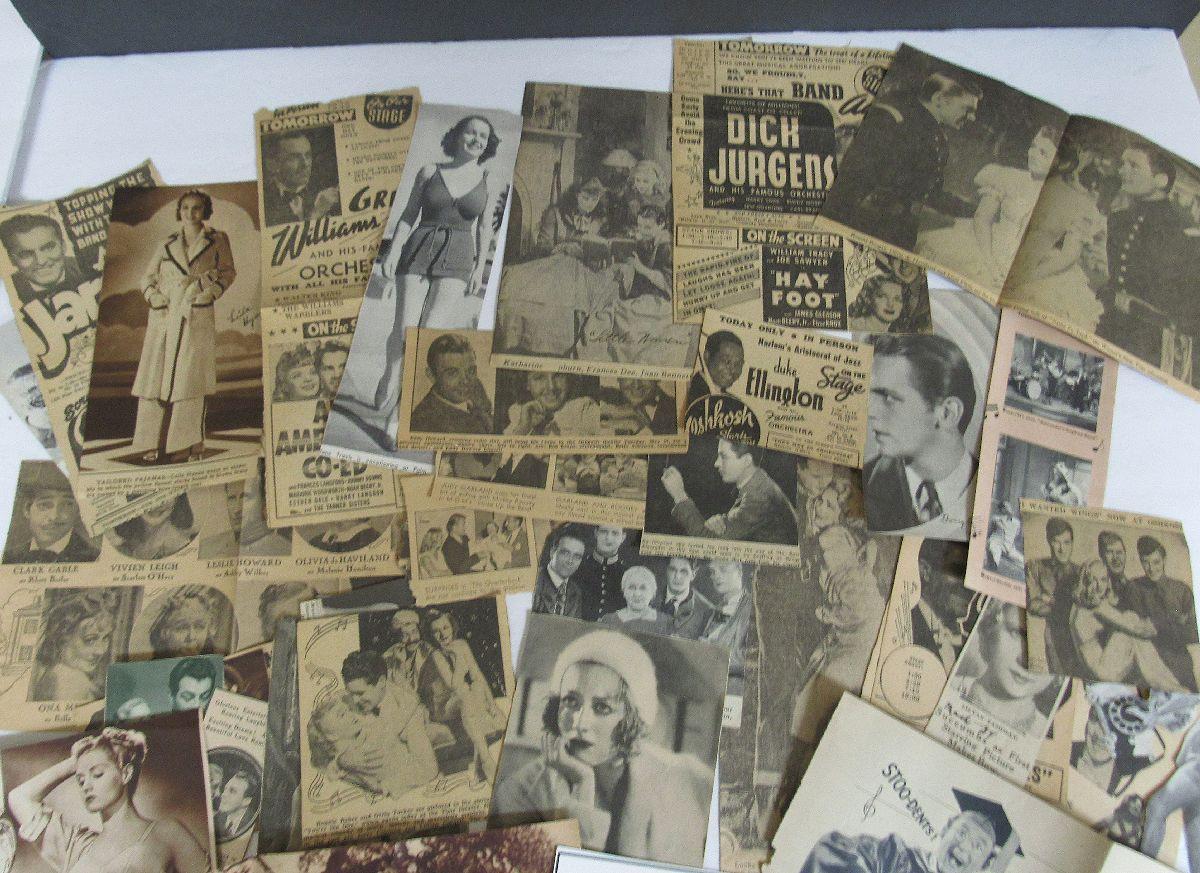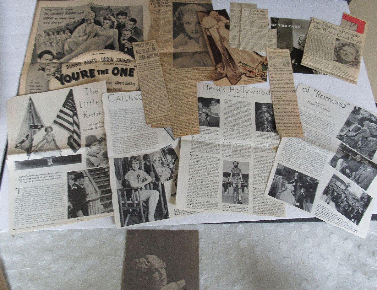 Large Lot of Paper Clippings, Movie Stars, Jean Harlow Death, Oshkosh, WI Paper Clippings