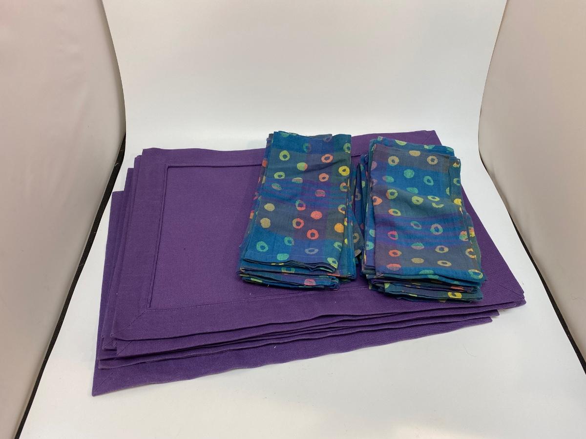 Large Lot of Purple Violet Placemats & Matching Spotted Linen Napkins