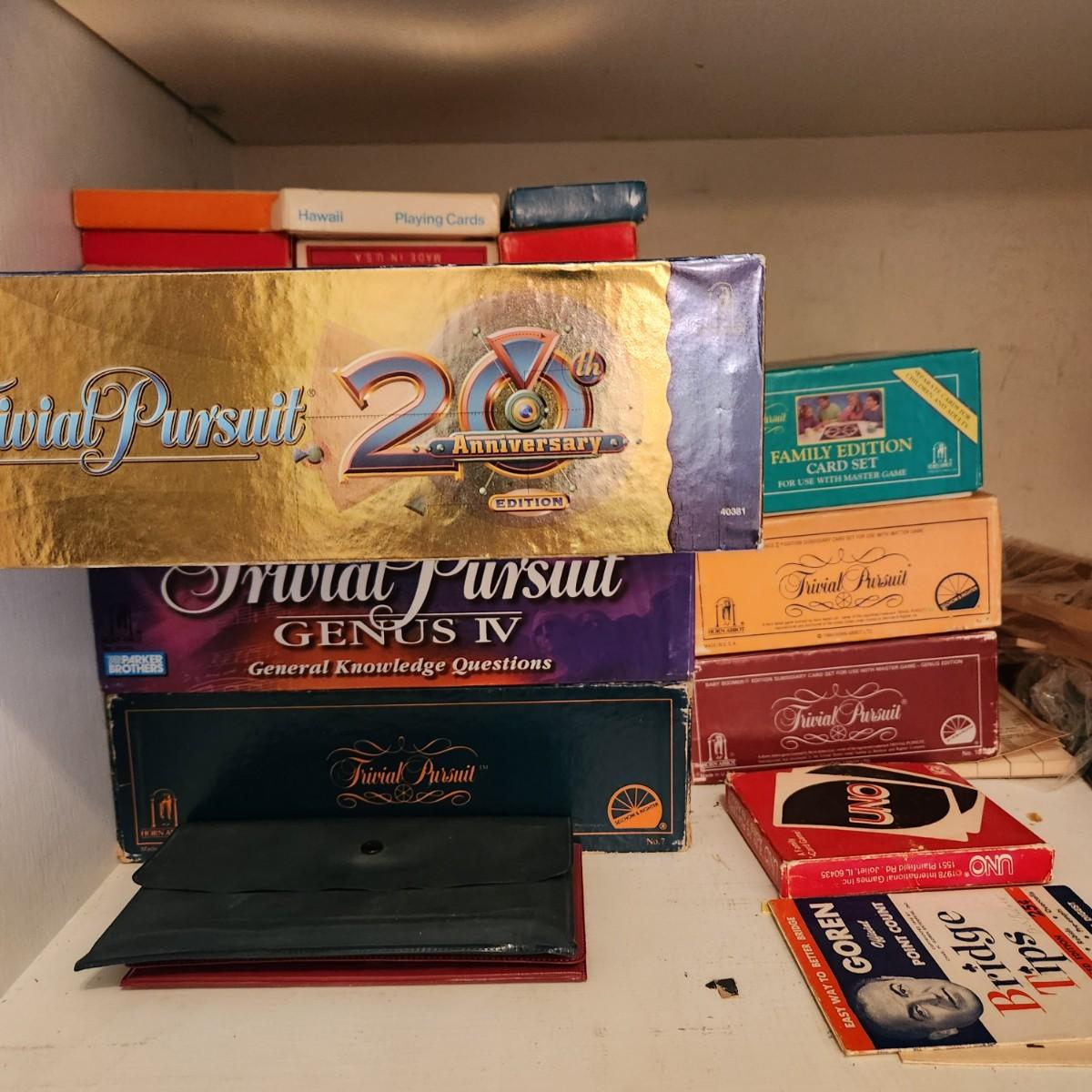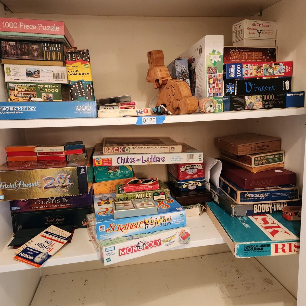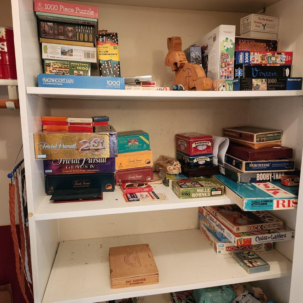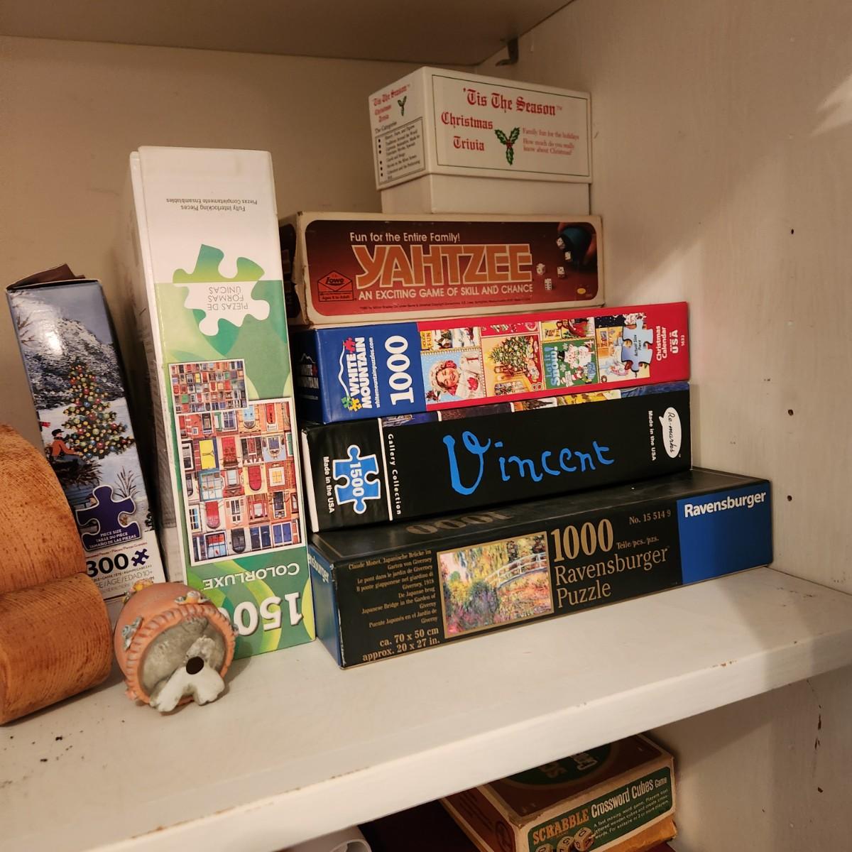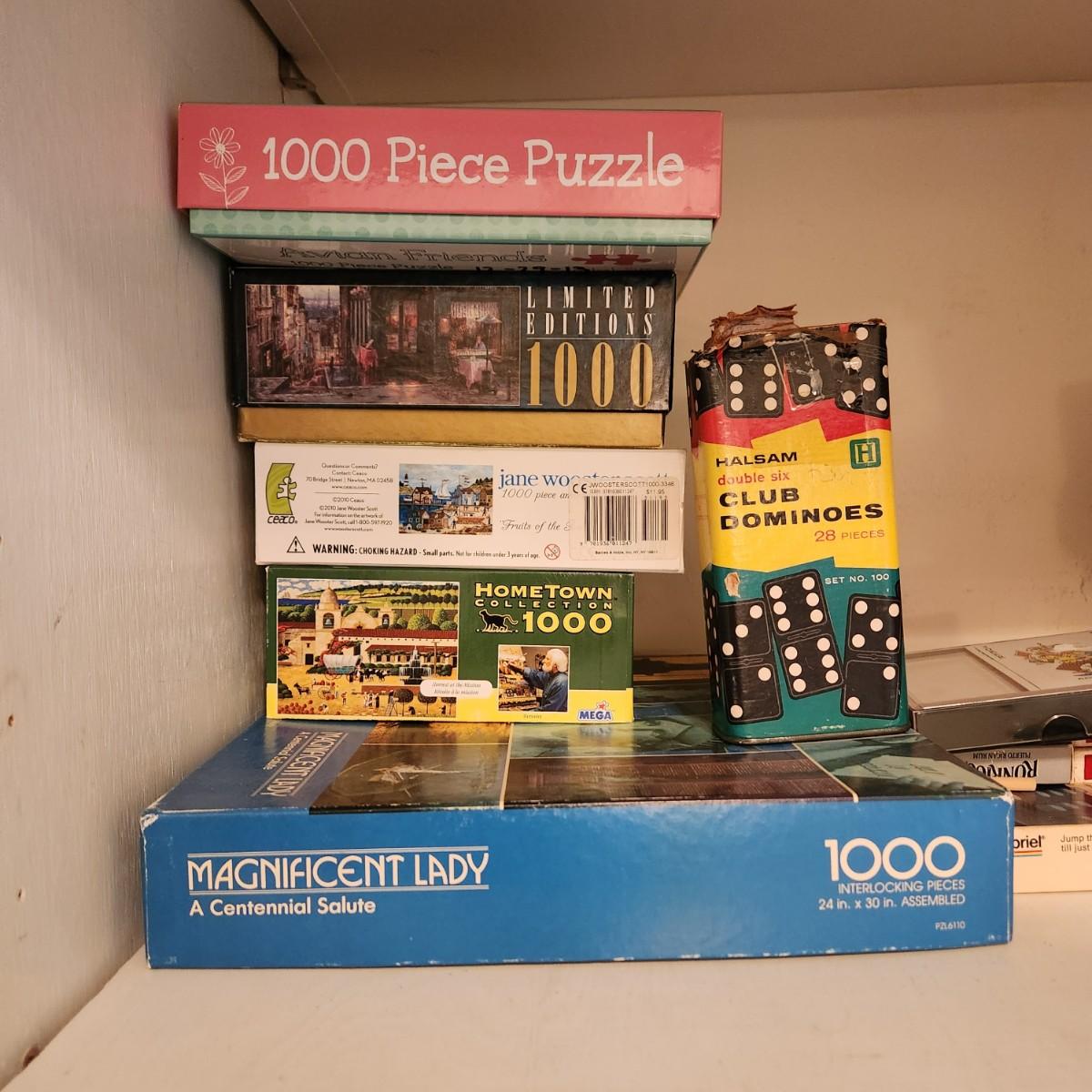Large Lot of Puzzles , Games, Dominoes, Yahtzee, Trivial Pursuit, Uno, Playing Cards and more