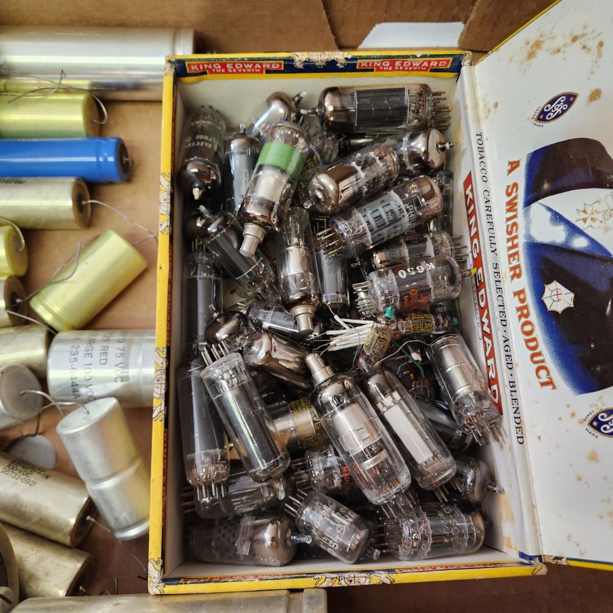 Large lot of Radio Tubes and Can Electrolytic Capacitors
