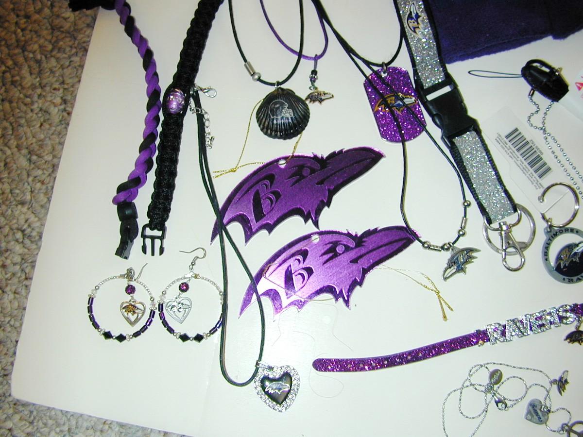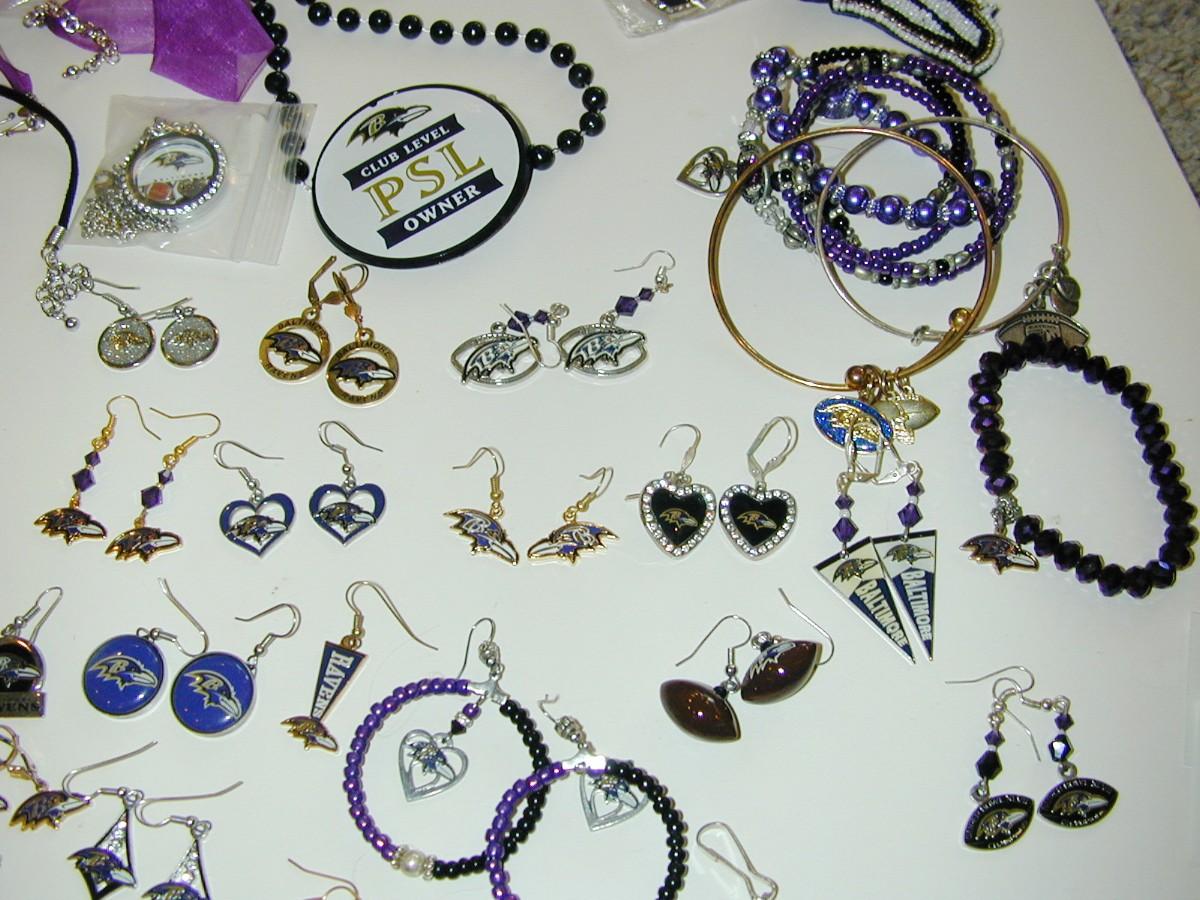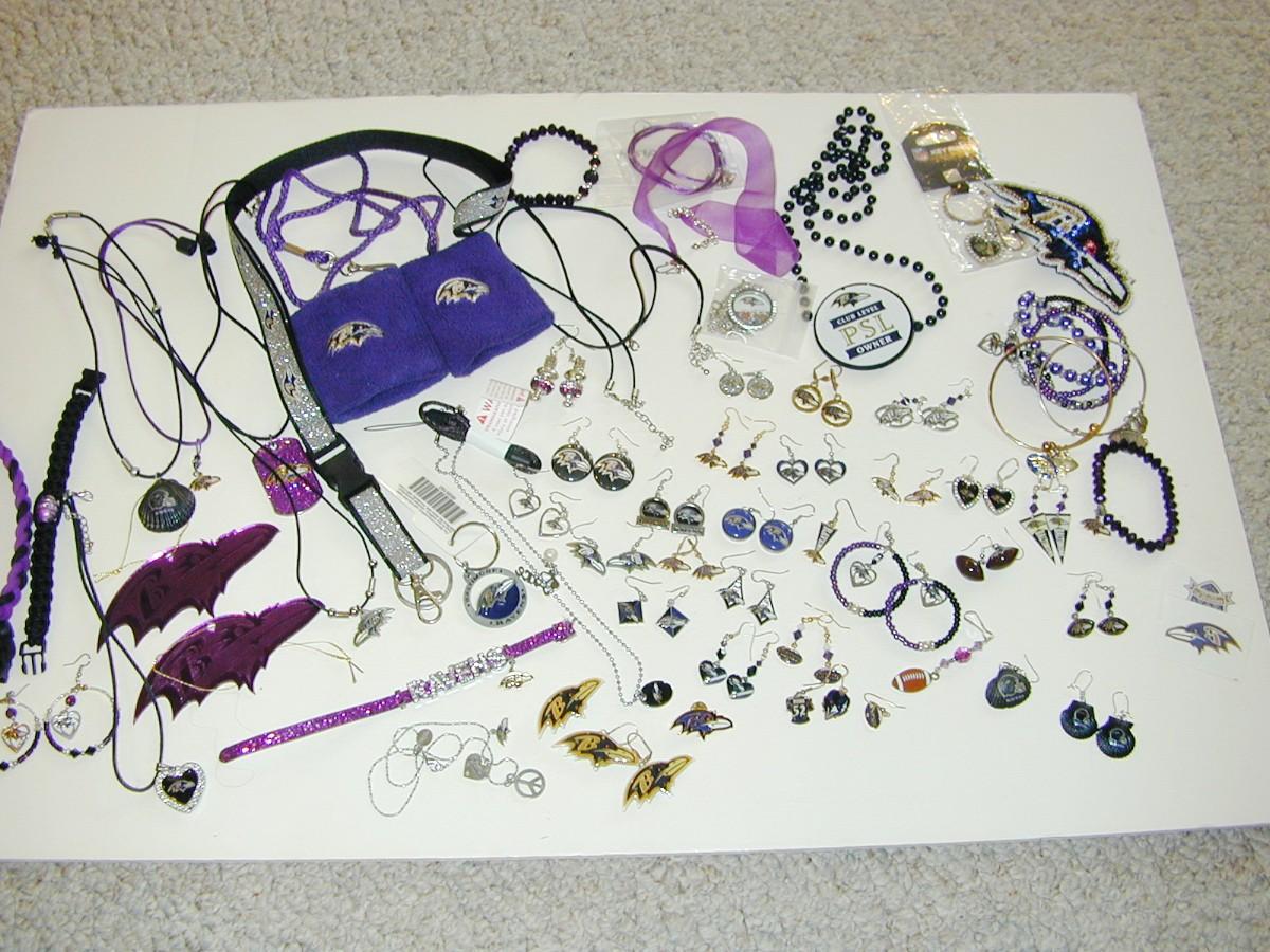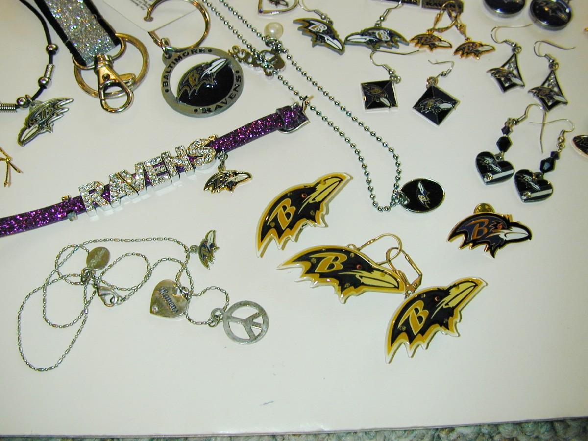 Large Lot Of Ravens Related Jewelry Items