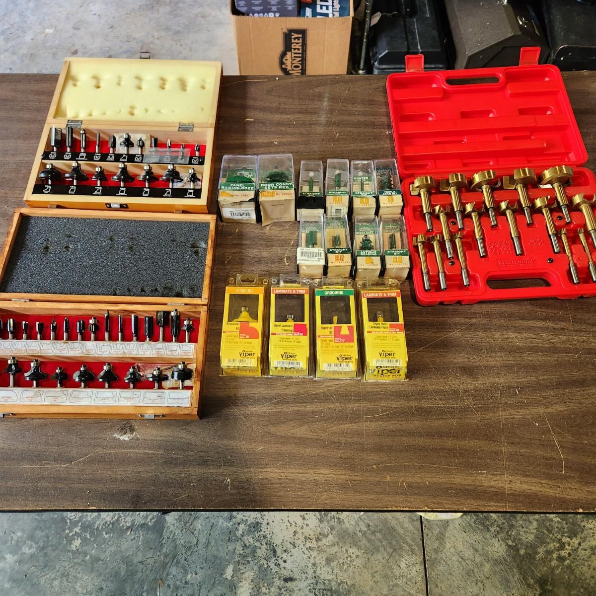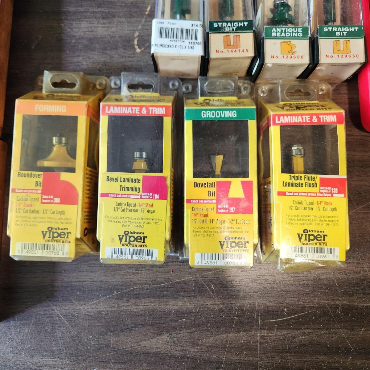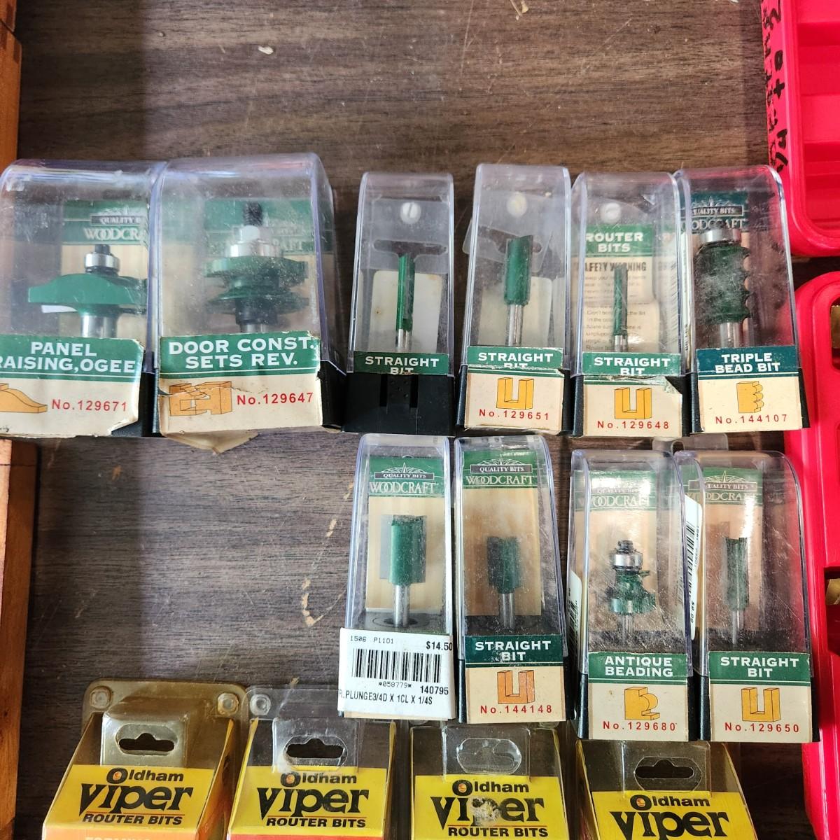 Large lot of Router Bits Woodcraft, Oldham Viper, Mastergrip, woodworking